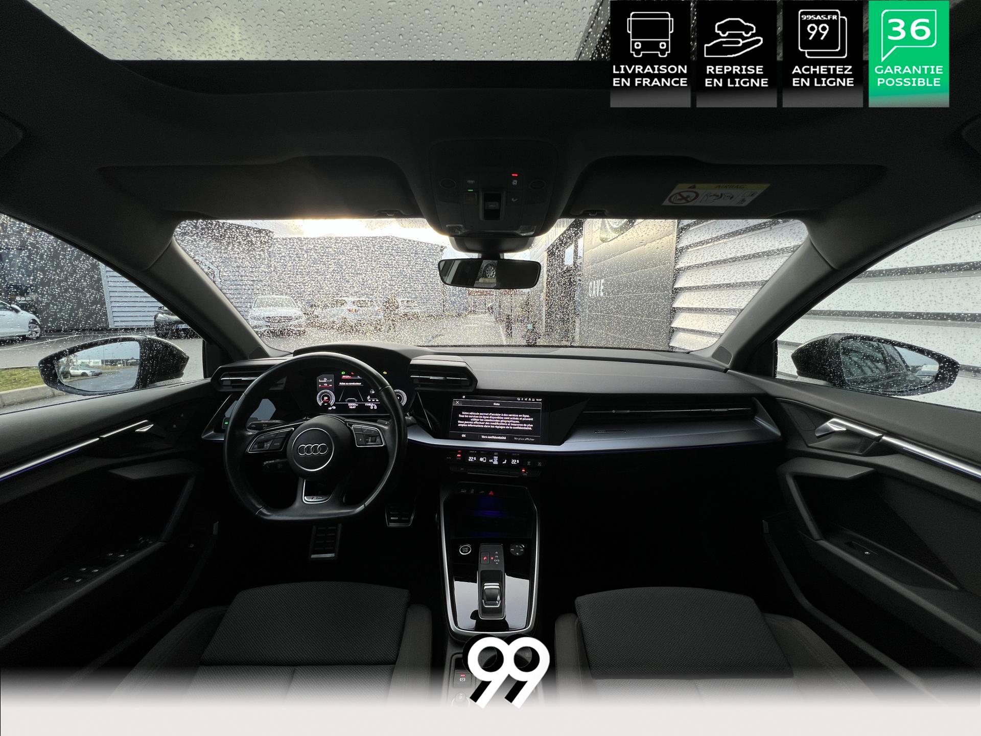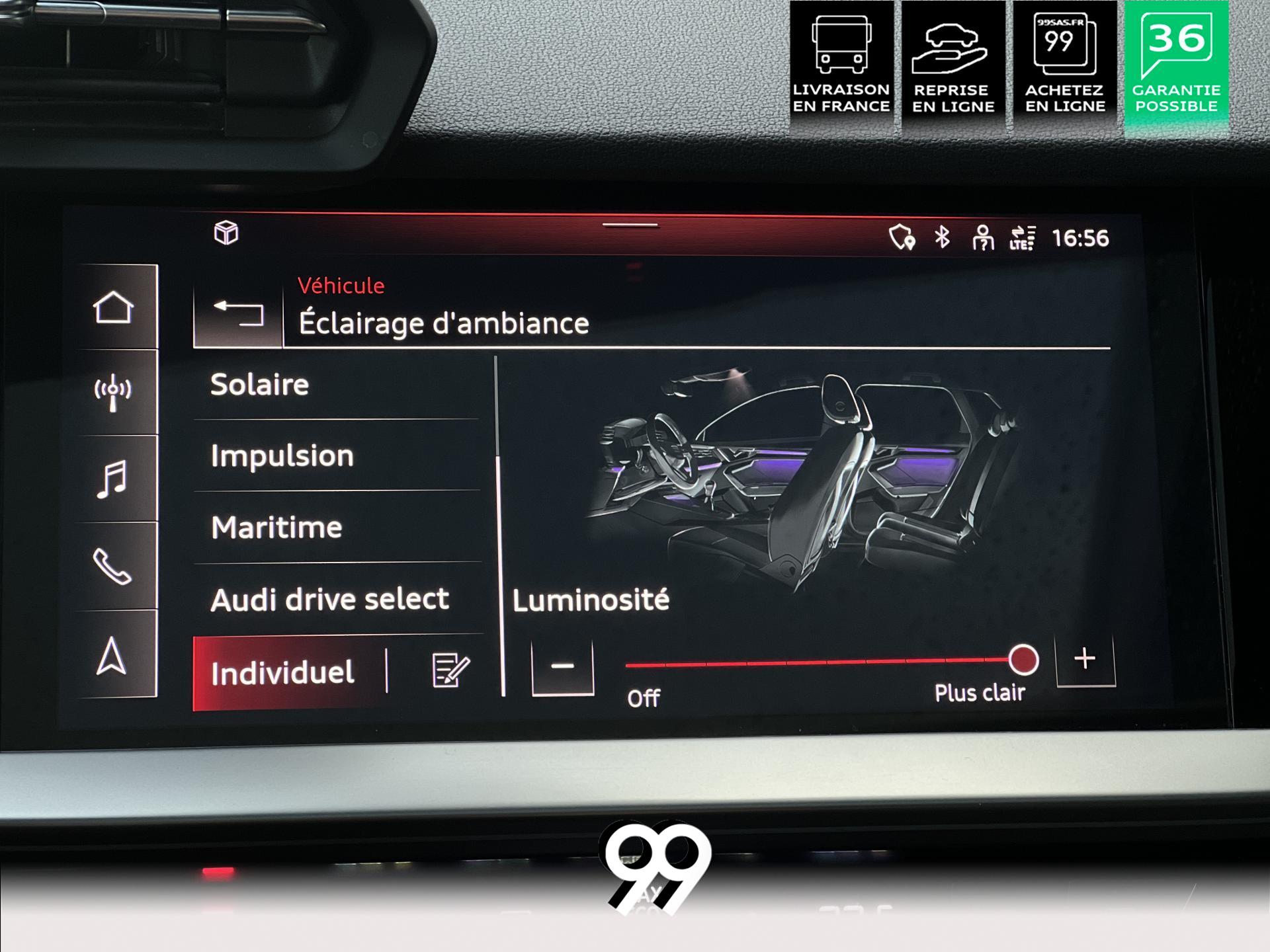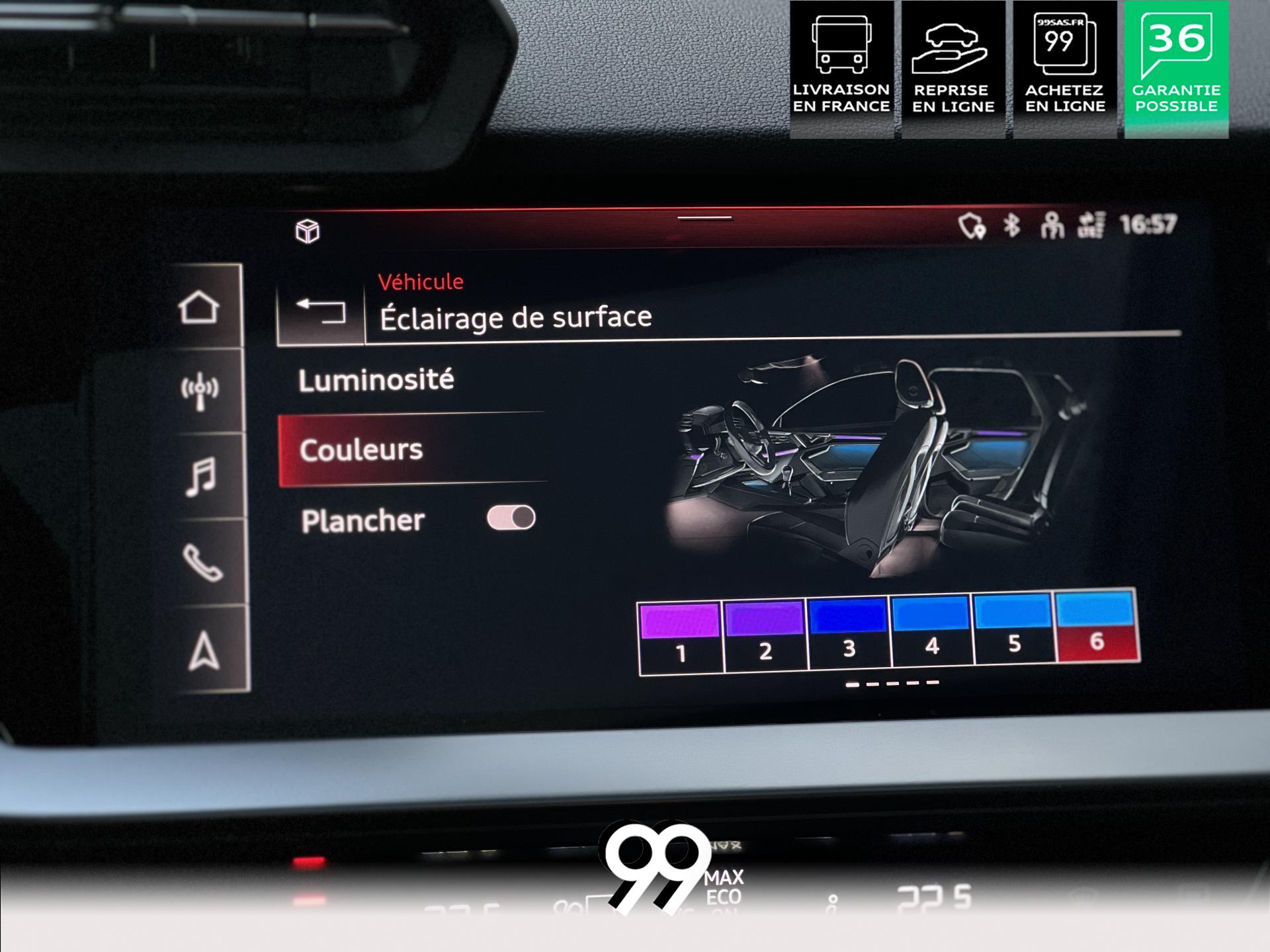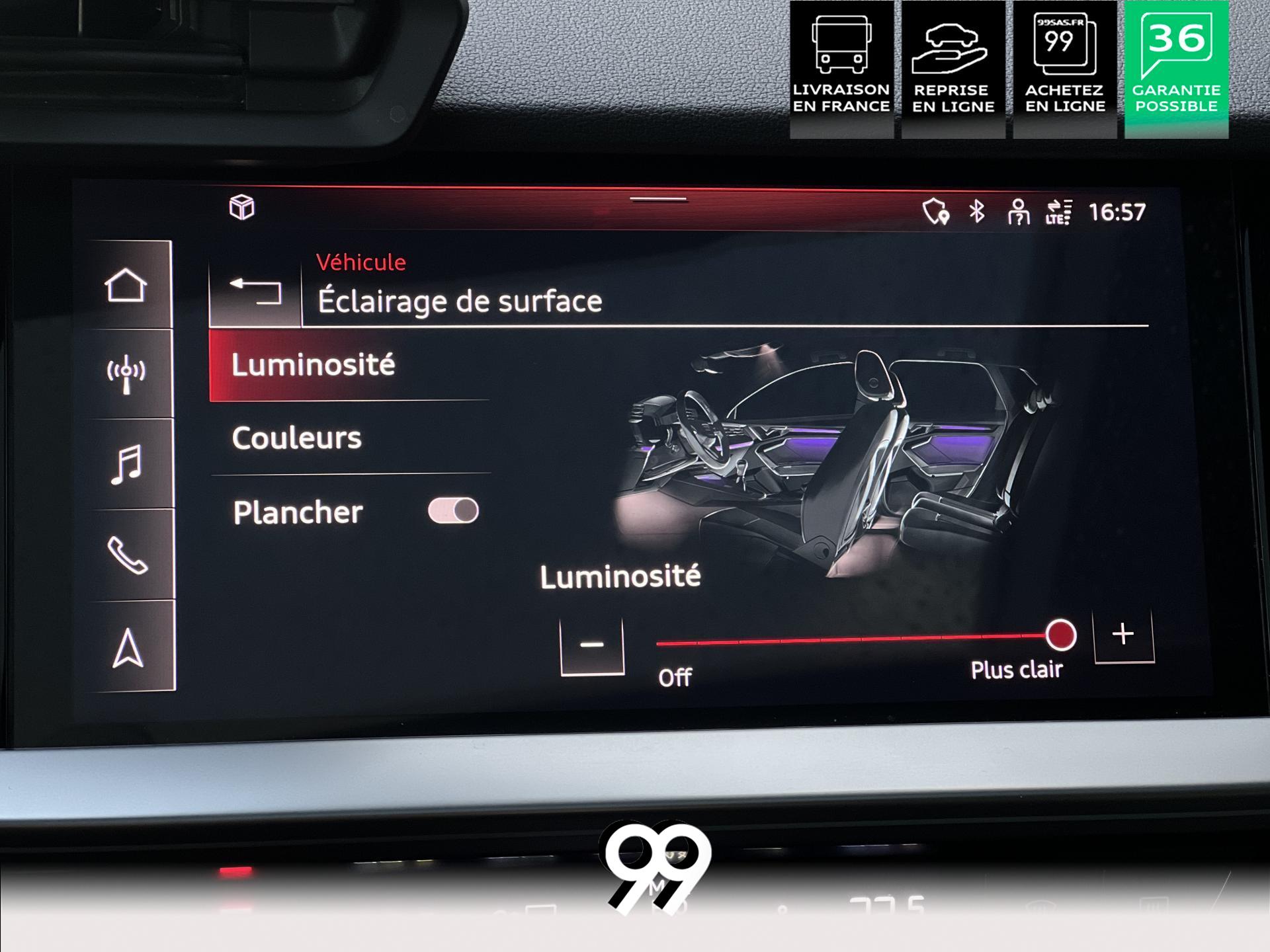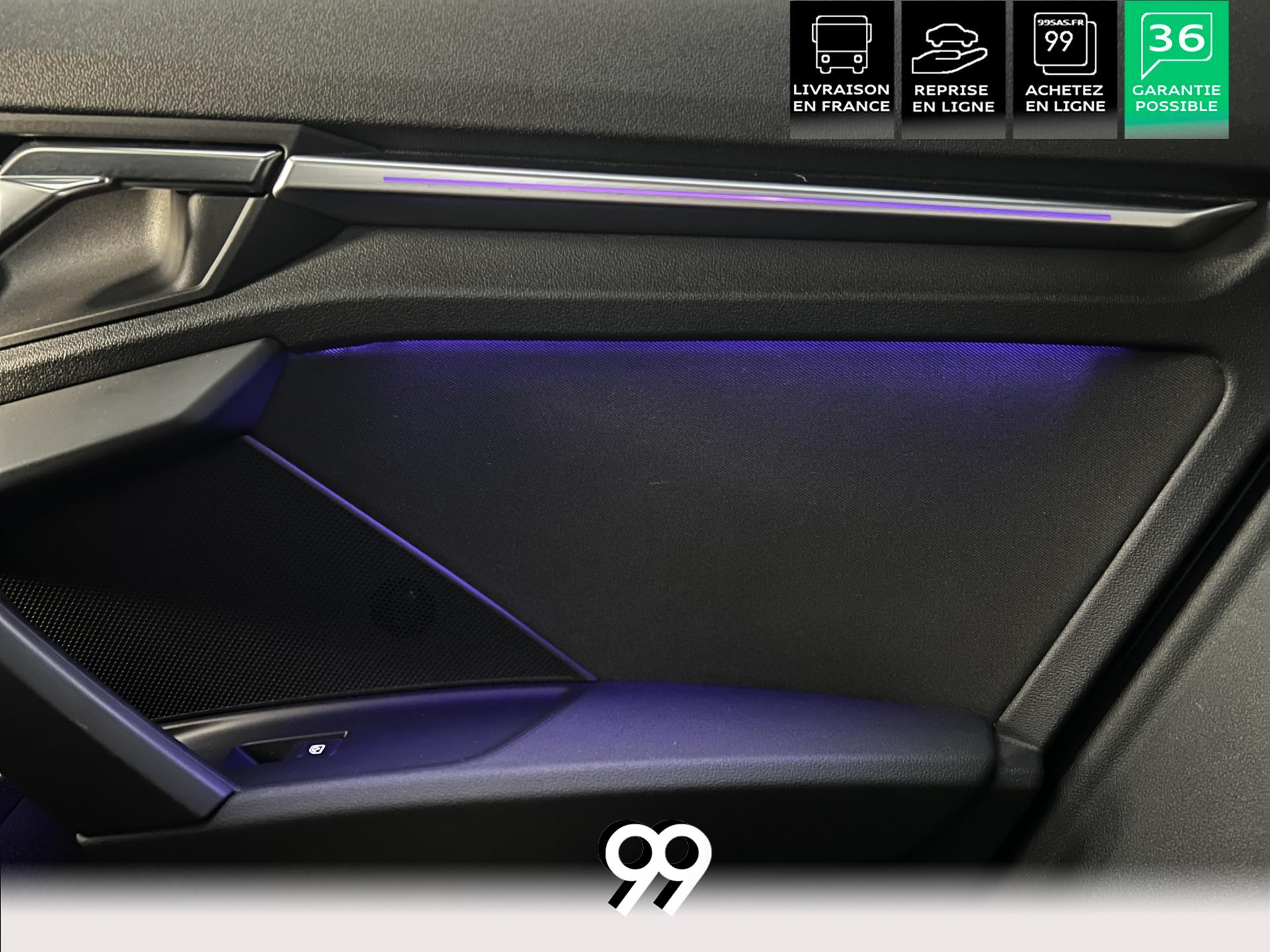 Découvrez cette magnifique A3, un concentré de sophistication, de puissance et de technologie. Son design dynamique est sublimé par des jantes alliage 18 pouces au style affirmé et une élégante peinture métallisée. À l’intérieur, le luxe et le confort règnent en maître : le toit panoramique inonde l’habitacle de lumière, tandis que le pack d’éclairage d’ambiance multicolore crée une atmosphère personnalisable.