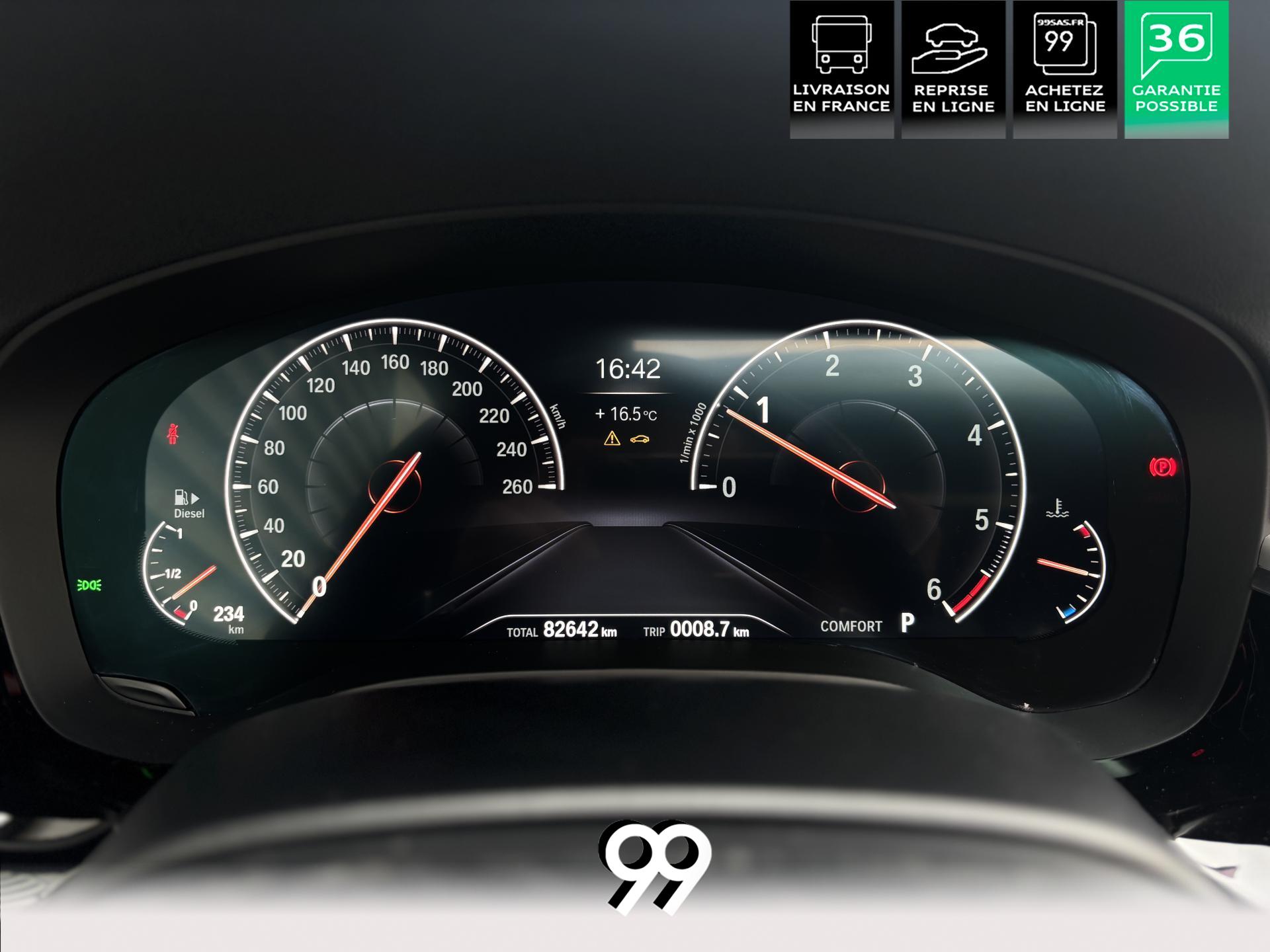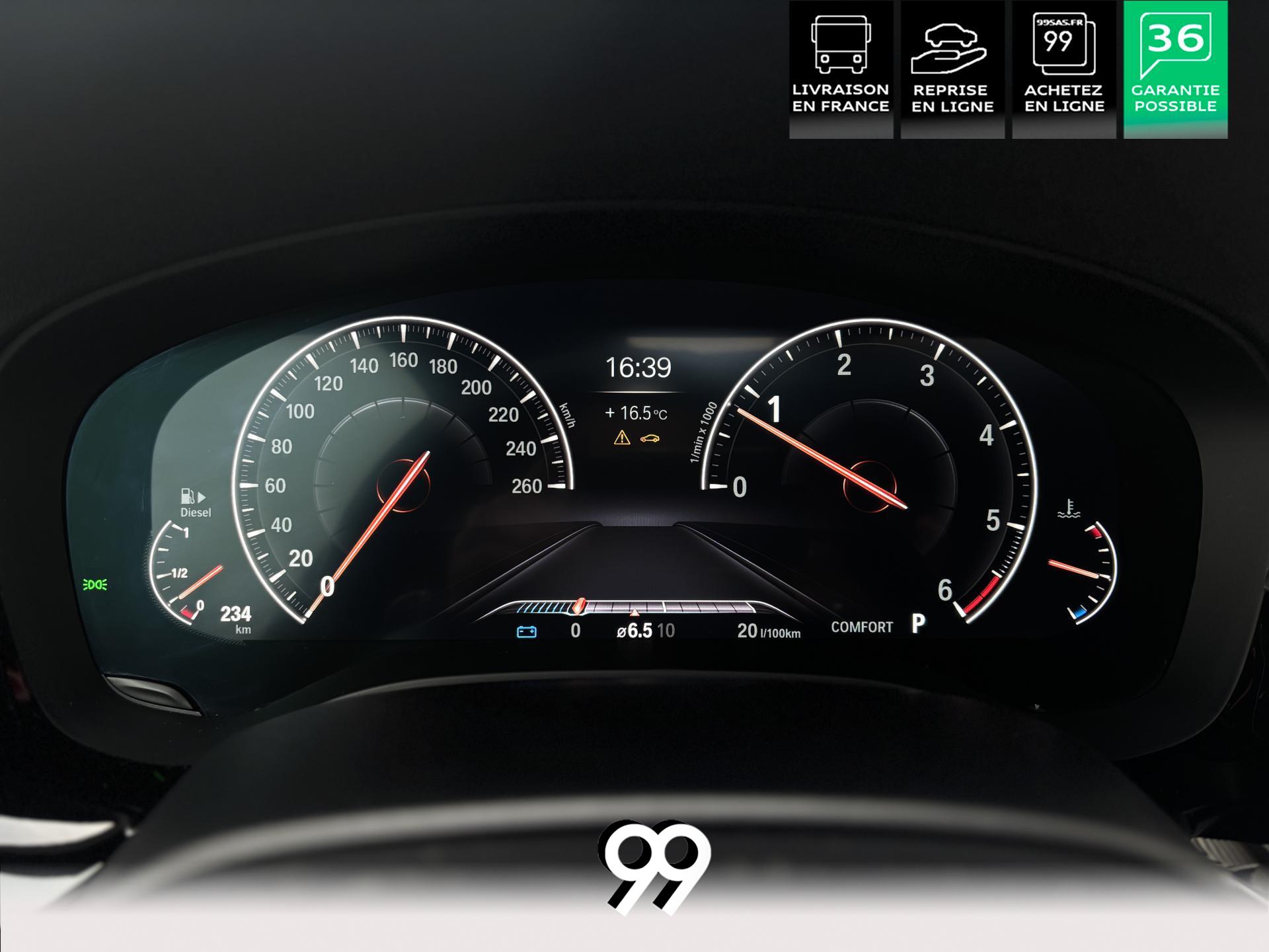 Jantes alliage 19’’ style 664M Orbitgrau avec pneus runflat, rails de toit Shadow Line, volant M gainé cuir et teinte Noir Saphir métallisée renforcent son caractère sportif. Le châssis précis et la sobriété du 2.0d 190 ch (124 g/km CO₂) complètent l’ensemble.