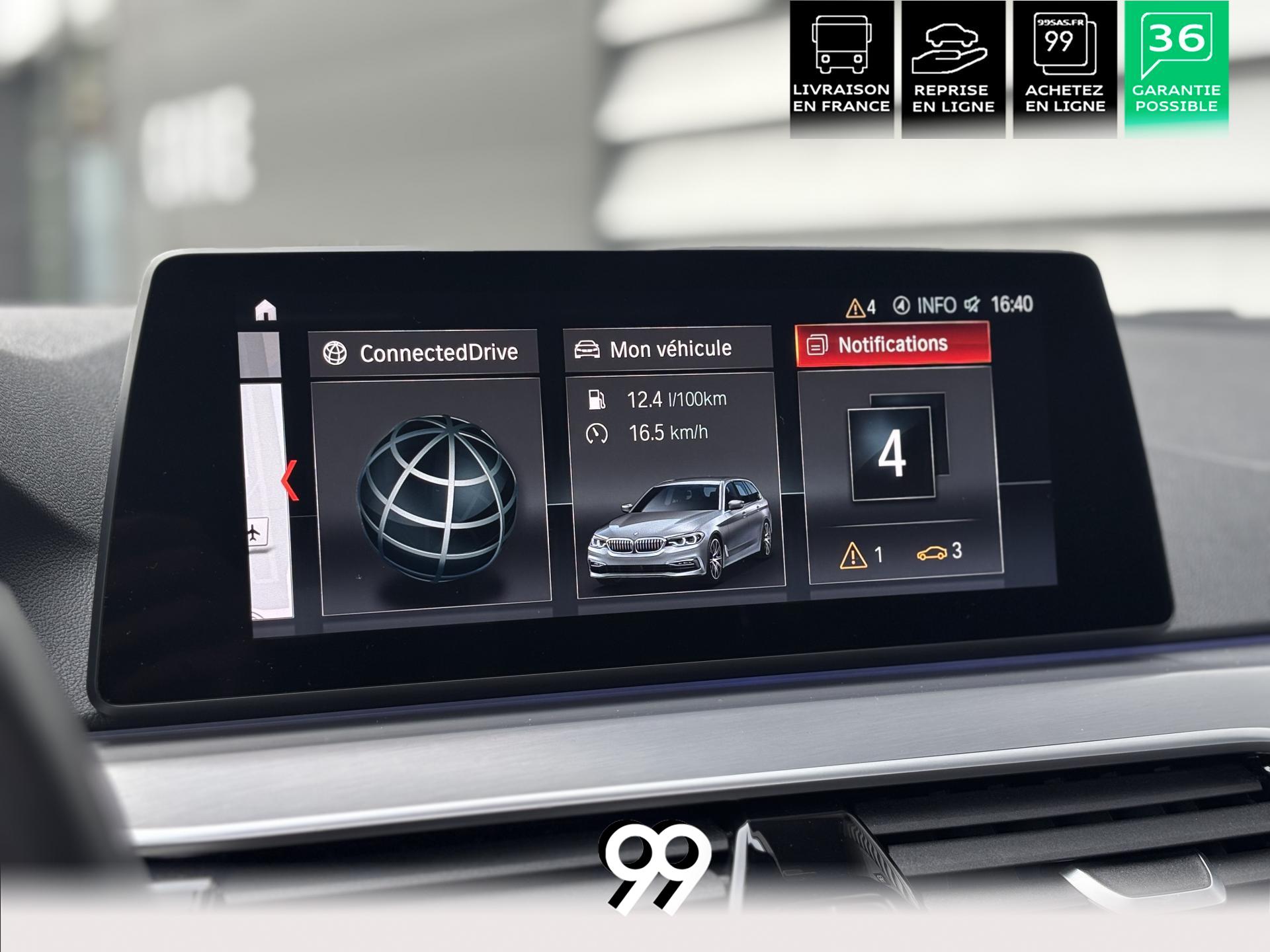 La BMW Série 5 Touring 520d 2.0 190ch M Sport 2018 Noir Saphir métallisée allie élégance, dynamisme et polyvalence. Son moteur diesel performant assure puissance et sobriété, tandis que la finition M Sport renforce son caractère sportif. Spacieuse et technologique, elle offre confort premium, tenue précise et volume de coffre.