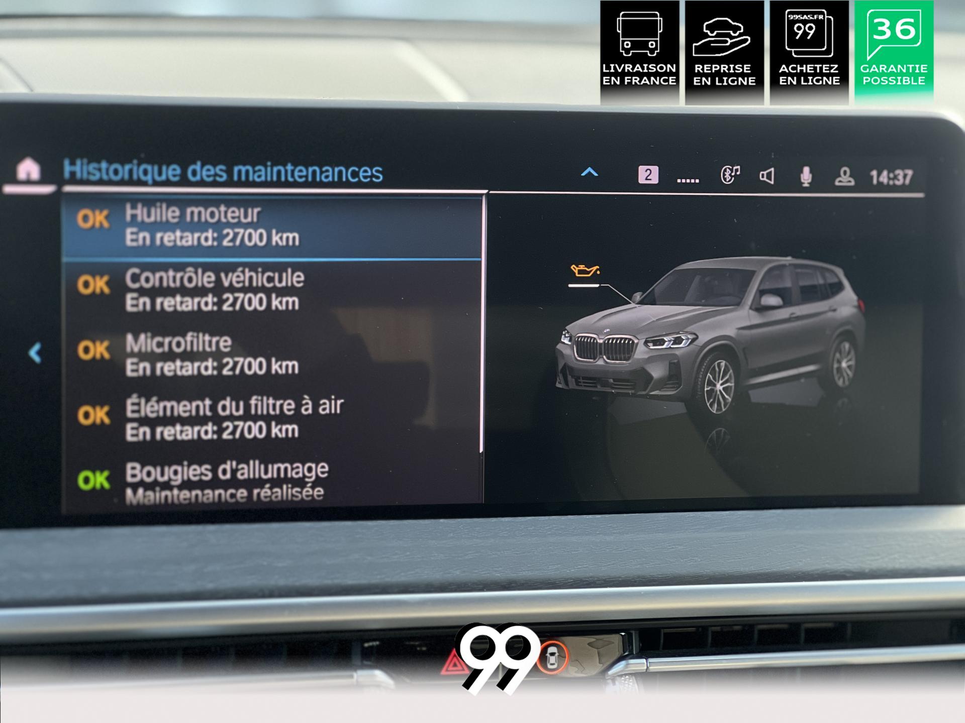 Découvrez le BMW X3 30e, le SUV hybride rechargeable qui allie puissance, élégance et innovation. Son habitacle raffiné, habillé de cuir haut de gamme, vous enveloppe dans un confort absolu, tandis que ses technologies avancées facilitent chaque trajet.