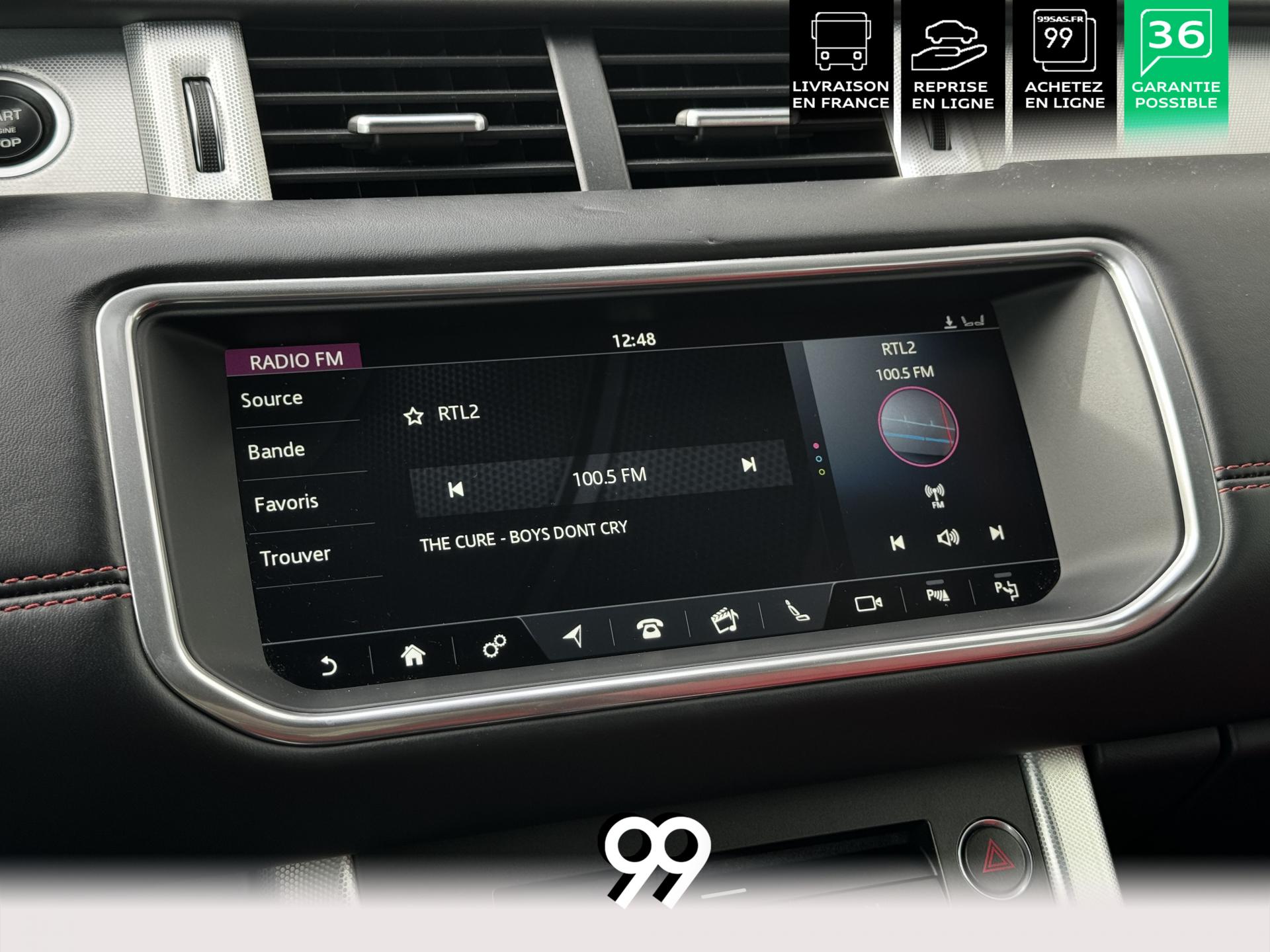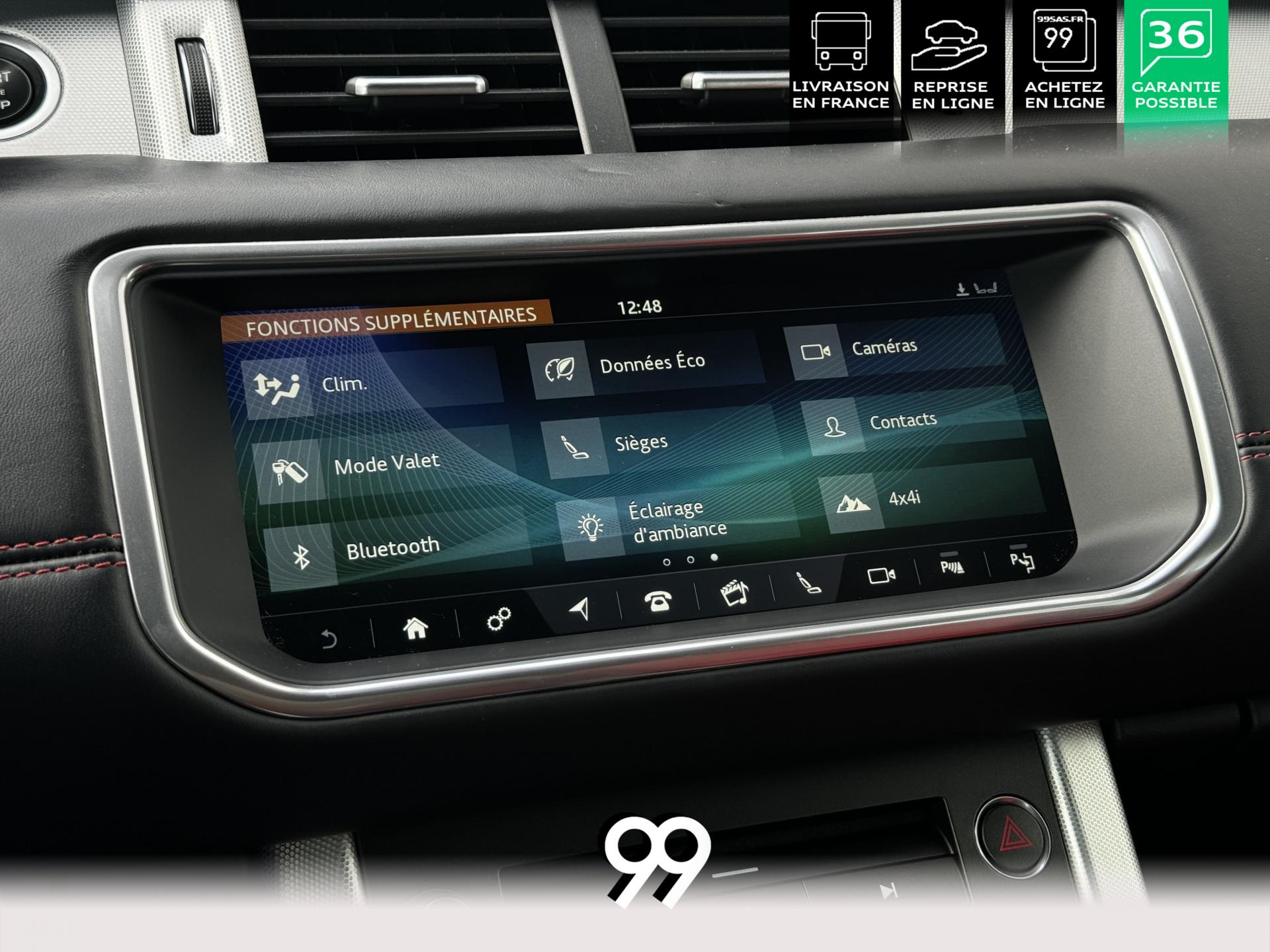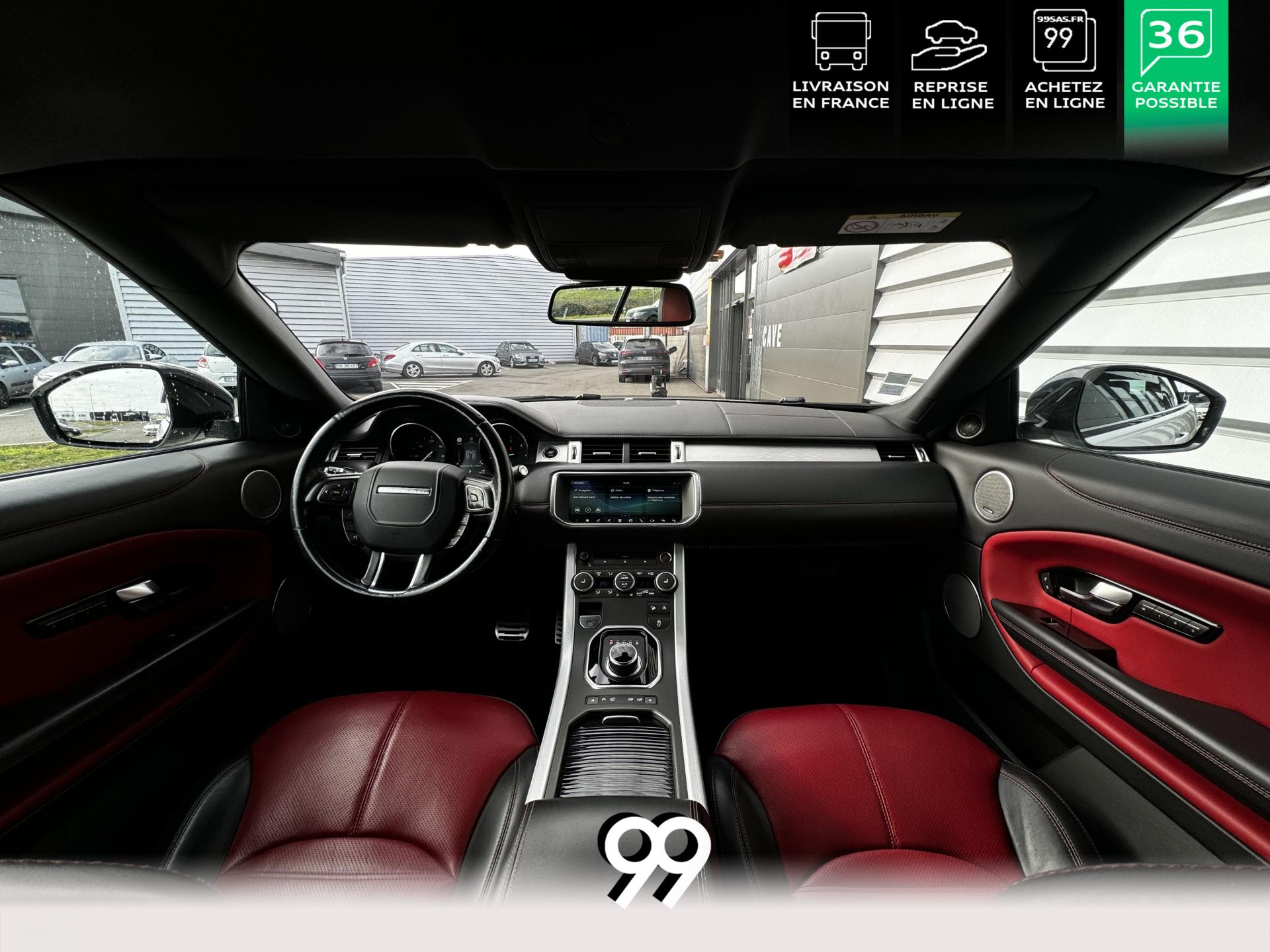 La particularité de notre RANGE ROVER EVOQUE est qu'il est parfaitement configuré : sièges chauffants (parfait pour l'intersaison) et ventilé (parfait pour l'été), le programme de massage des dorsaux. Le cuir étendu en bi couleur donne un rendu très luxueux à son bord. Evidemment en terme de technologie nous ne sommes pas en reste avec des phares LED, le grand écran infotainment, la caméra de recul, la lumière d'ambiance.