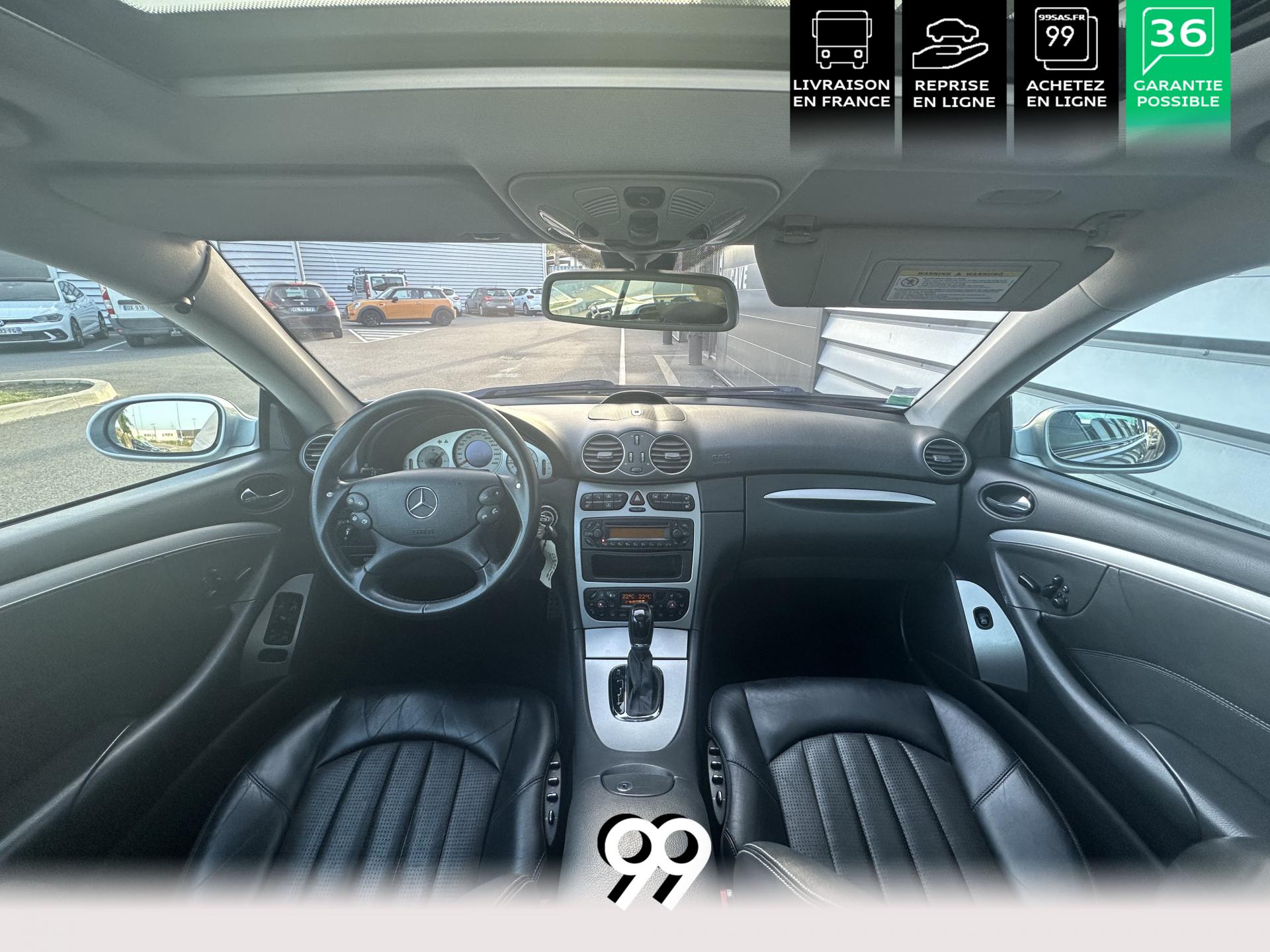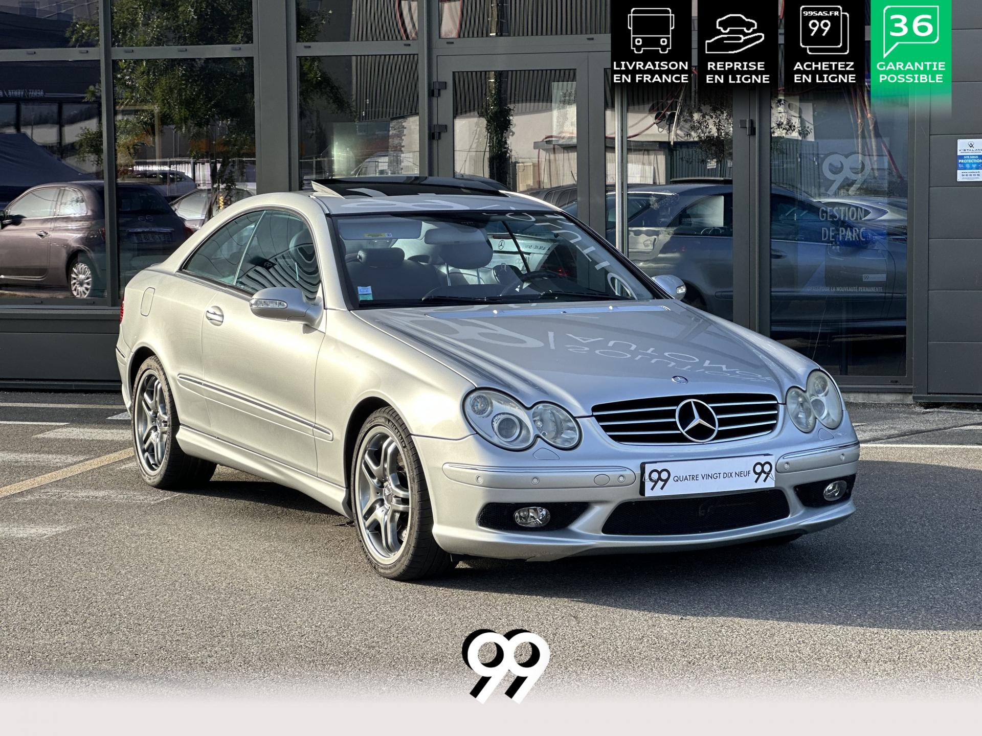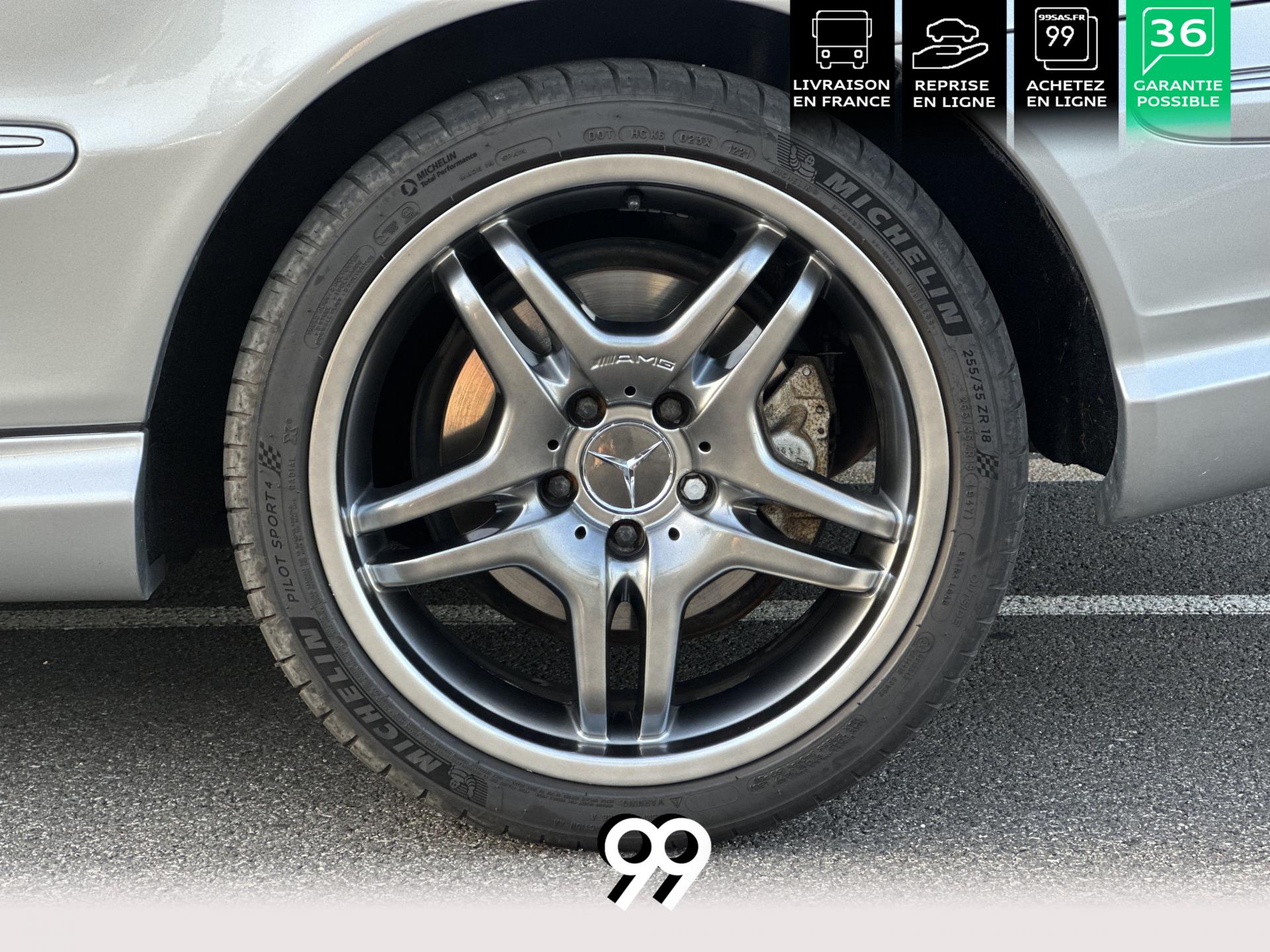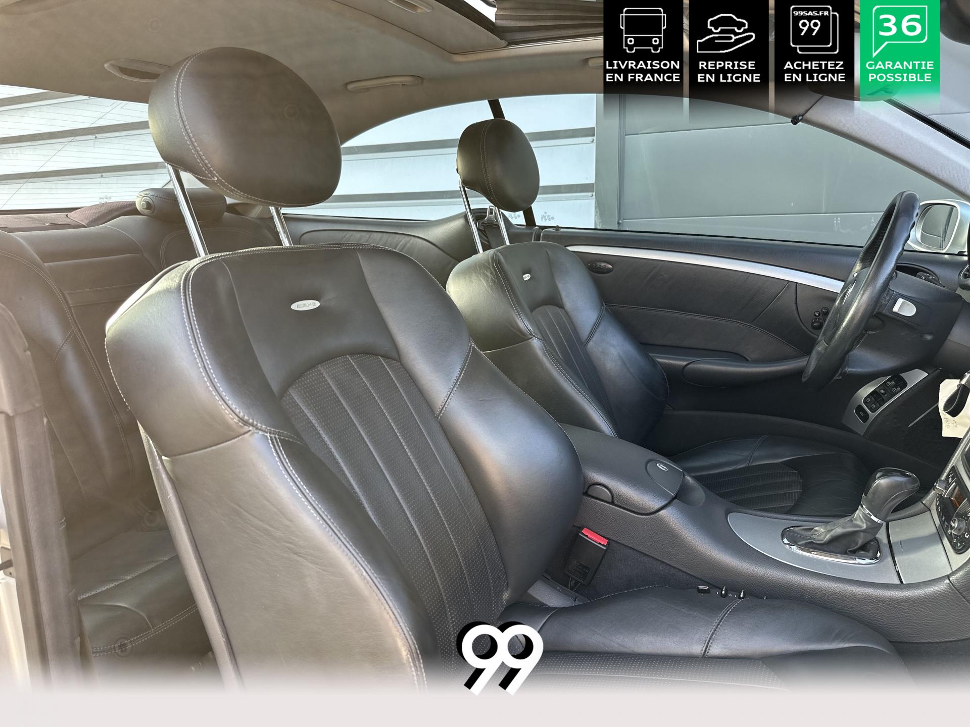 Si sur ses berlines AMG, Mercedes n'est pas très démonstratif sur le plan des artifices de style, les coupés et cabriolets CLK héritent heureusement de quelques accessoires et caractéristiques bienvenus. Ainsi, le bouclier avant se veut très agressif avec ses entrées d'air élargies et ses grilles noires enchâssant les antibrouillards. Des bas de caisse au dessin plus évocateur sont posés et le bouclier arrière est spécialement dessiné pour laisser passer la double sorties d'échappement chromées du V8 atmosphérique. Petit raffinement sportif extrême, un discret becquet de malle arrière a été posé et peint couleur caisse. Le CLK ainsi gréé du kit AMG repose en outre sur de très belles jantes alu de 18" très ajourées qui laissent apparaître les disques de freins percés et ventilés de fort diamètre.