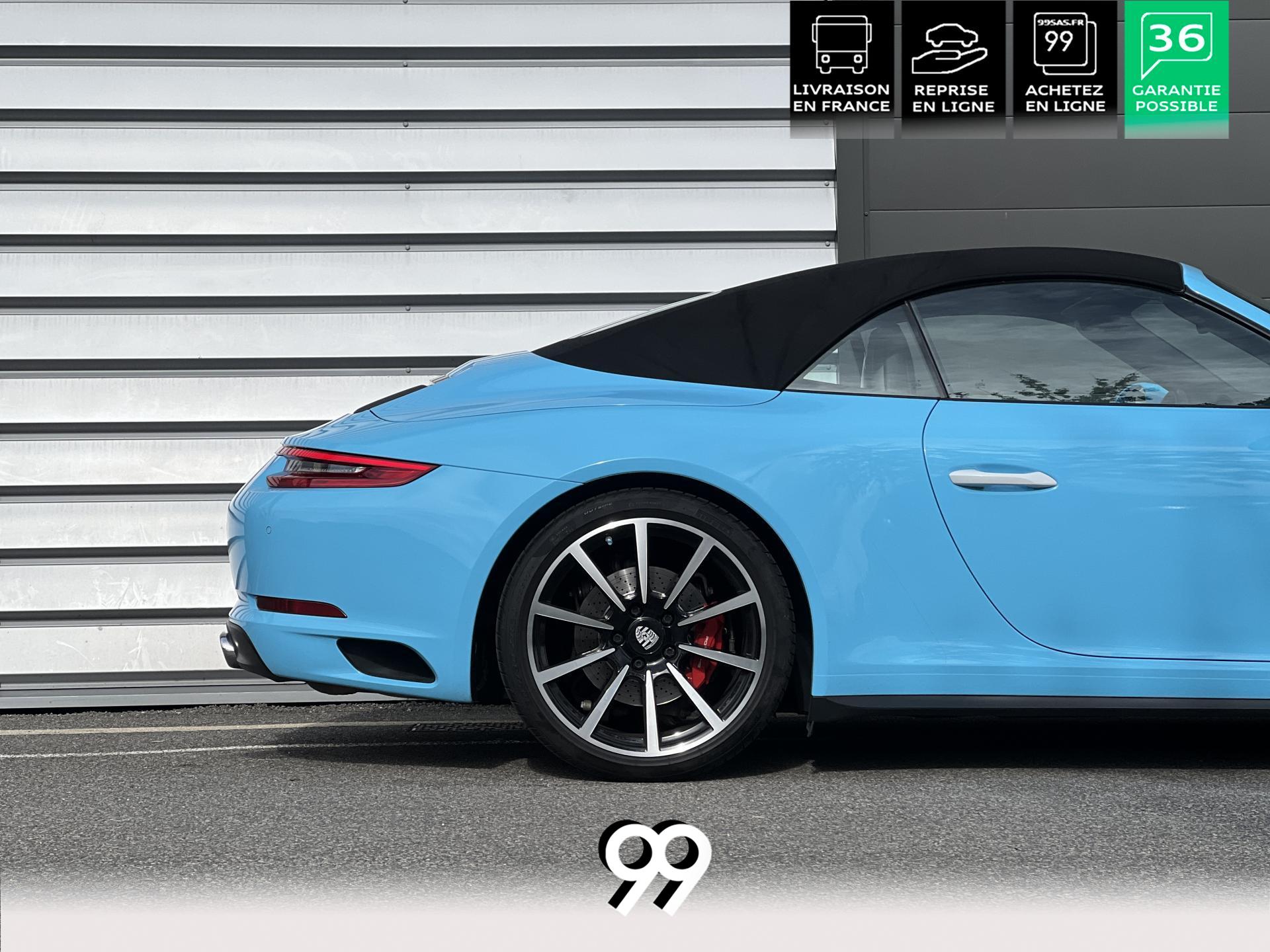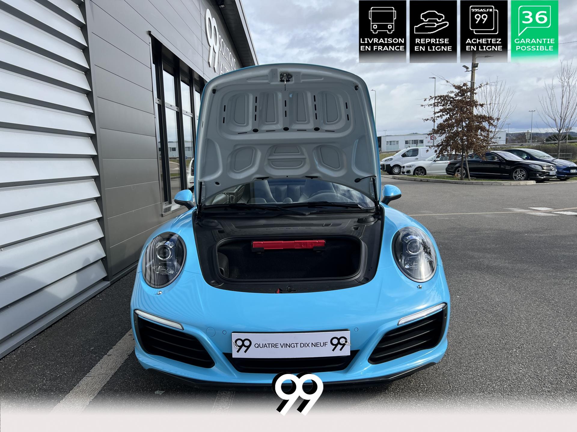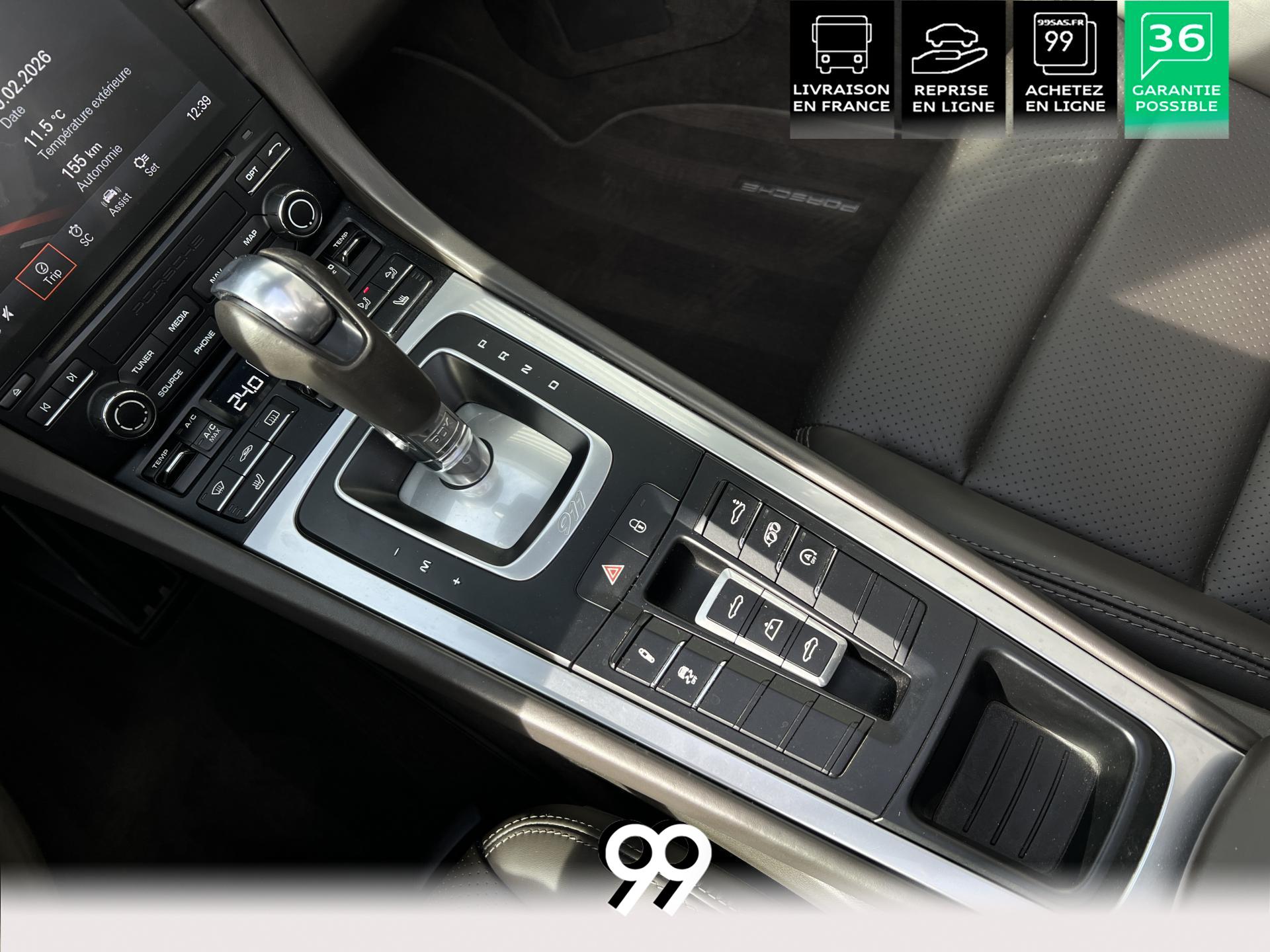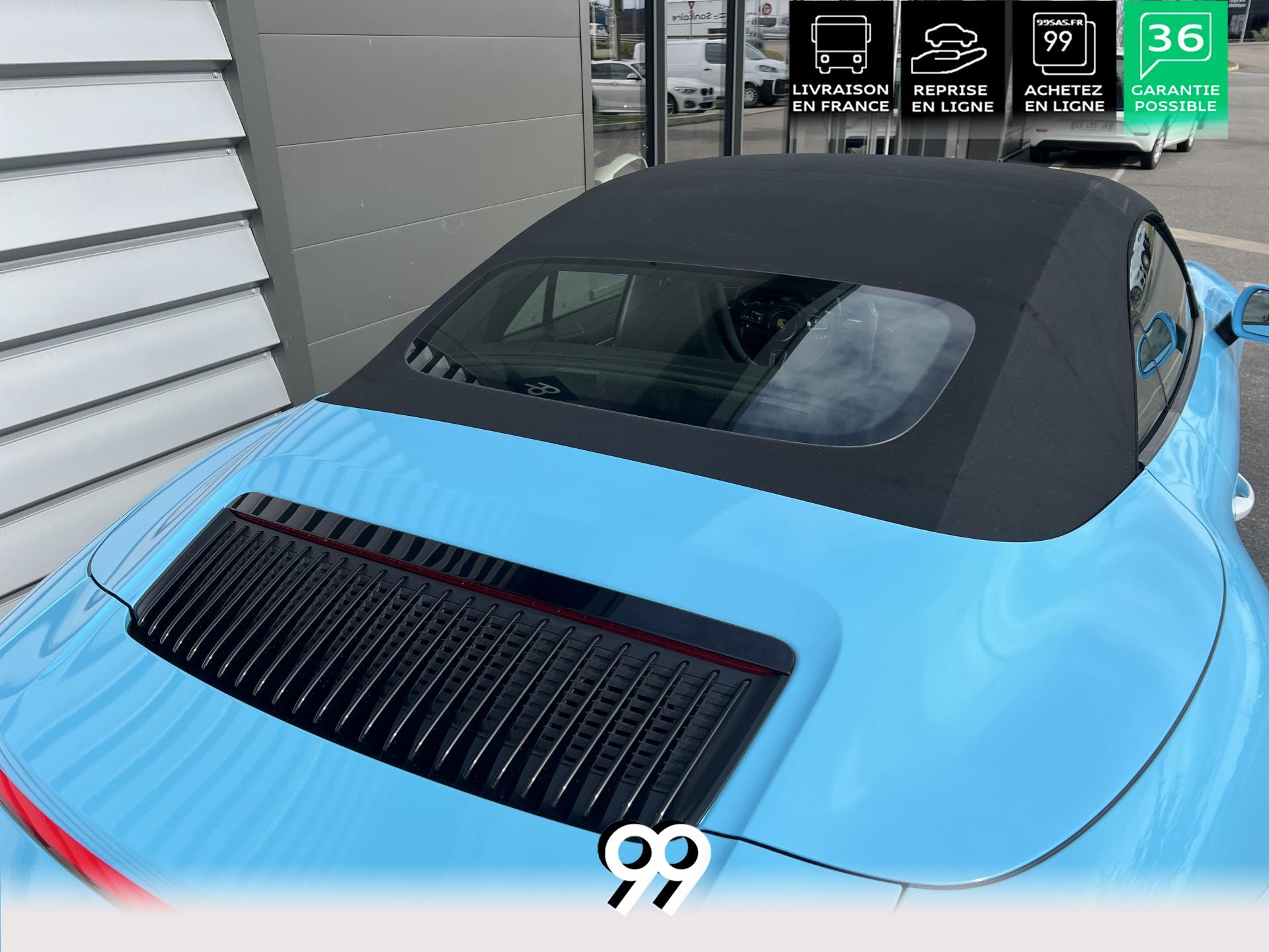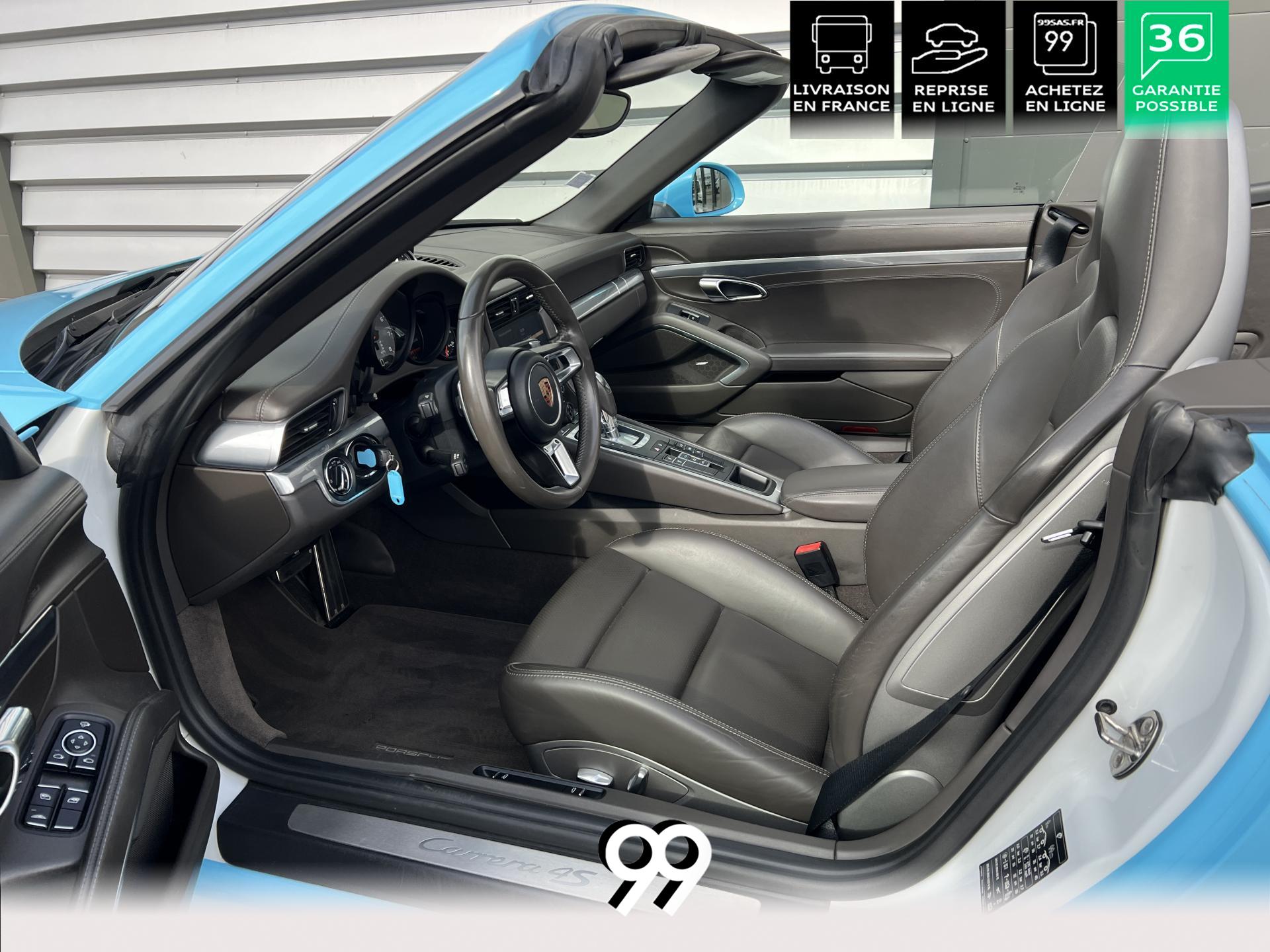 La Porsche 911 Cabriolet 3.0 Flat-6 Turbo 420 ch 4x4 S incarne la sportivité à ciel ouvert. Sa robe Blanc Carrera métallisé sublimée par un covering Bleu Miami affirme son caractère exclusif. Transmission intégrale et boîte automatique garantissent des performances saisissantes et une motricité optimale. Son flat-six biturbo délivre des accélérations franches, tandis que l’habitacle luxueux en cuir Gris Quartz offre un raffinement absolu.