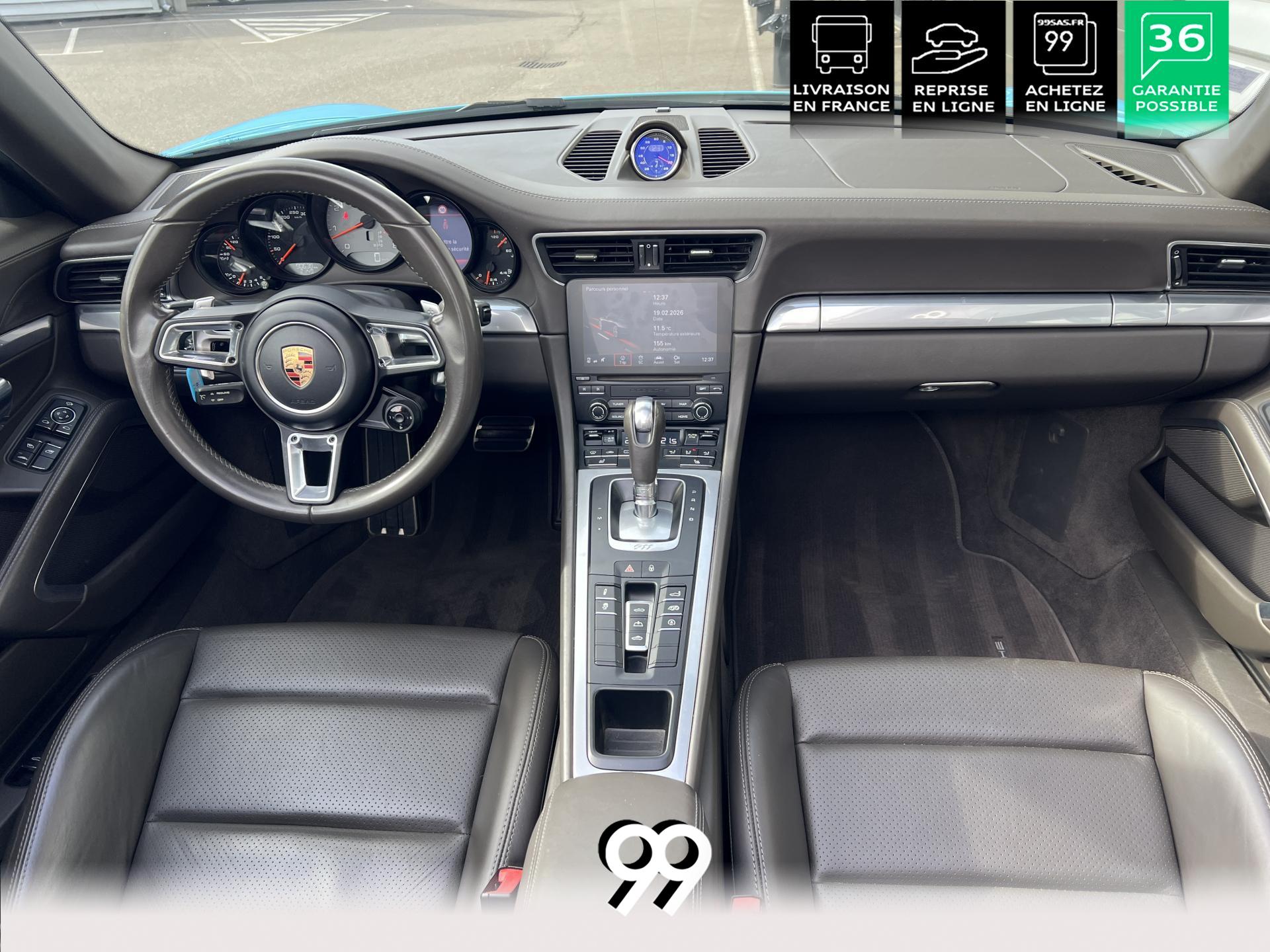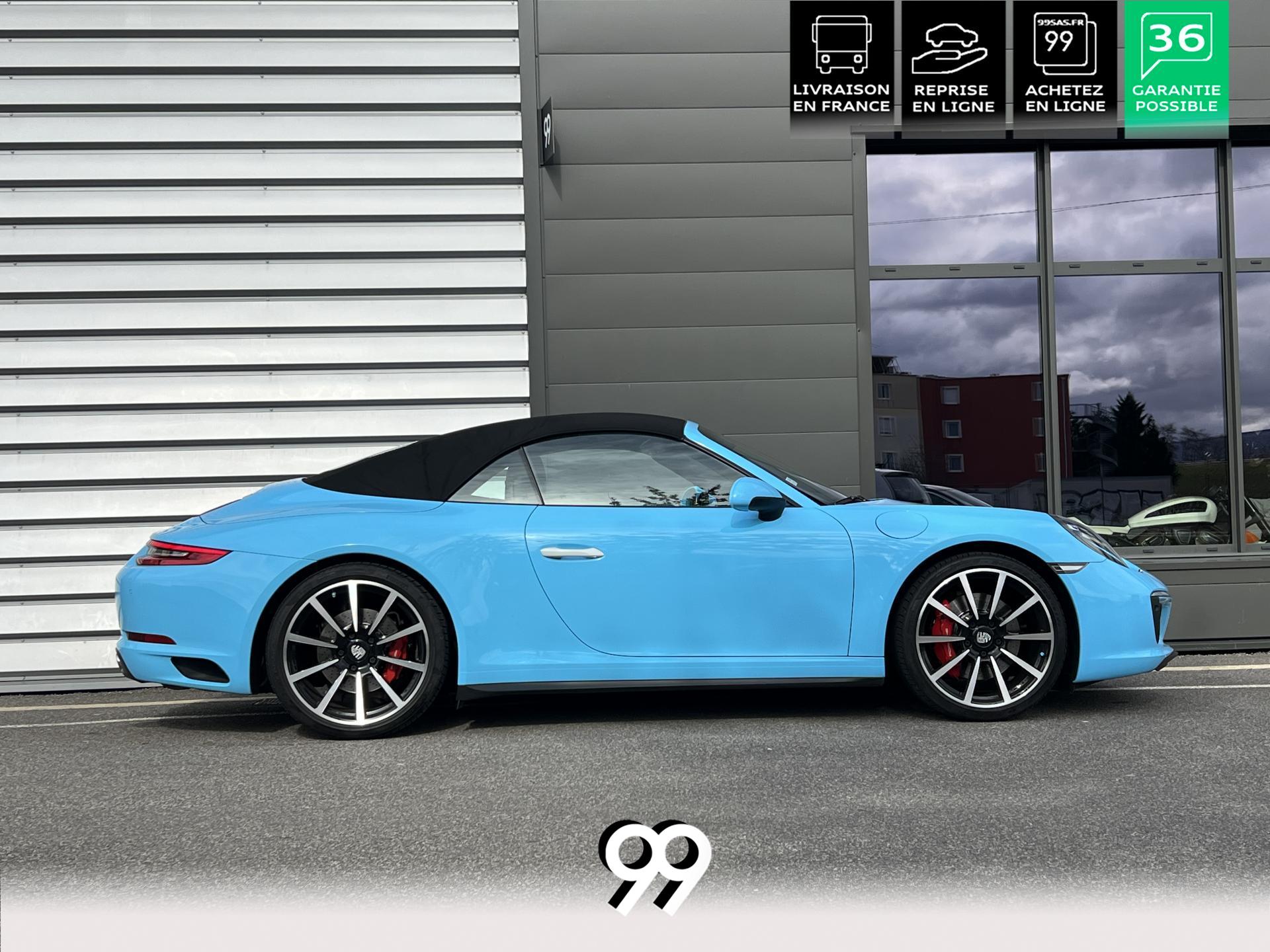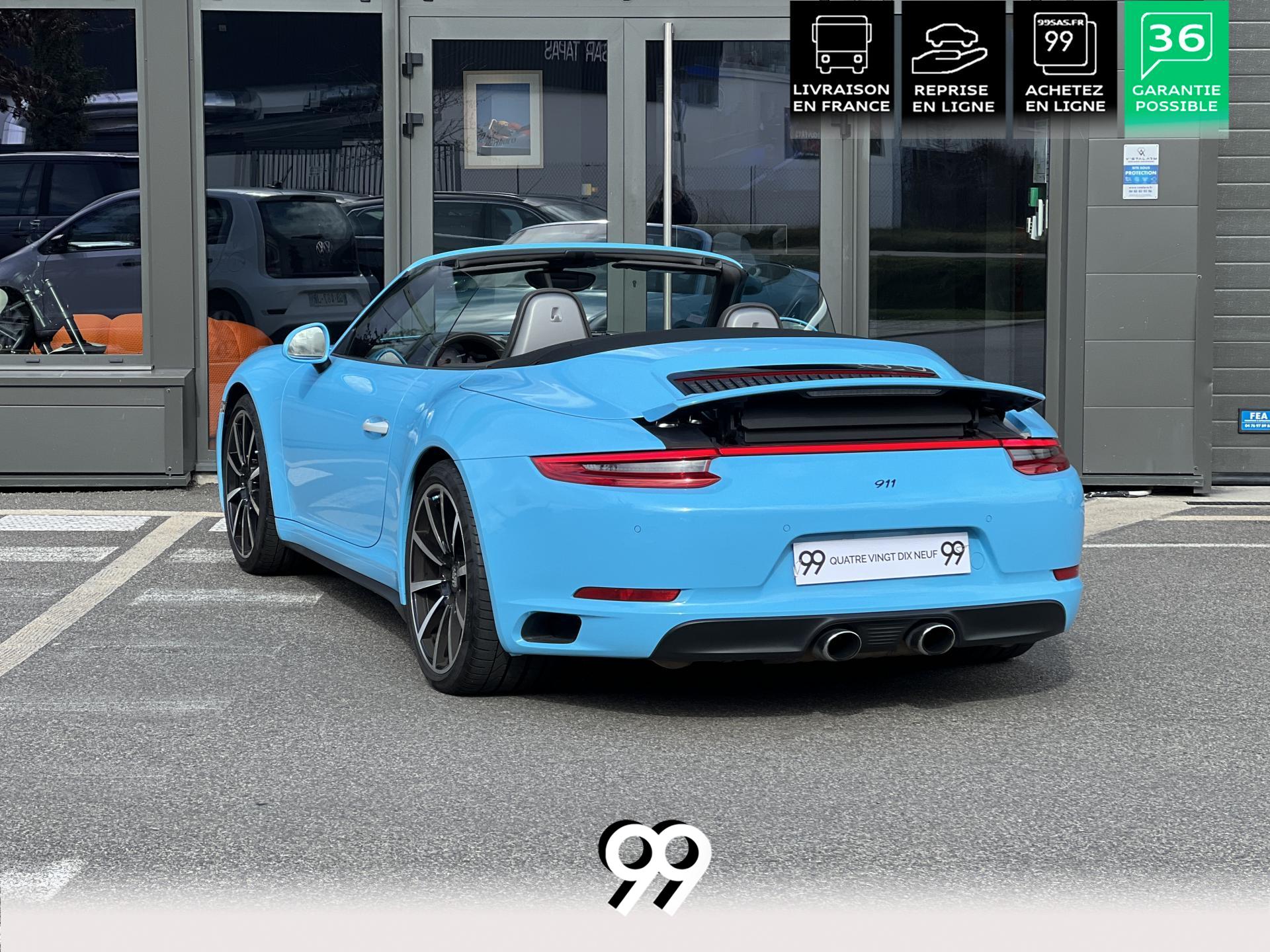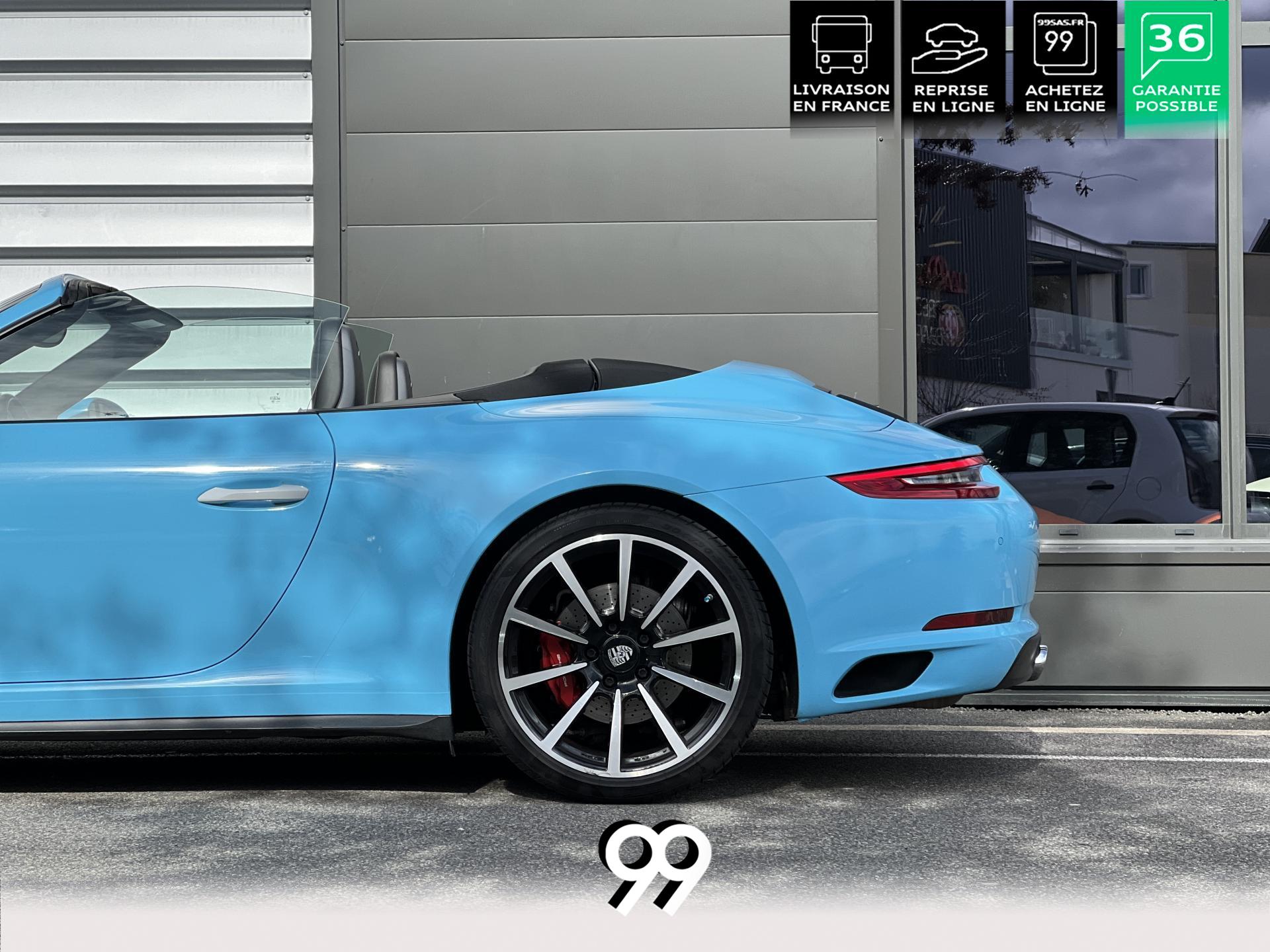 La Porsche 911 Cabriolet 3.0 Flat-6 Turbo 420 ch 4x4 S incarne la sportivité à ciel ouvert. Sa robe Blanc Carrera métallisé sublimée par un covering Bleu Miami affirme son caractère exclusif. Transmission intégrale et boîte automatique garantissent des performances saisissantes et une motricité optimale. Son flat-six biturbo délivre des accélérations franches, tandis que l’habitacle luxueux en cuir Gris Quartz offre un raffinement absolu.