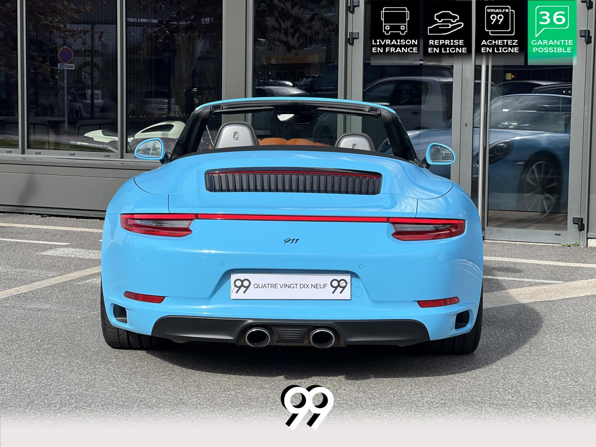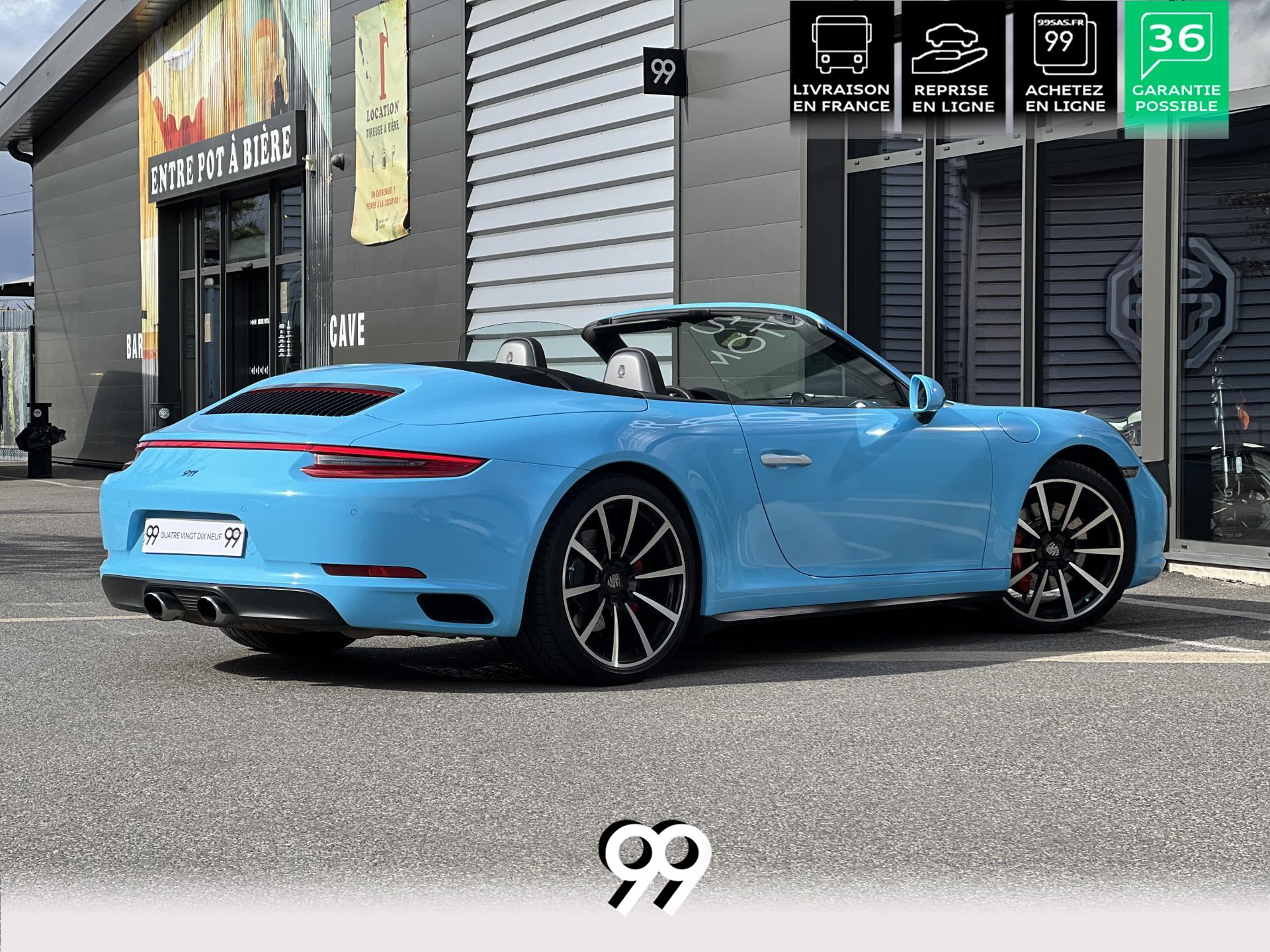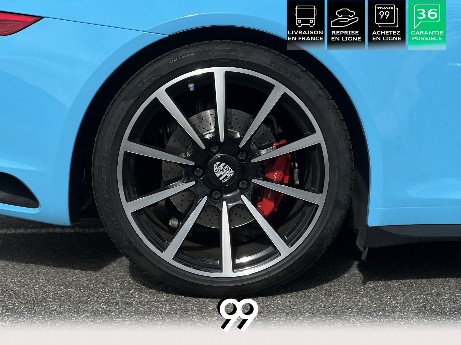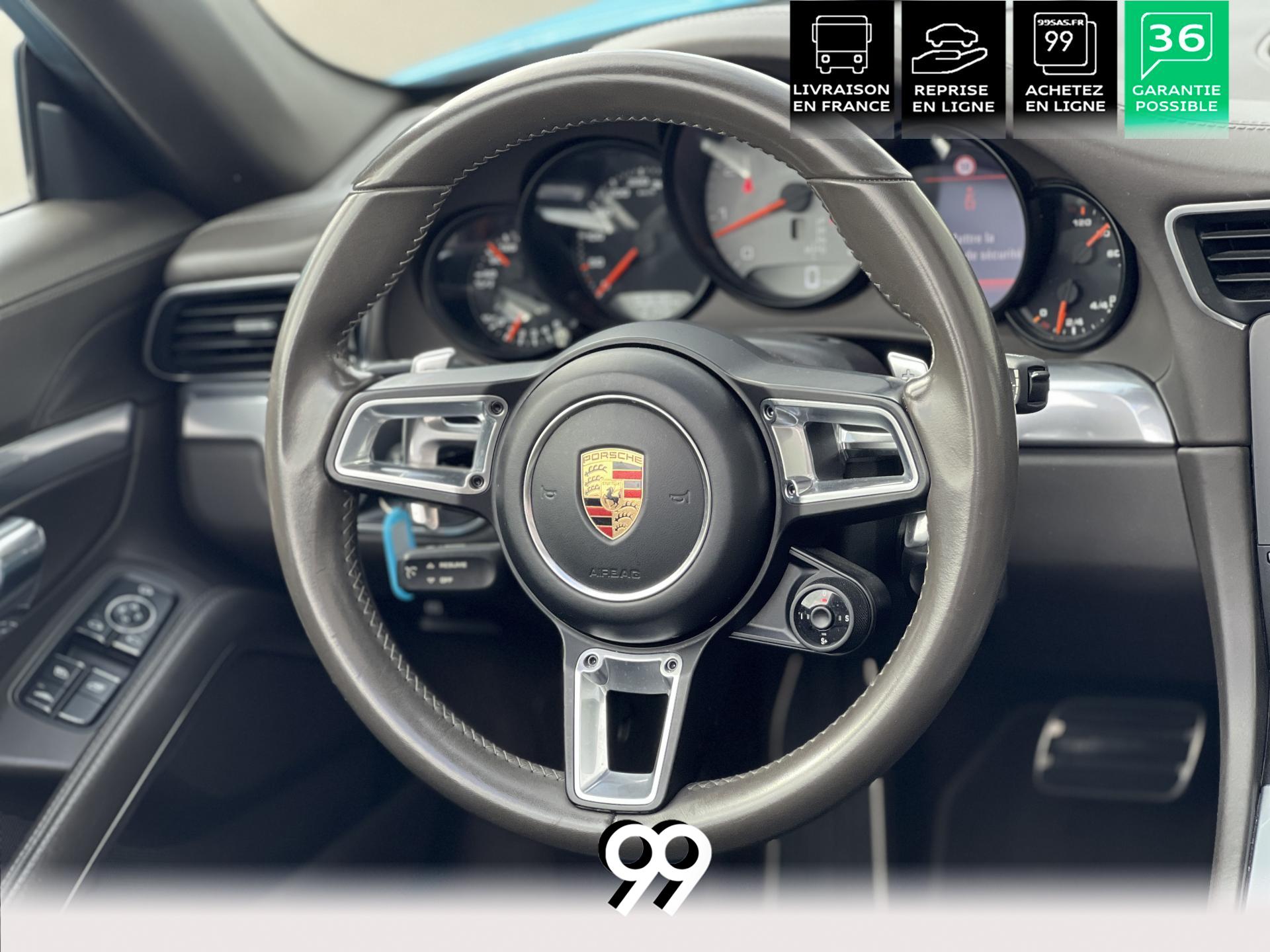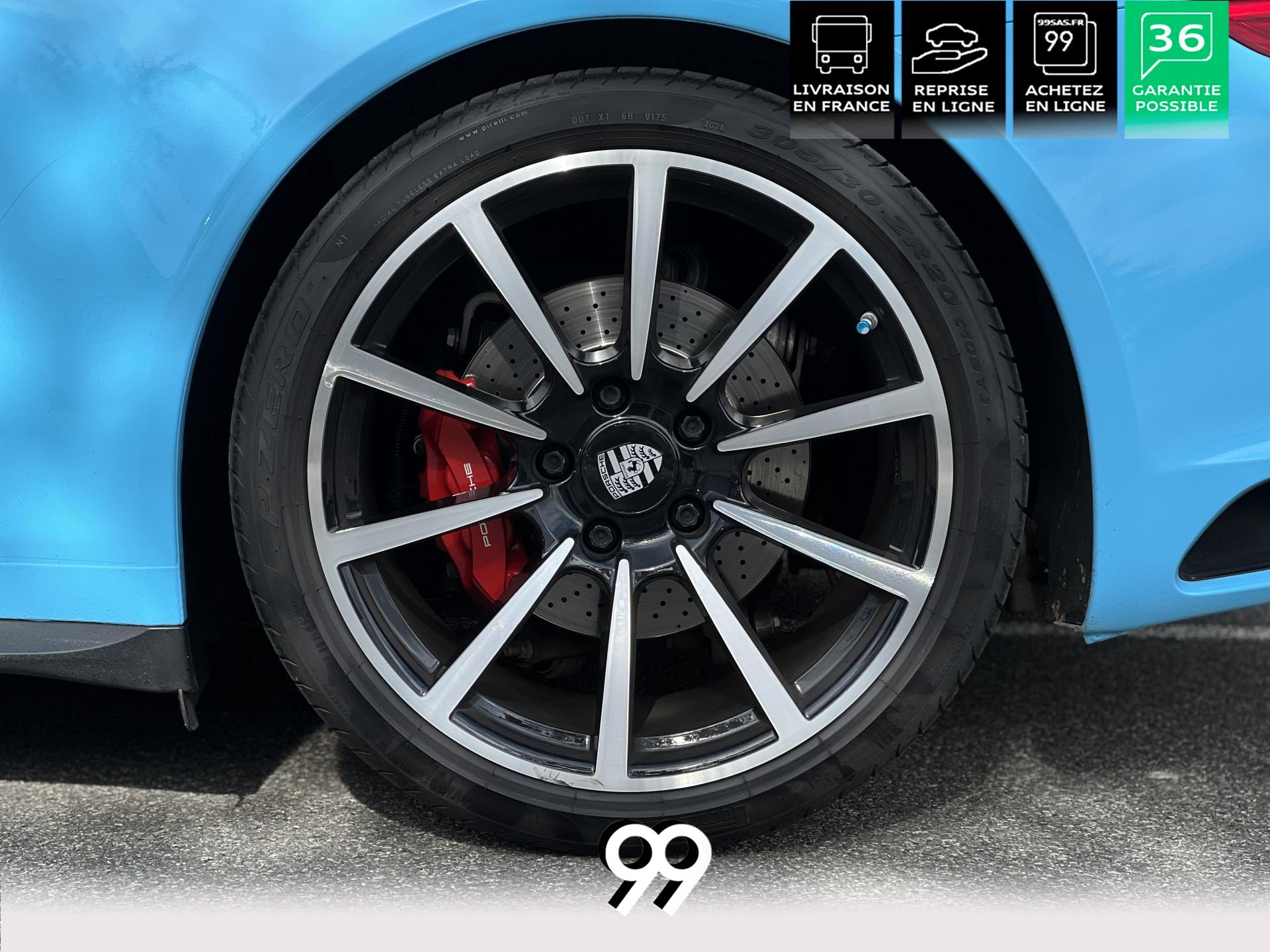La Porsche 911 Cabriolet 3.0 Flat-6 Turbo 420 ch 4x4 S incarne la sportivité à ciel ouvert. Sa robe Blanc Carrera métallisé sublimée par un covering Bleu Miami affirme son caractère exclusif. Transmission intégrale et boîte automatique garantissent des performances saisissantes et une motricité optimale. Son flat-six biturbo délivre des accélérations franches, tandis que l’habitacle luxueux en cuir Gris Quartz offre un raffinement absolu.