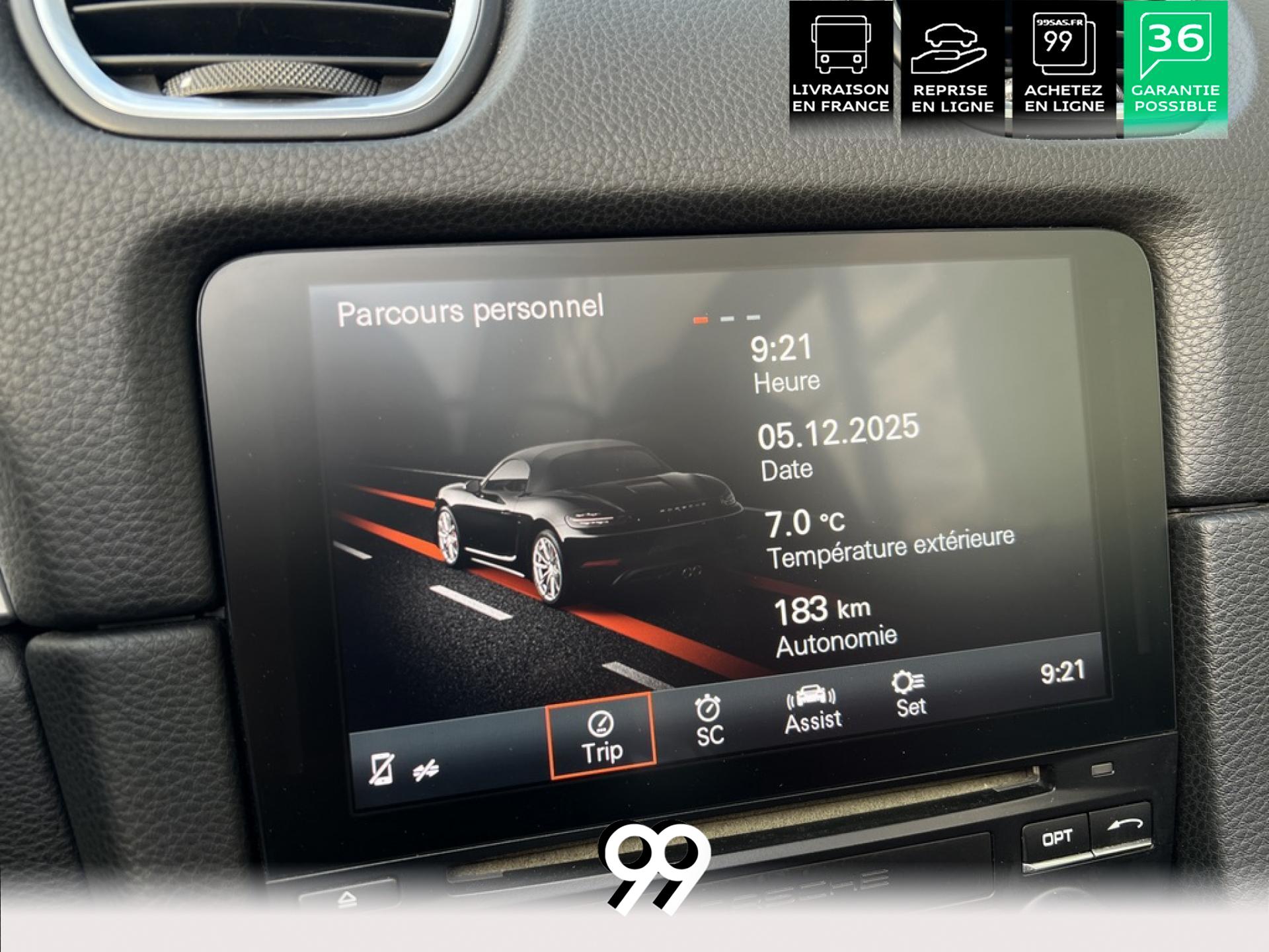 sièges chauffants apportent un bien-être immédiat, idéal pour profiter pleinement de chaque trajet, même capote ouverte. Avec son style affirmé, son comportement routier exceptionnel et ses équipements premium, cette Boxster incarne l’essence même du plaisir de conduite à ciel ouvert, dans une ambiance résolument moderne et exclusive.