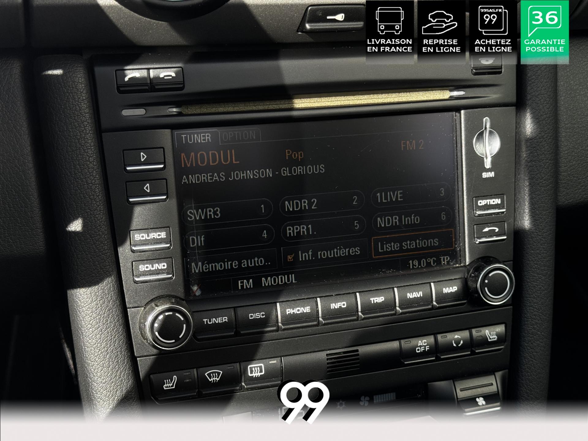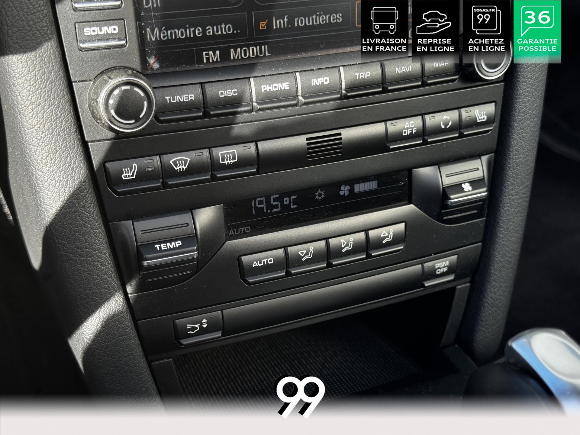 Confort et style sont également au rendez-vous avec : phares bi-xénon directionnels avec lave-phares, sièges partiels cuir chauffants avec écusson Porsche en relief, volant SportDesign, climatisation automatique bi-zone, assistance parking arrière, saute-vent et tapis de sol.