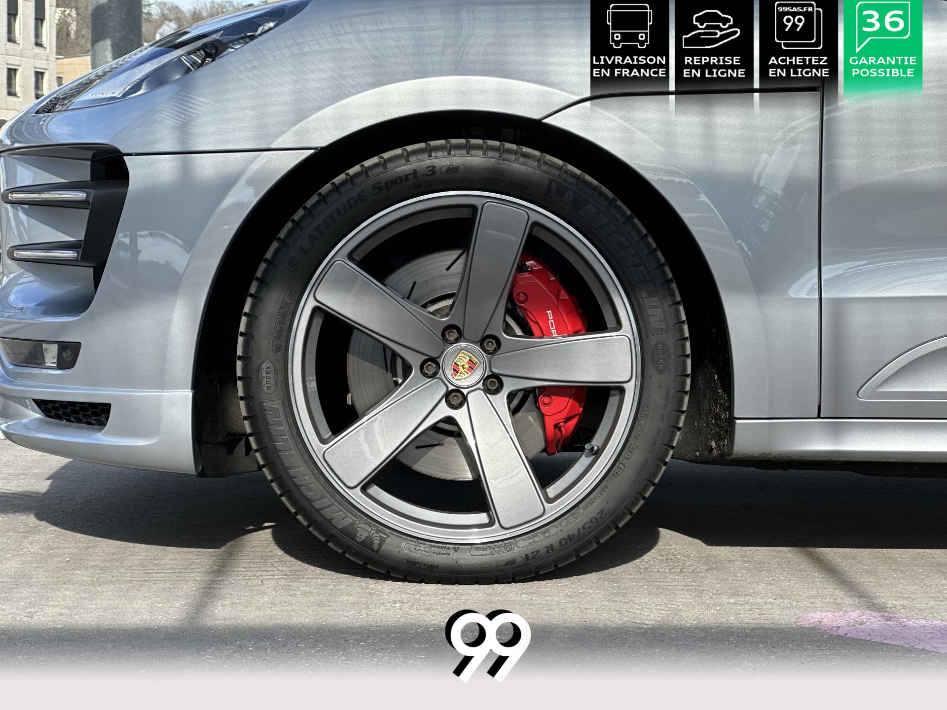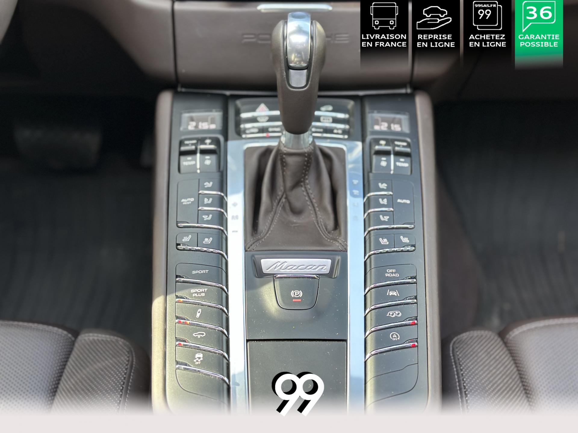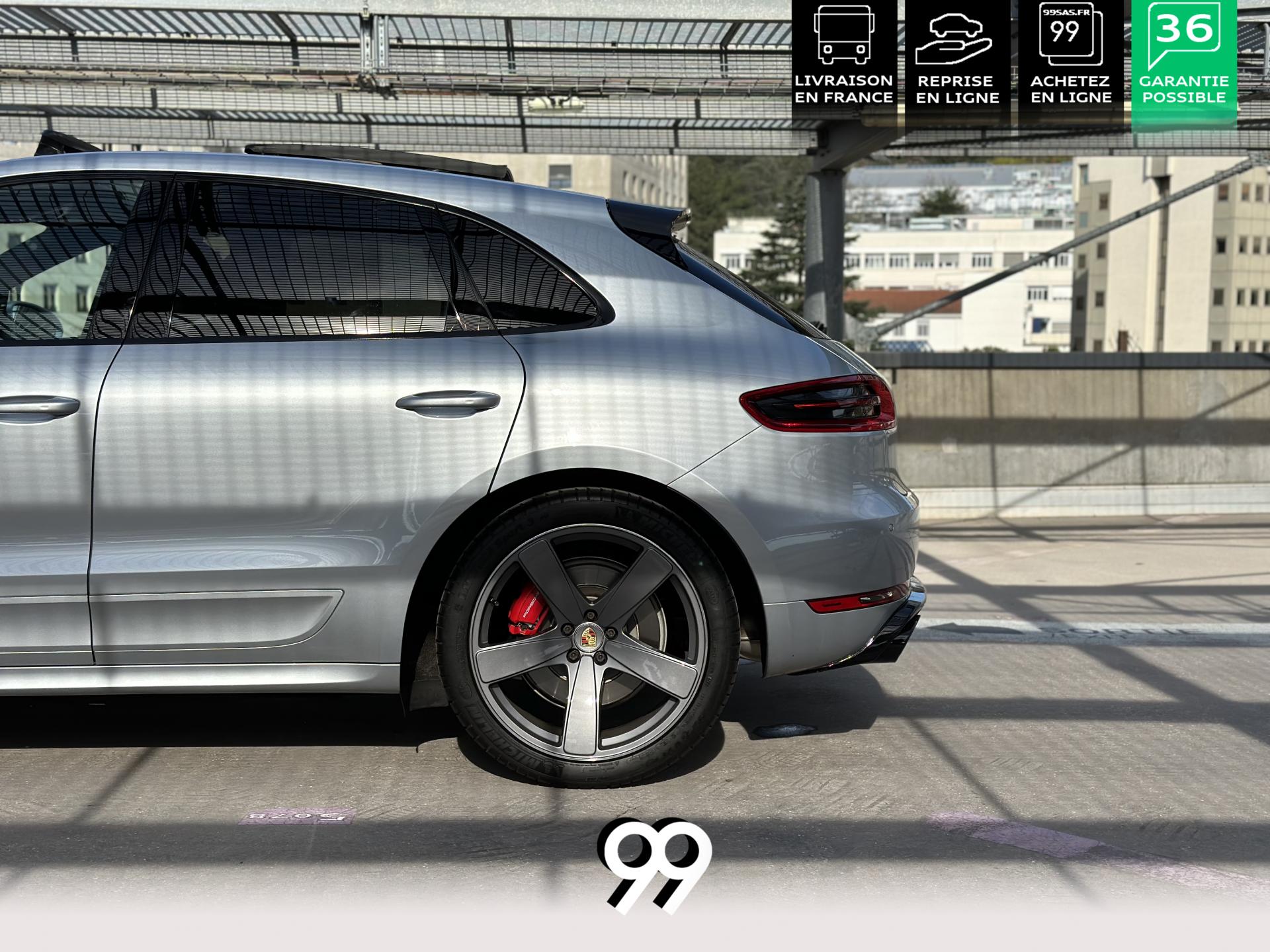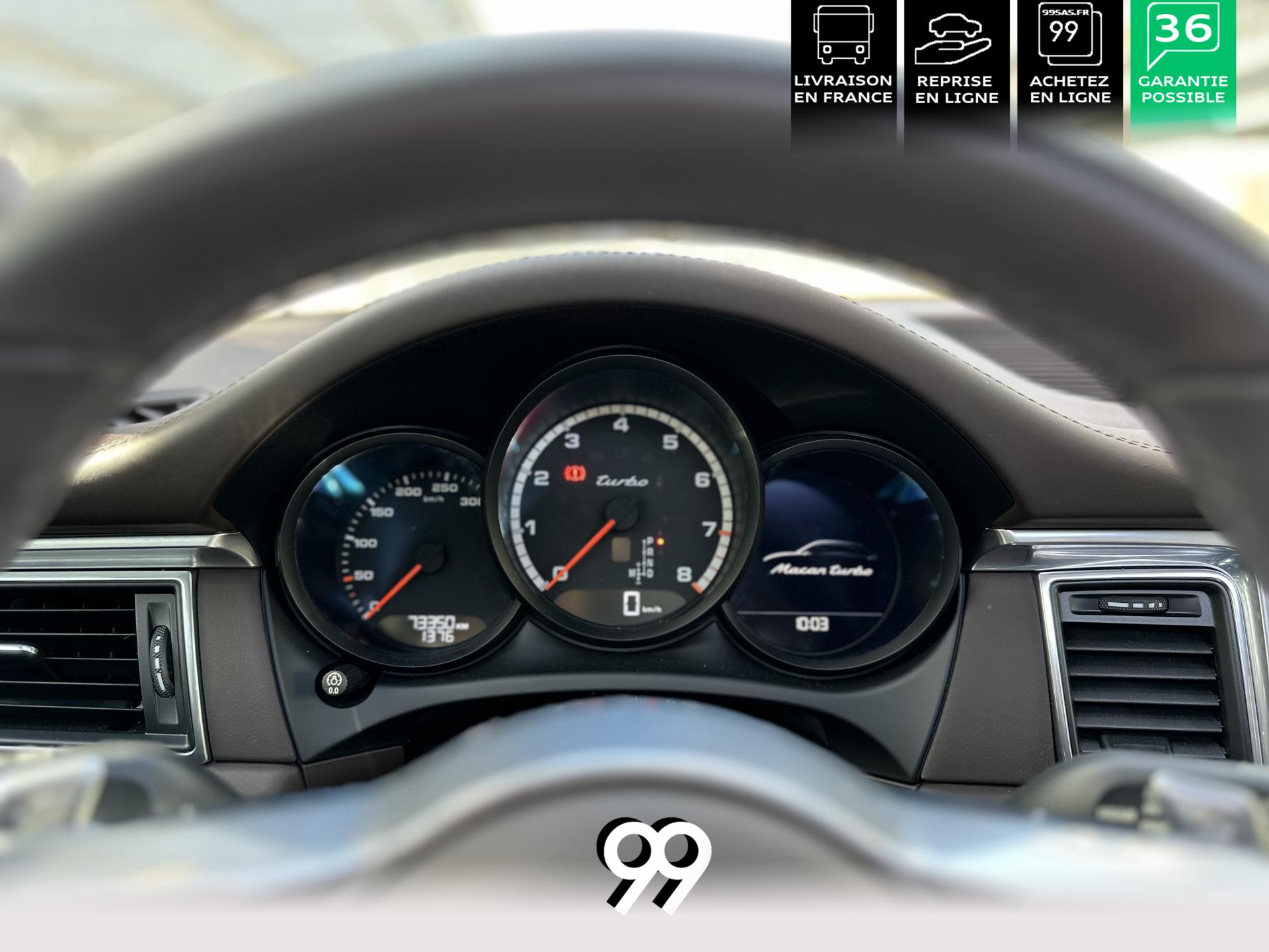 2 Porte-gobelets à l'avant, à diamètre variable3 instruments intégrés au combiné d'instruments5 places, banquette arrière avec 2 sièges latéraux confortables et une place centraleAccoudoir arrière central avec 2 porte-gobelets intégrésAccoudoir de la console centrale relevable et réglable longitudinalementAirbags grand volume (conducteur et passager)Airbags latéraux avant intégrés aux siègesAirbags rideauxBaguettes de parement de couleur ArgentBaguettes de seuils de porte en aluminium avec désignation du modèle : Macan TurboBoîte Porsche Doppelkupplung (PDK) à 7 rapports, avec modes manuel en utilisant les palettes au volant ou mode automatique, affichage du passage optimal à la vitesse supérieure pour la consommation d'essenceBOSE Surround Sound System avec 14 haut-parleurs et un caisson de basses actif, 9 canaux d'amplification et une puissance totale de 545 wattsCeintures de sécurité automatique 3 points Ciel de toit en AlcantaraClimatisation automatique avec réglage séparé côtés conducteur et passager, contrôle automatique du recyclage de l'air, touche AC-MAX et capteur d'humiditéCouvre-bagages rigide amovibleEssuie-glace arrière avec réglage de l'intermittence et buse de lave-glaceEssuie-glace avant à deux vitesses de balayage et intermittence variable, avec capteur de pluie et buses de lave-glace chauffantesFeux arrière à DEL avec feux stop adaptatifsFiltre à charbon actif pour pollen/particulesFonction Start/StopFrein de parking électriqueFrein multi-collisionHayon automatiqueJantes Macan Turbo 19 poucesKit de réparation pneumatiques avec compresseur électriqueLève-vitres électriques avant et arrière, avec fonctions confort, anti-pincement, et abaissement séquentielLunette arrière dégivranteMode CroisièreModule de gestion thermiqueOrdinateur de bordPack Intérieur Aluminium brosséPack non-fumeurPack Sport ChronoPhares bi-xénon avec Porsche Dynamic Light System (PDLS)Porsche Active Suspension Management (PASM)Porsche Communication Management (PCM) avec pré-équipement pour téléphone portable et interface audioPorsche Traction Management (PTM) : transmission intégrale dynamique avec différentiel central multidisque électronique, différentiel de freinage automatique (ABD), système de régulation antipatinage (ASR)Porsche Vehicle Tracking System (PVTS)Pré-équipement pour attelageRégulateur de vitesseRétroviseurs extérieurs chauffants, réglables et repliables électriquement (peut être fait à partir de la clef), de forme asphérique côté conducteurSidesblades peints en couleur carrosserieSuspension à ressorts en acierSystème de contrôle de la pression des pneus (TPMS)Système ISOFIX de fixation de sièges enfant sur le siège passager et les sièges arrière latérauxTouche SPORTVarioCam Plus avec calage variable des arbres à cames et de la levée des soupapesVolant Multifonction avec palettes de passage des rapports