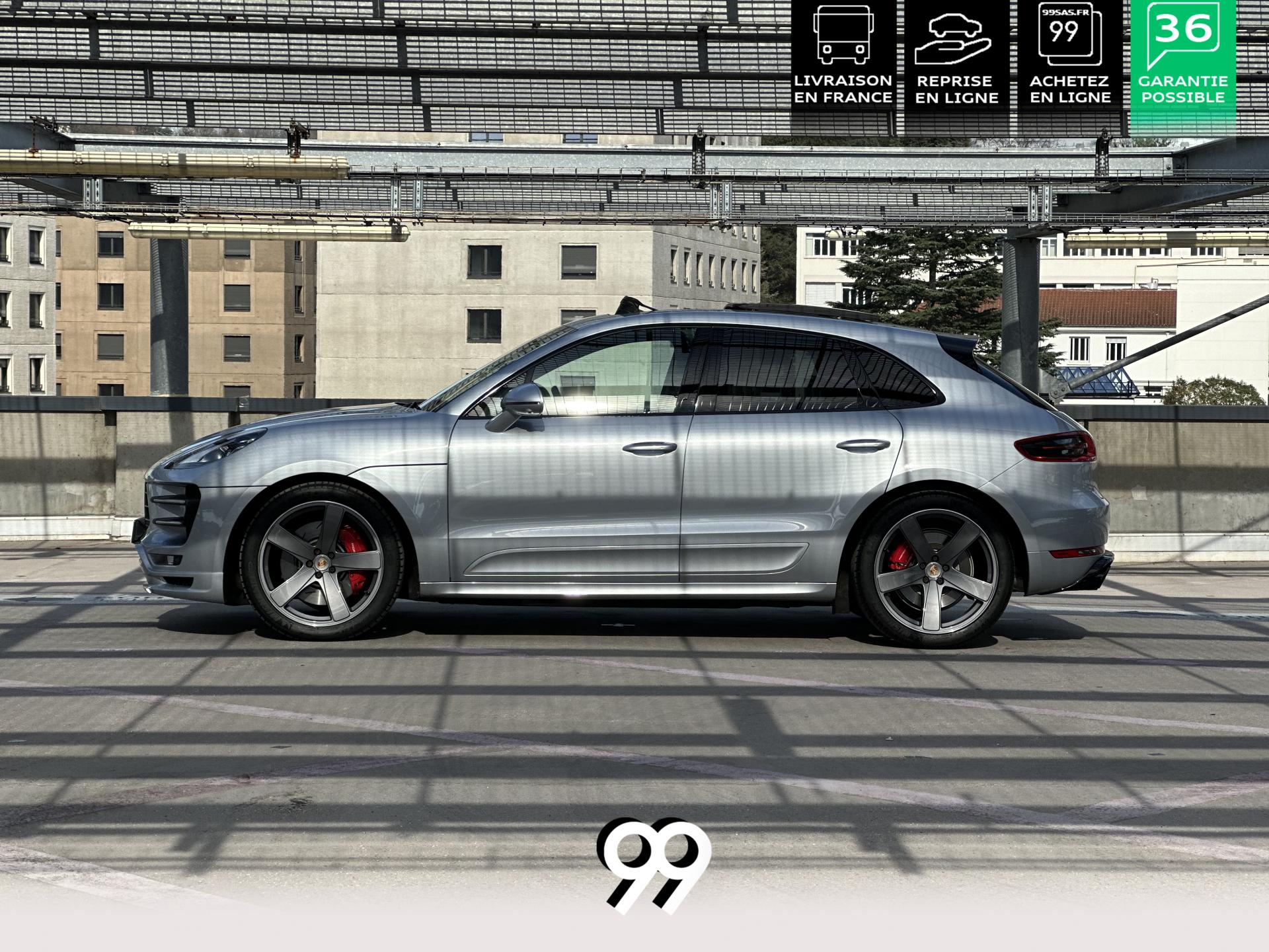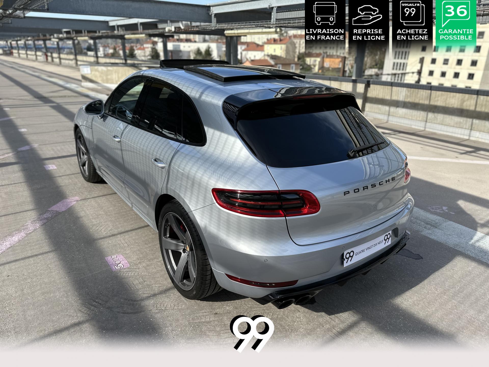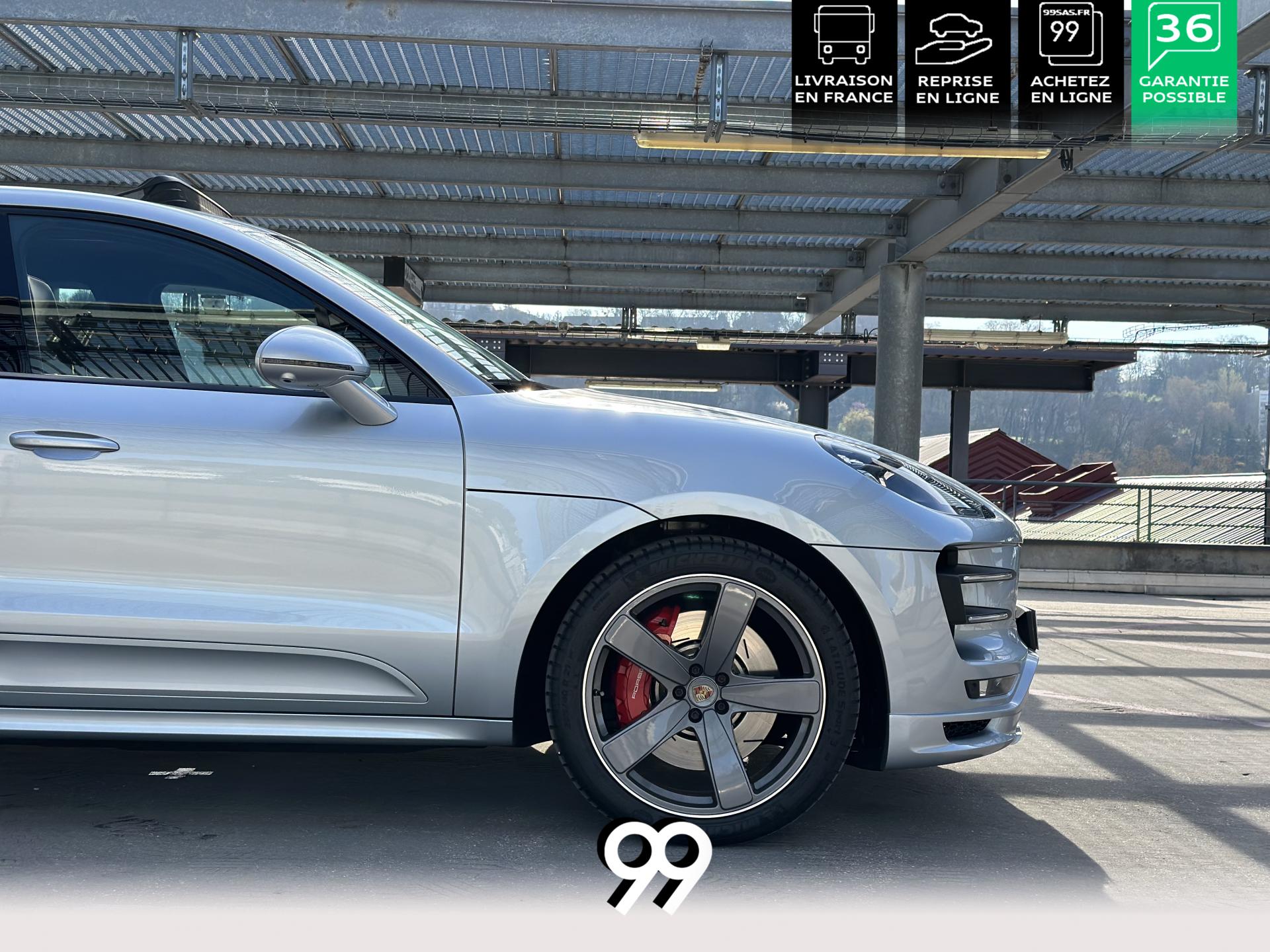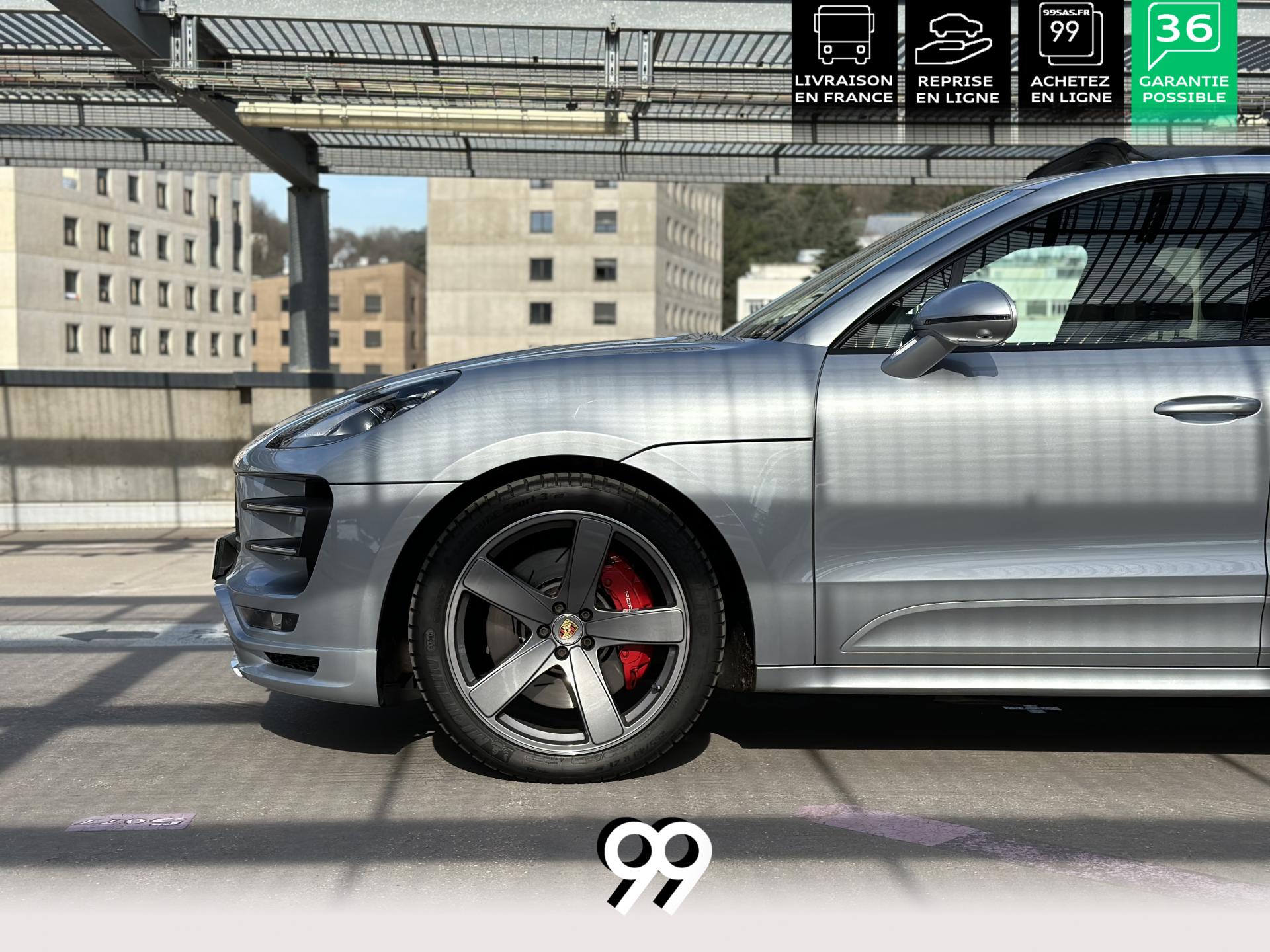 2 Porte-gobelets à l'avant, à diamètre variable3 instruments intégrés au combiné d'instruments5 places, banquette arrière avec 2 sièges latéraux confortables et une place centraleAccoudoir arrière central avec 2 porte-gobelets intégrésAccoudoir de la console centrale relevable et réglable longitudinalementAirbags grand volume (conducteur et passager)Airbags latéraux avant intégrés aux siègesAirbags rideauxBaguettes de parement de couleur ArgentBaguettes de seuils de porte en aluminium avec désignation du modèle : Macan TurboBoîte Porsche Doppelkupplung (PDK) à 7 rapports, avec modes manuel en utilisant les palettes au volant ou mode automatique, affichage du passage optimal à la vitesse supérieure pour la consommation d'essenceBOSE Surround Sound System avec 14 haut-parleurs et un caisson de basses actif, 9 canaux d'amplification et une puissance totale de 545 wattsCeintures de sécurité automatique 3 points Ciel de toit en AlcantaraClimatisation automatique avec réglage séparé côtés conducteur et passager, contrôle automatique du recyclage de l'air, touche AC-MAX et capteur d'humiditéCouvre-bagages rigide amovibleEssuie-glace arrière avec réglage de l'intermittence et buse de lave-glaceEssuie-glace avant à deux vitesses de balayage et intermittence variable, avec capteur de pluie et buses de lave-glace chauffantesFeux arrière à DEL avec feux stop adaptatifsFiltre à charbon actif pour pollen/particulesFonction Start/StopFrein de parking électriqueFrein multi-collisionHayon automatiqueJantes Macan Turbo 19 poucesKit de réparation pneumatiques avec compresseur électriqueLève-vitres électriques avant et arrière, avec fonctions confort, anti-pincement, et abaissement séquentielLunette arrière dégivranteMode CroisièreModule de gestion thermiqueOrdinateur de bordPack Intérieur Aluminium brosséPack non-fumeurPack Sport ChronoPhares bi-xénon avec Porsche Dynamic Light System (PDLS)Porsche Active Suspension Management (PASM)Porsche Communication Management (PCM) avec pré-équipement pour téléphone portable et interface audioPorsche Traction Management (PTM) : transmission intégrale dynamique avec différentiel central multidisque électronique, différentiel de freinage automatique (ABD), système de régulation antipatinage (ASR)Porsche Vehicle Tracking System (PVTS)Pré-équipement pour attelageRégulateur de vitesseRétroviseurs extérieurs chauffants, réglables et repliables électriquement (peut être fait à partir de la clef), de forme asphérique côté conducteurSidesblades peints en couleur carrosserieSuspension à ressorts en acierSystème de contrôle de la pression des pneus (TPMS)Système ISOFIX de fixation de sièges enfant sur le siège passager et les sièges arrière latérauxTouche SPORTVarioCam Plus avec calage variable des arbres à cames et de la levée des soupapesVolant Multifonction avec palettes de passage des rapports