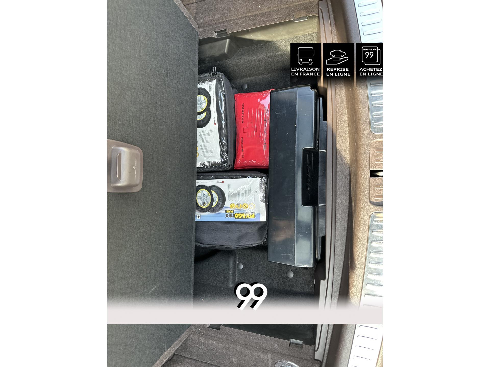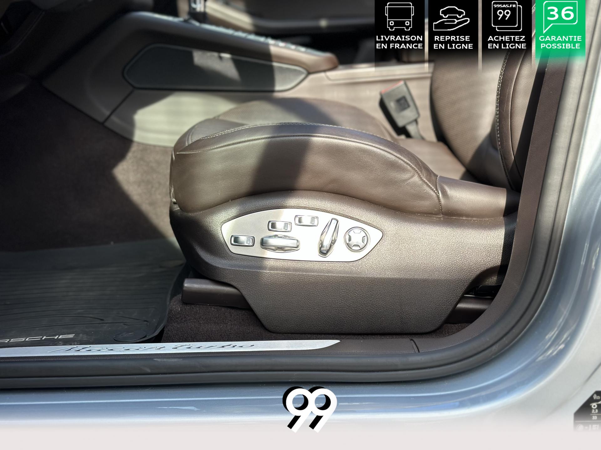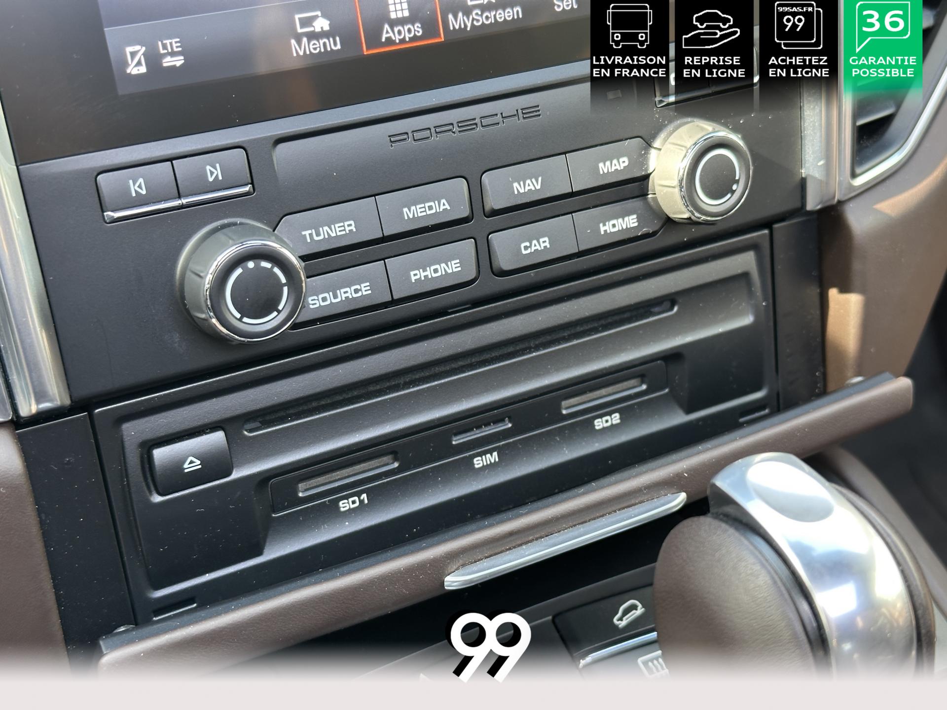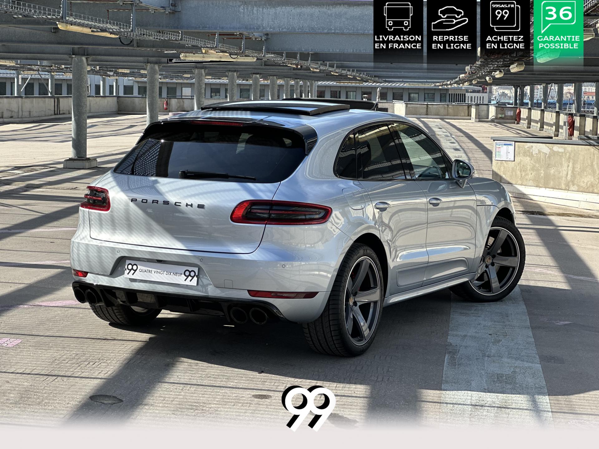 2 Porte-gobelets à l'avant, à diamètre variable3 instruments intégrés au combiné d'instruments5 places, banquette arrière avec 2 sièges latéraux confortables et une place centraleAccoudoir arrière central avec 2 porte-gobelets intégrésAccoudoir de la console centrale relevable et réglable longitudinalementAirbags grand volume (conducteur et passager)Airbags latéraux avant intégrés aux siègesAirbags rideauxBaguettes de parement de couleur ArgentBaguettes de seuils de porte en aluminium avec désignation du modèle : Macan TurboBoîte Porsche Doppelkupplung (PDK) à 7 rapports, avec modes manuel en utilisant les palettes au volant ou mode automatique, affichage du passage optimal à la vitesse supérieure pour la consommation d'essenceBOSE Surround Sound System avec 14 haut-parleurs et un caisson de basses actif, 9 canaux d'amplification et une puissance totale de 545 wattsCeintures de sécurité automatique 3 points Ciel de toit en AlcantaraClimatisation automatique avec réglage séparé côtés conducteur et passager, contrôle automatique du recyclage de l'air, touche AC-MAX et capteur d'humiditéCouvre-bagages rigide amovibleEssuie-glace arrière avec réglage de l'intermittence et buse de lave-glaceEssuie-glace avant à deux vitesses de balayage et intermittence variable, avec capteur de pluie et buses de lave-glace chauffantesFeux arrière à DEL avec feux stop adaptatifsFiltre à charbon actif pour pollen/particulesFonction Start/StopFrein de parking électriqueFrein multi-collisionHayon automatiqueJantes Macan Turbo 19 poucesKit de réparation pneumatiques avec compresseur électriqueLève-vitres électriques avant et arrière, avec fonctions confort, anti-pincement, et abaissement séquentielLunette arrière dégivranteMode CroisièreModule de gestion thermiqueOrdinateur de bordPack Intérieur Aluminium brosséPack non-fumeurPack Sport ChronoPhares bi-xénon avec Porsche Dynamic Light System (PDLS)Porsche Active Suspension Management (PASM)Porsche Communication Management (PCM) avec pré-équipement pour téléphone portable et interface audioPorsche Traction Management (PTM) : transmission intégrale dynamique avec différentiel central multidisque électronique, différentiel de freinage automatique (ABD), système de régulation antipatinage (ASR)Porsche Vehicle Tracking System (PVTS)Pré-équipement pour attelageRégulateur de vitesseRétroviseurs extérieurs chauffants, réglables et repliables électriquement (peut être fait à partir de la clef), de forme asphérique côté conducteurSidesblades peints en couleur carrosserieSuspension à ressorts en acierSystème de contrôle de la pression des pneus (TPMS)Système ISOFIX de fixation de sièges enfant sur le siège passager et les sièges arrière latérauxTouche SPORTVarioCam Plus avec calage variable des arbres à cames et de la levée des soupapesVolant Multifonction avec palettes de passage des rapports