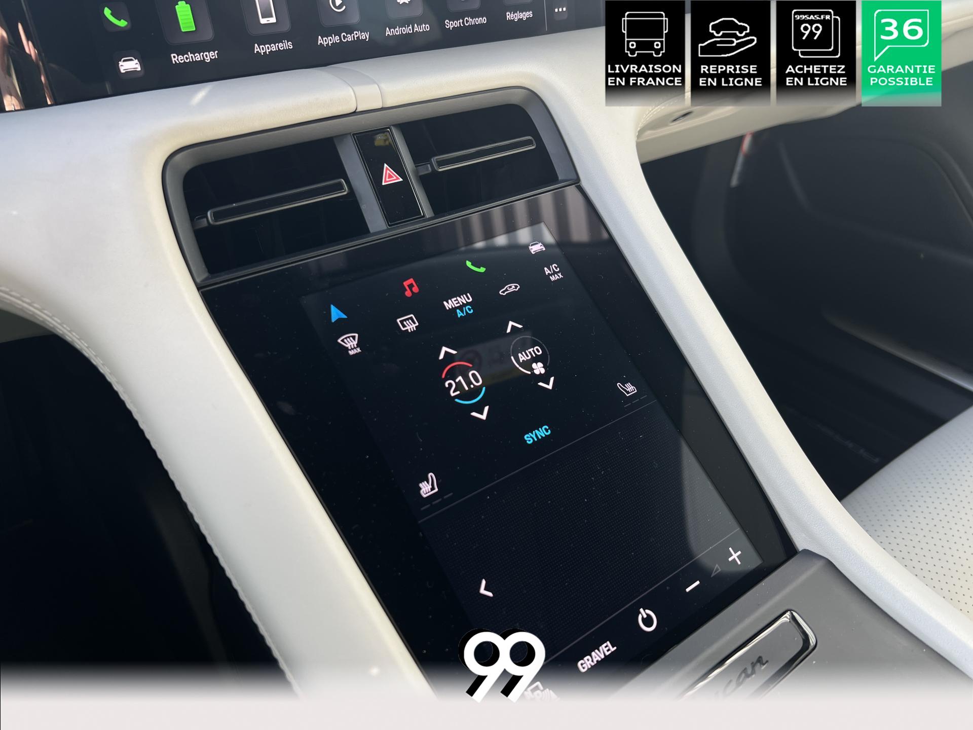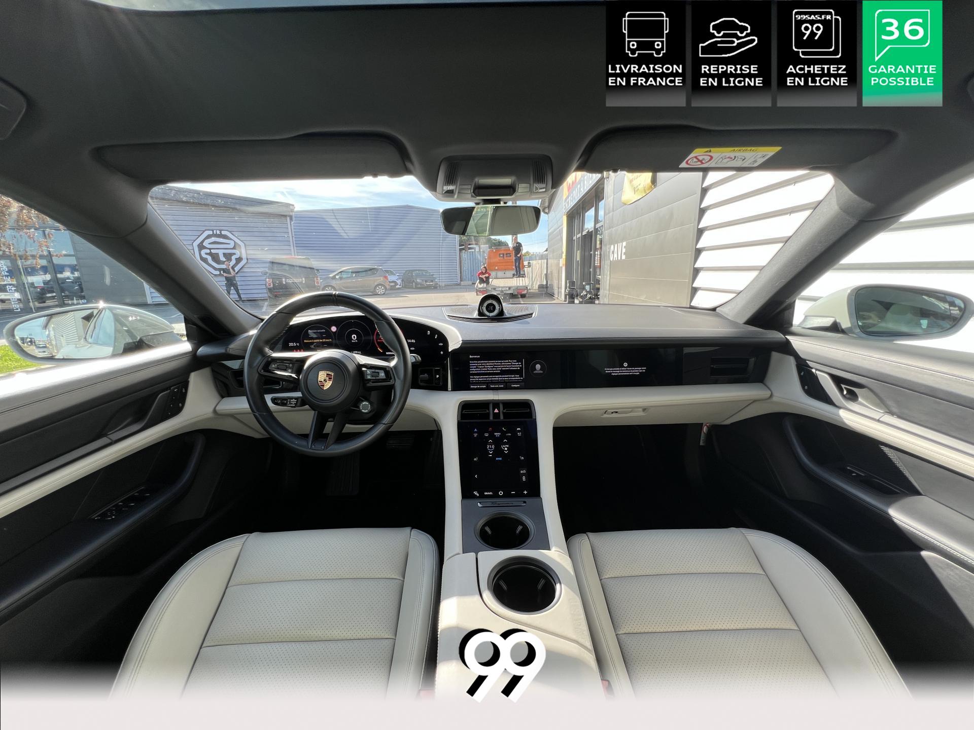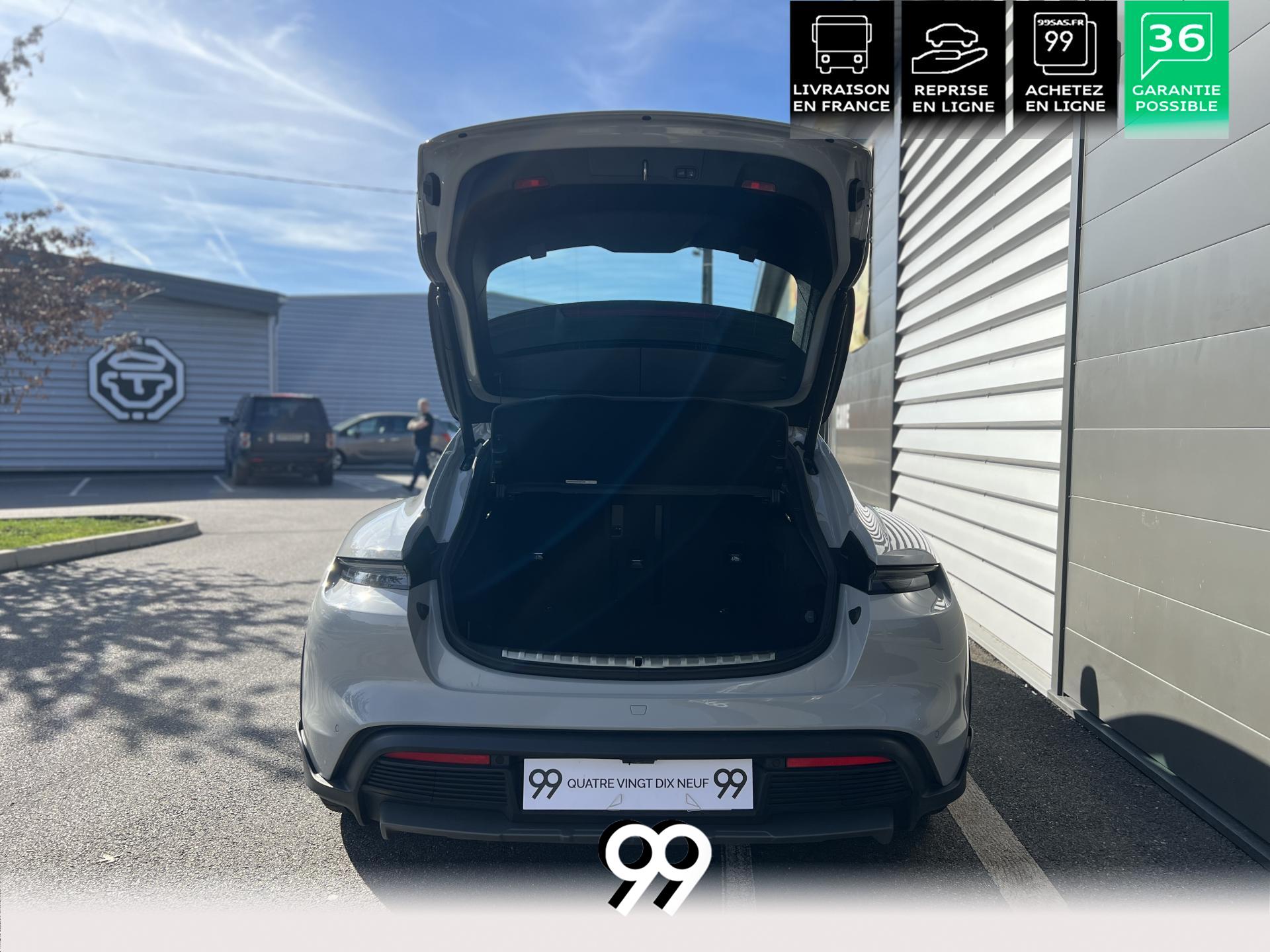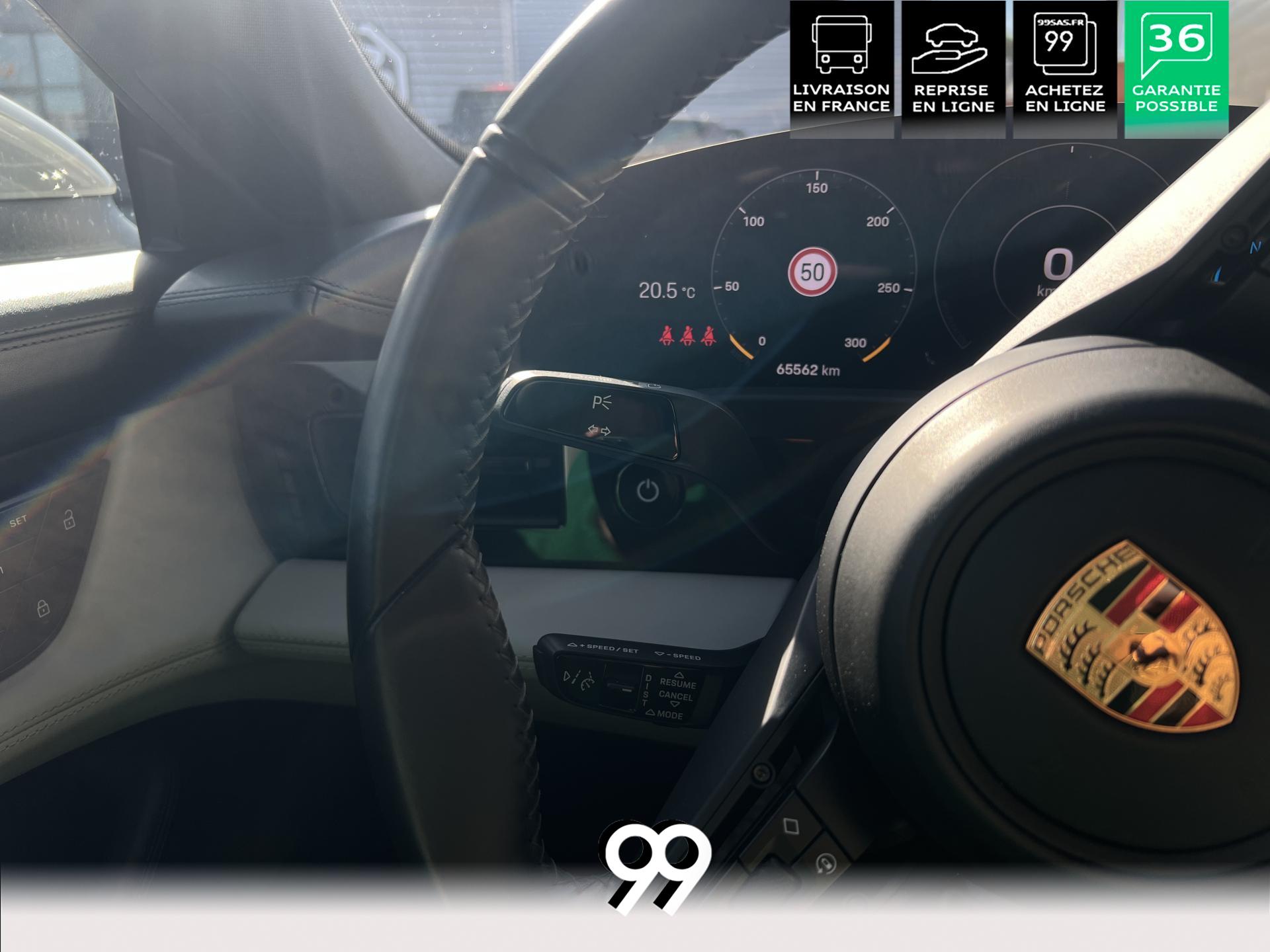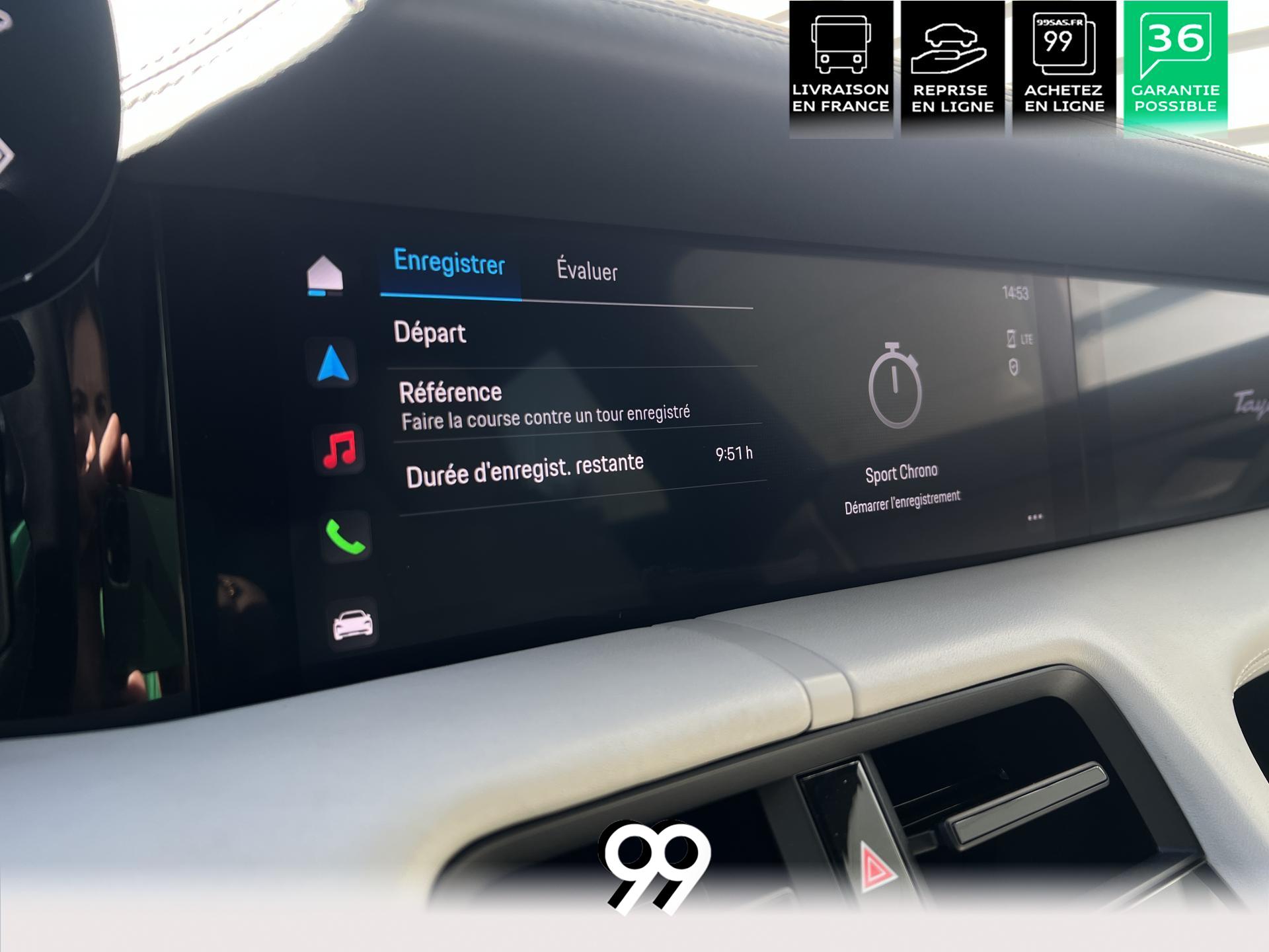 Toit panoramique fixe, accès confort sans clé, écran passager tactile 10,9", configuration 4+1 places, sièges avant chauffants, pack mémoire conducteur, éclairage d’ambiance et rétroviseurs anti-éblouissement composent un habitacle haut de gamme. Côté recharge : chargeur embarqué 22 kW, câble type 2, trappe électrique et Porsche Intelligent Range Manager optimisent l’autonomie.