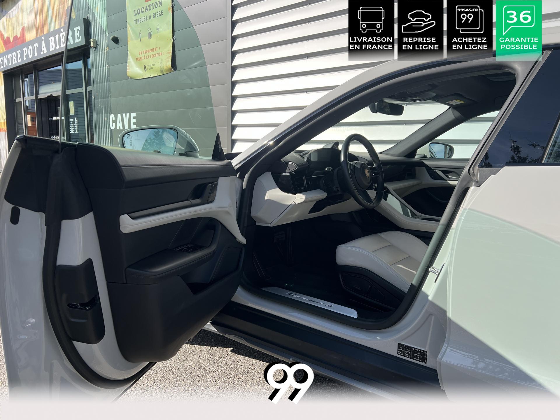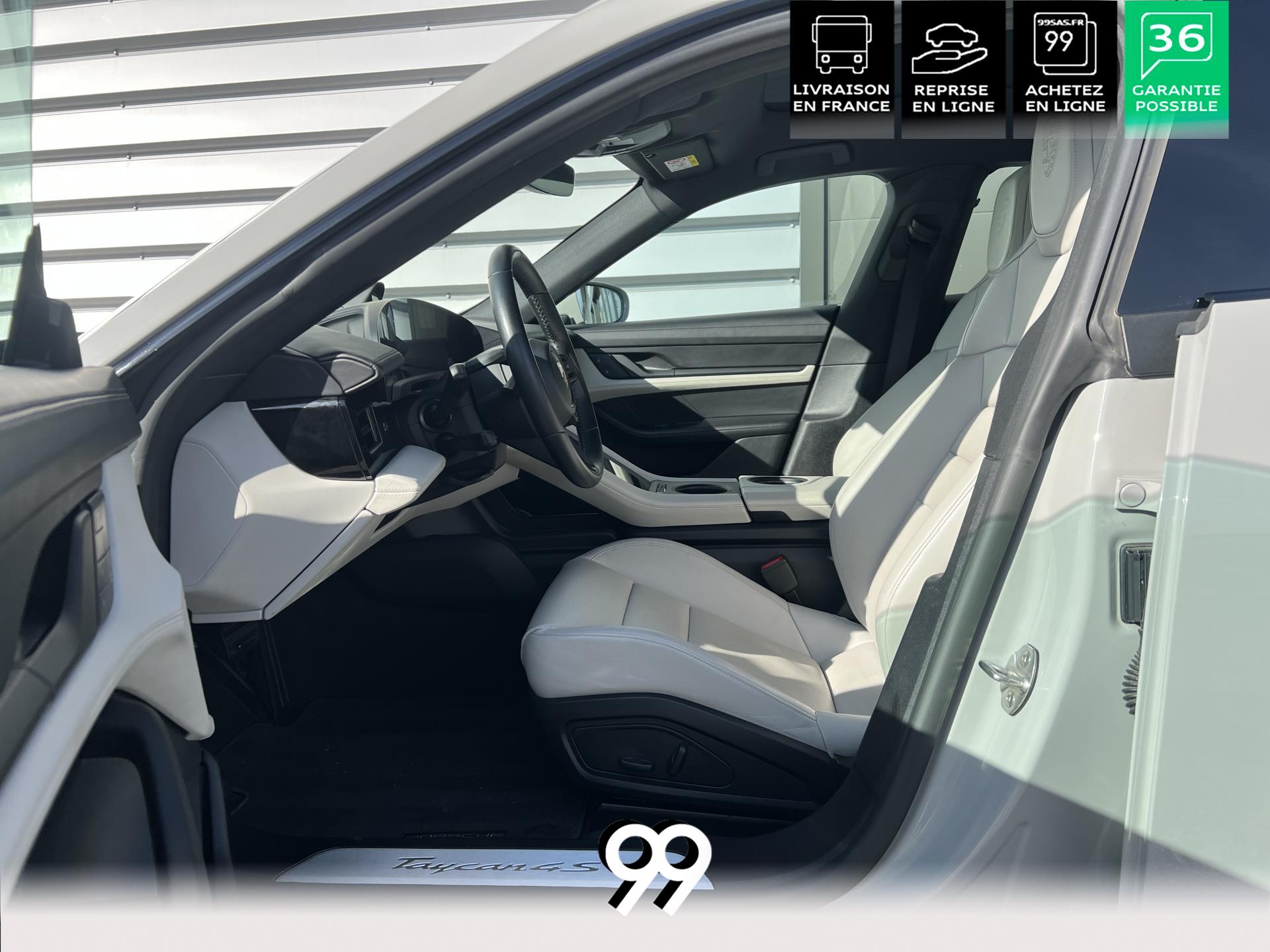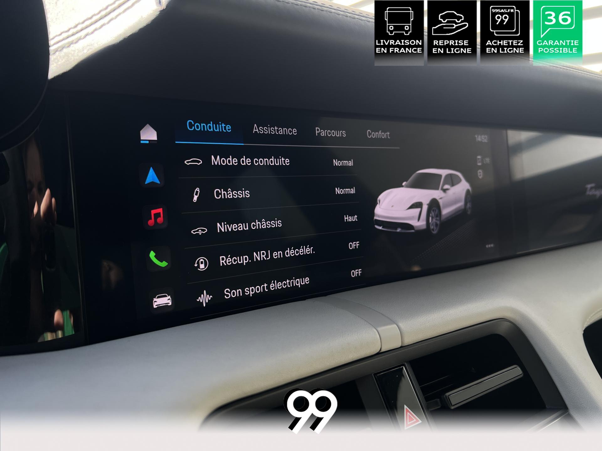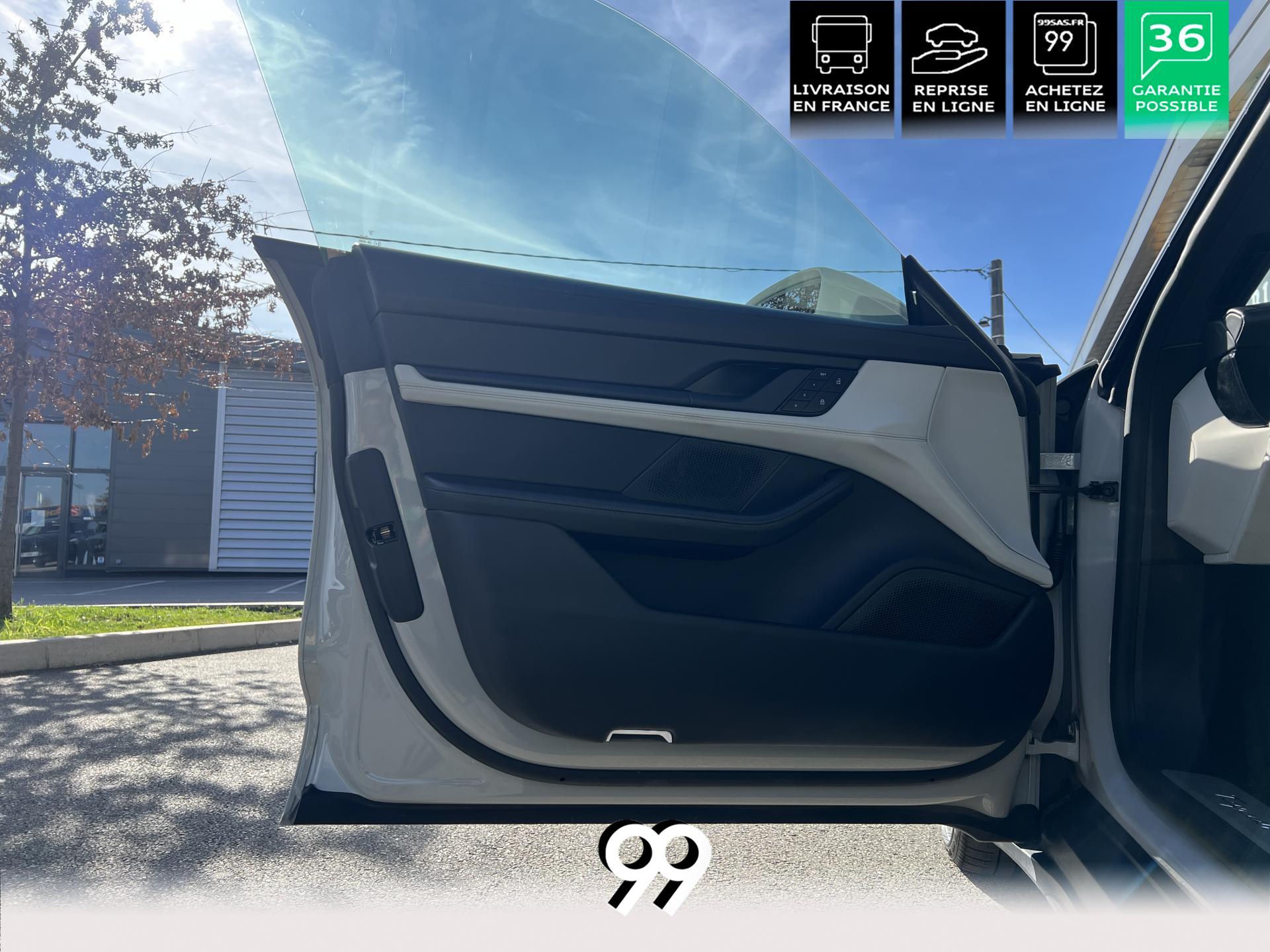 Toit panoramique fixe, accès confort sans clé, écran passager tactile 10,9", configuration 4+1 places, sièges avant chauffants, pack mémoire conducteur, éclairage d’ambiance et rétroviseurs anti-éblouissement composent un habitacle haut de gamme. Côté recharge : chargeur embarqué 22 kW, câble type 2, trappe électrique et Porsche Intelligent Range Manager optimisent l’autonomie.