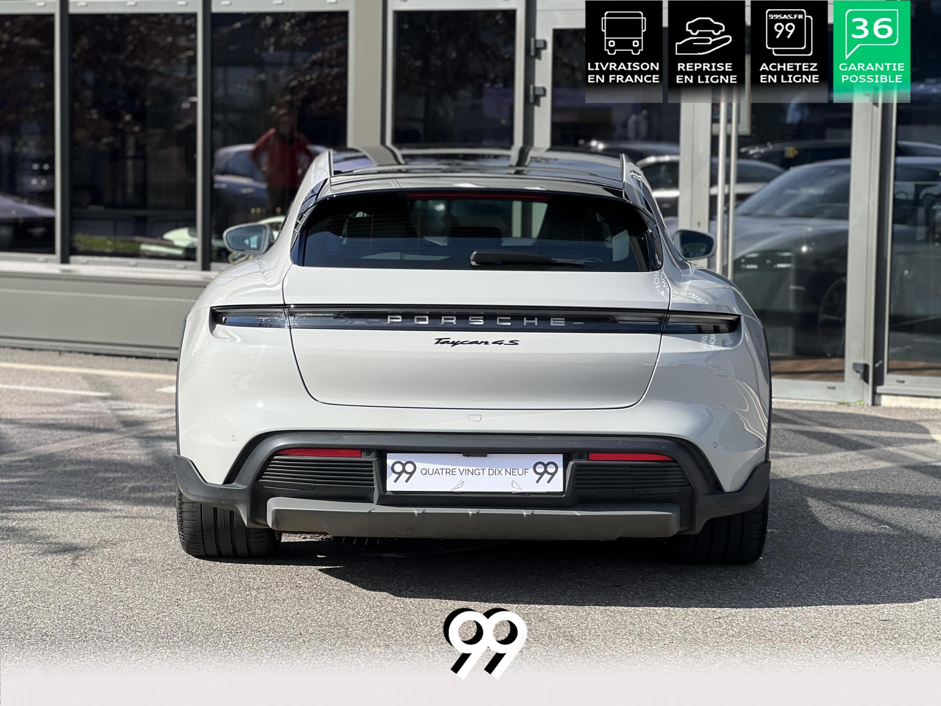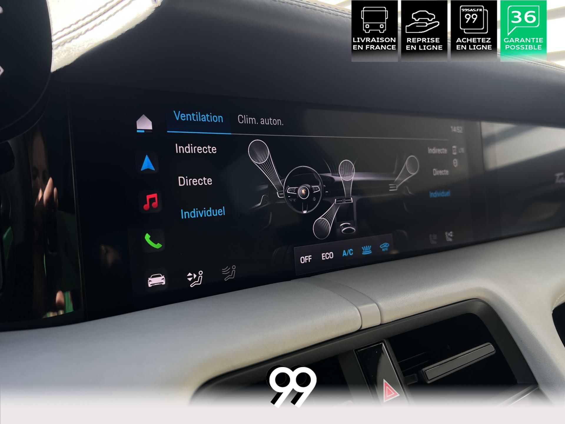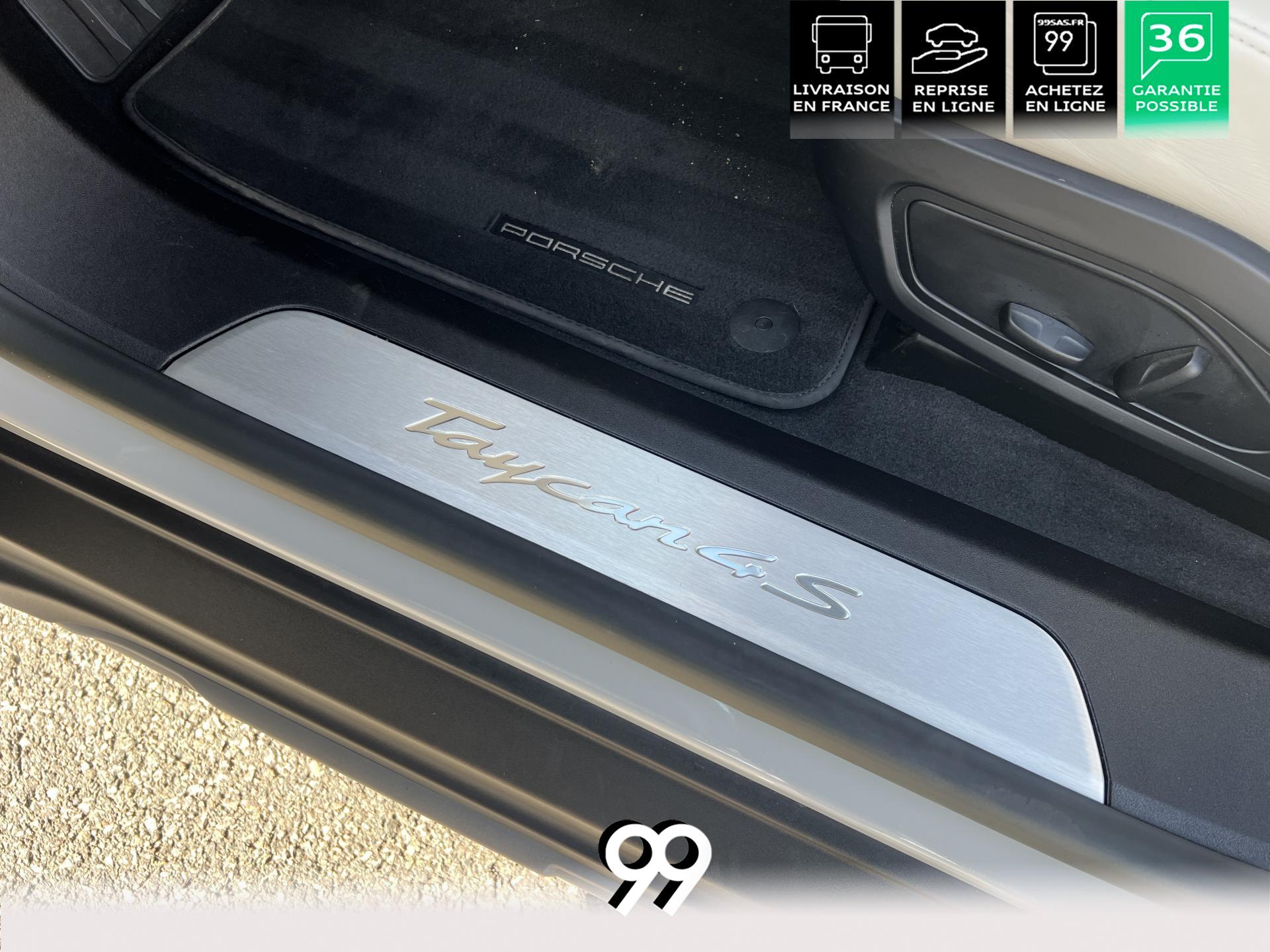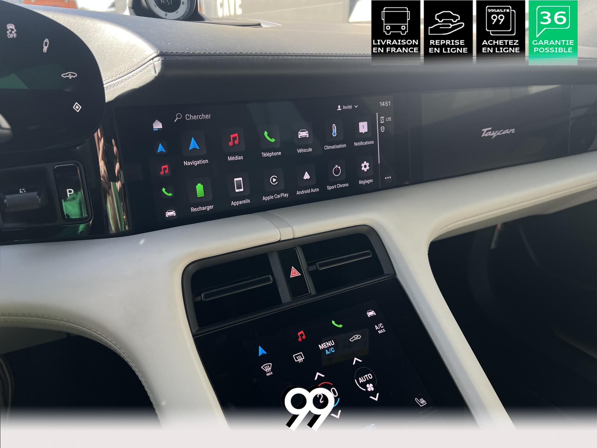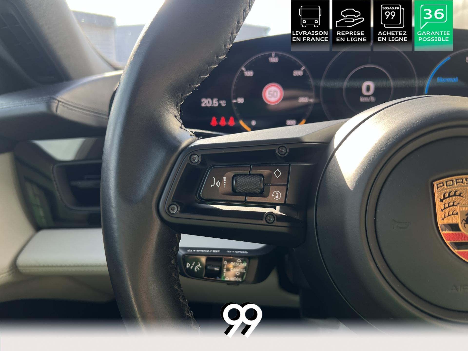 Toit panoramique fixe, accès confort sans clé, écran passager tactile 10,9", configuration 4+1 places, sièges avant chauffants, pack mémoire conducteur, éclairage d’ambiance et rétroviseurs anti-éblouissement composent un habitacle haut de gamme. Côté recharge : chargeur embarqué 22 kW, câble type 2, trappe électrique et Porsche Intelligent Range Manager optimisent l’autonomie.
