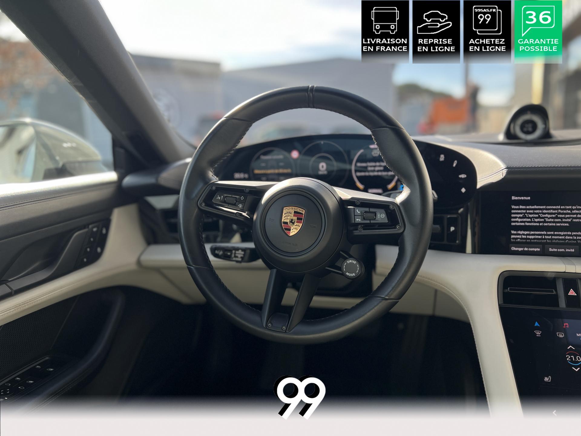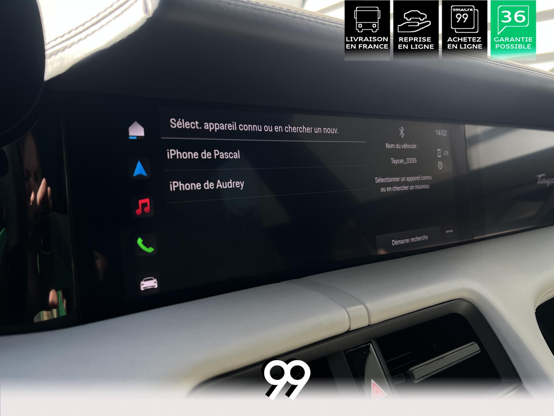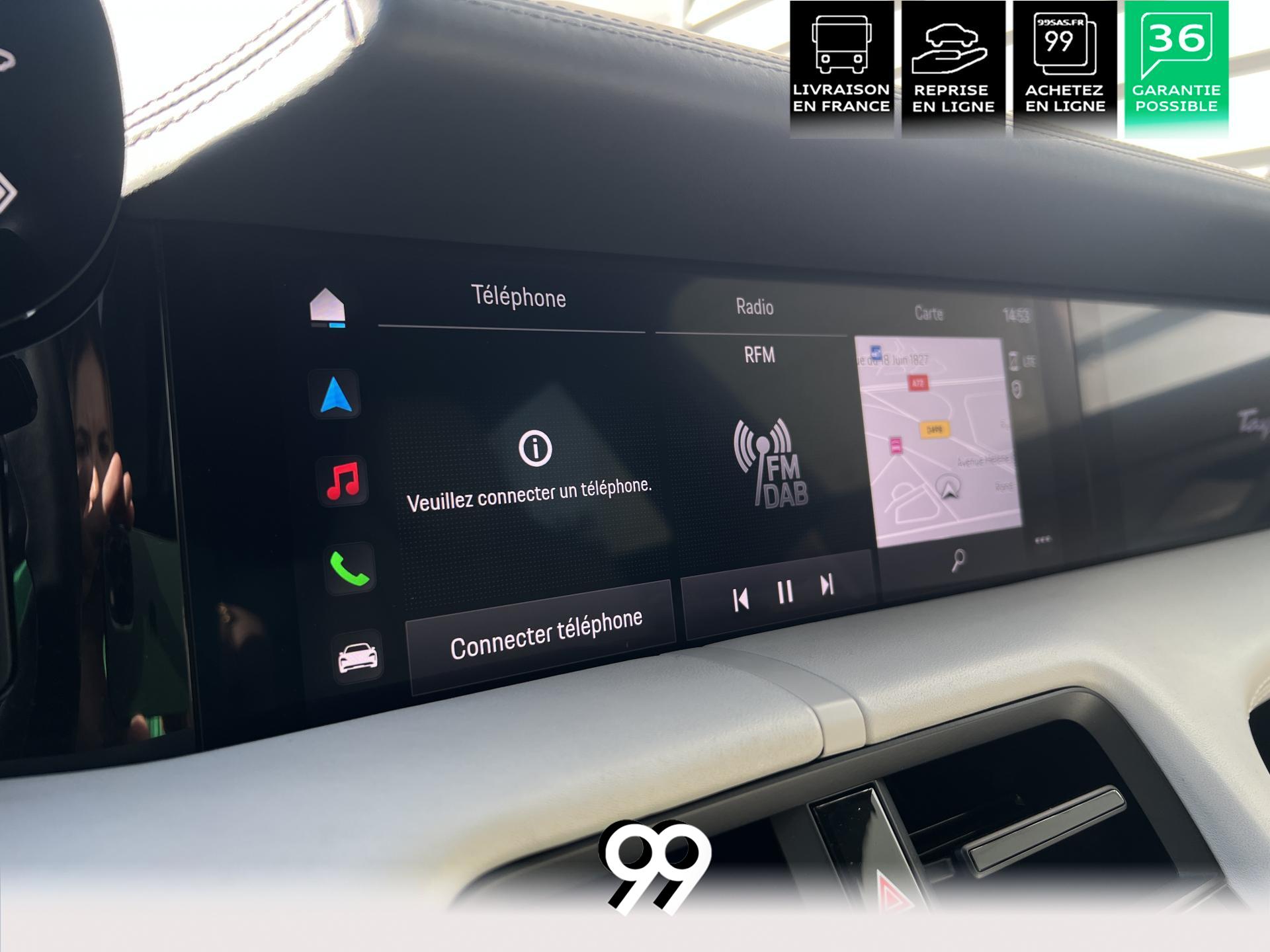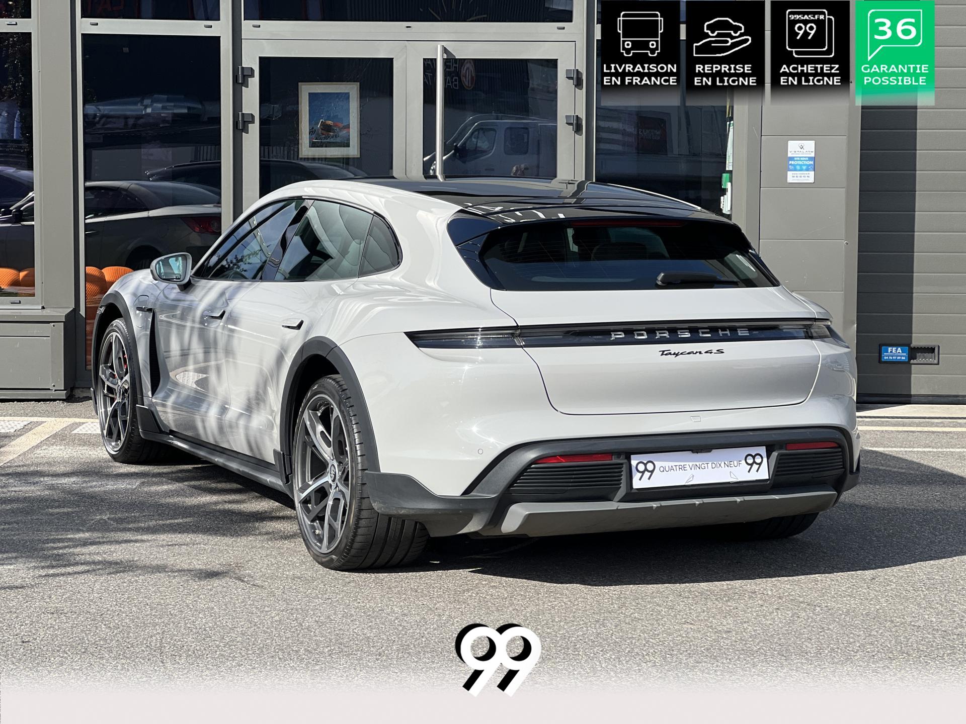Toit panoramique fixe, accès confort sans clé, écran passager tactile 10,9", configuration 4+1 places, sièges avant chauffants, pack mémoire conducteur, éclairage d’ambiance et rétroviseurs anti-éblouissement composent un habitacle haut de gamme. Côté recharge : chargeur embarqué 22 kW, câble type 2, trappe électrique et Porsche Intelligent Range Manager optimisent l’autonomie.