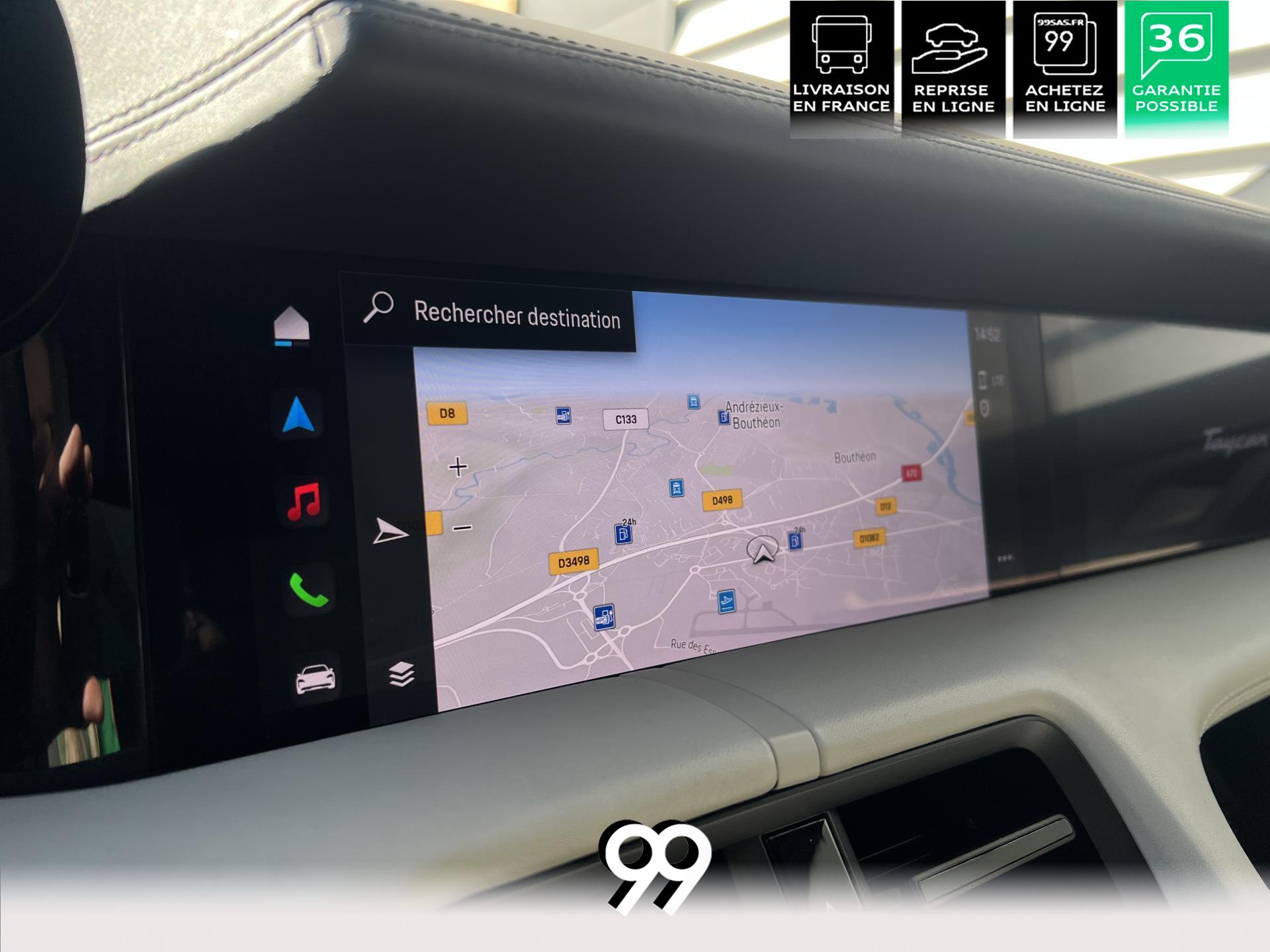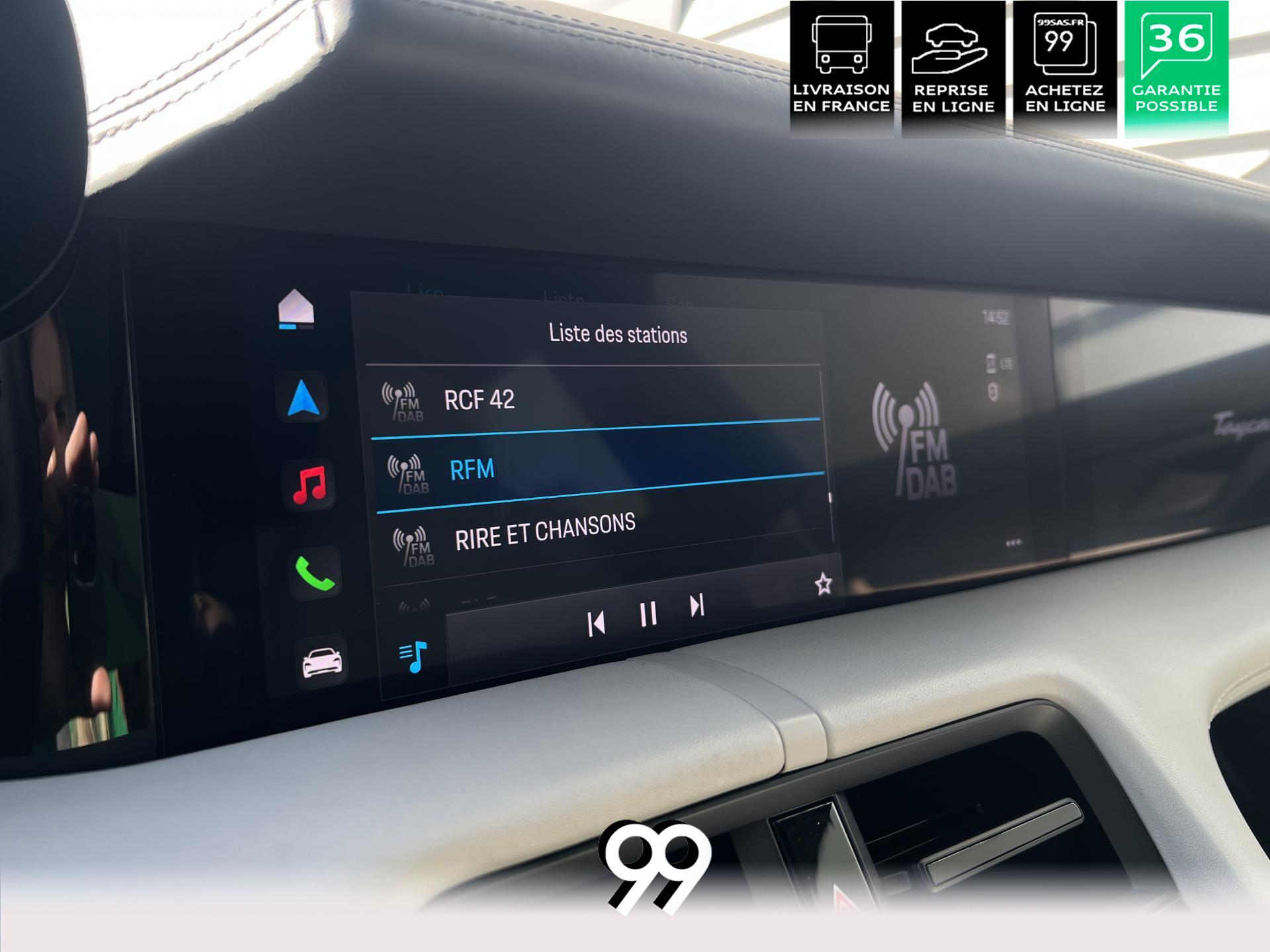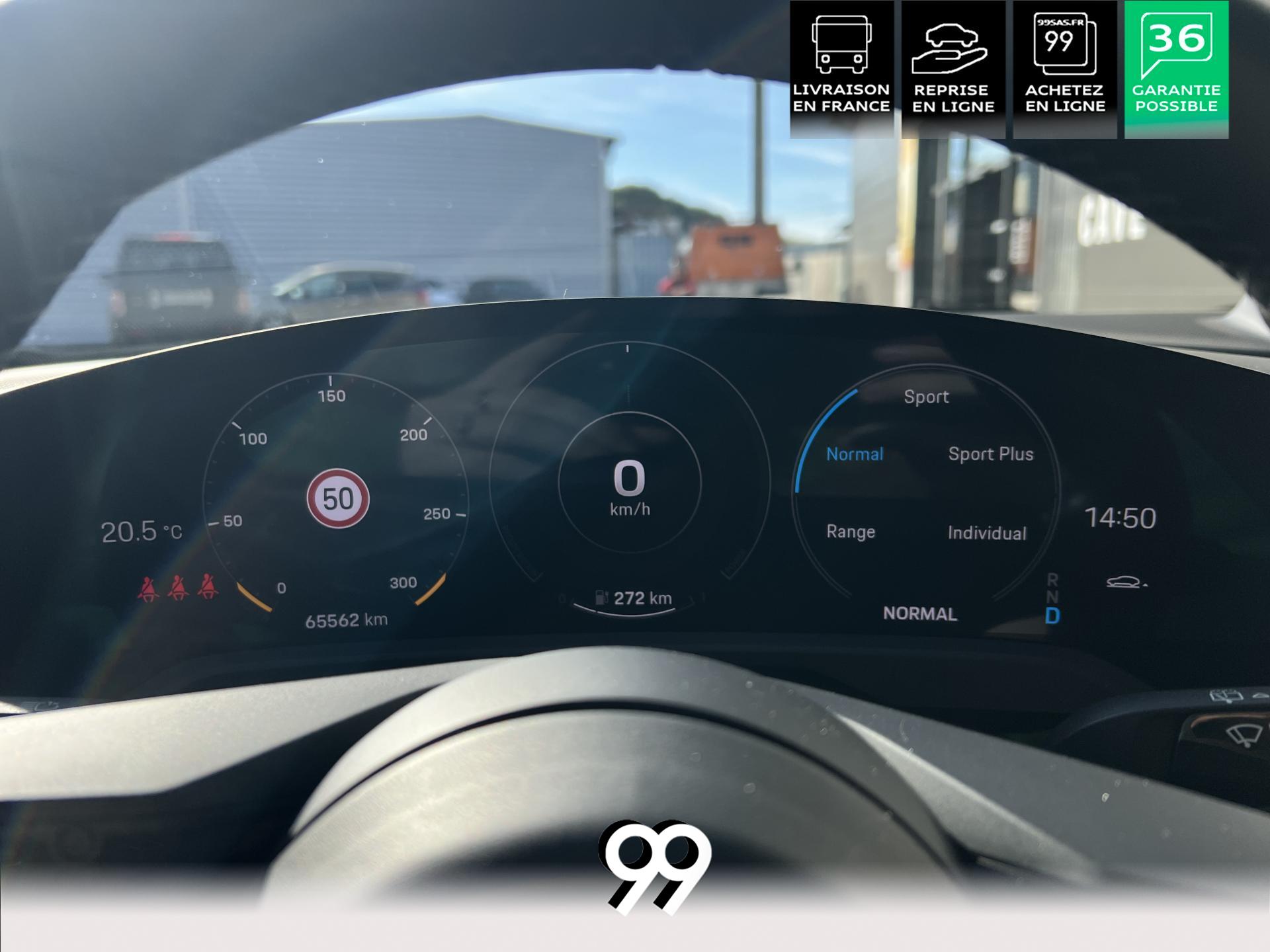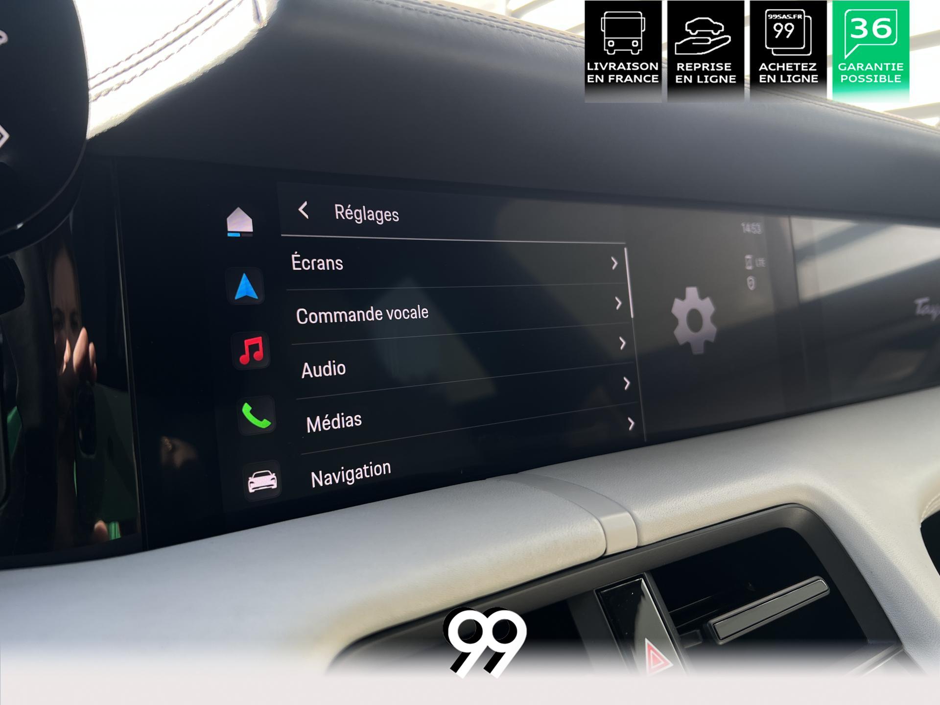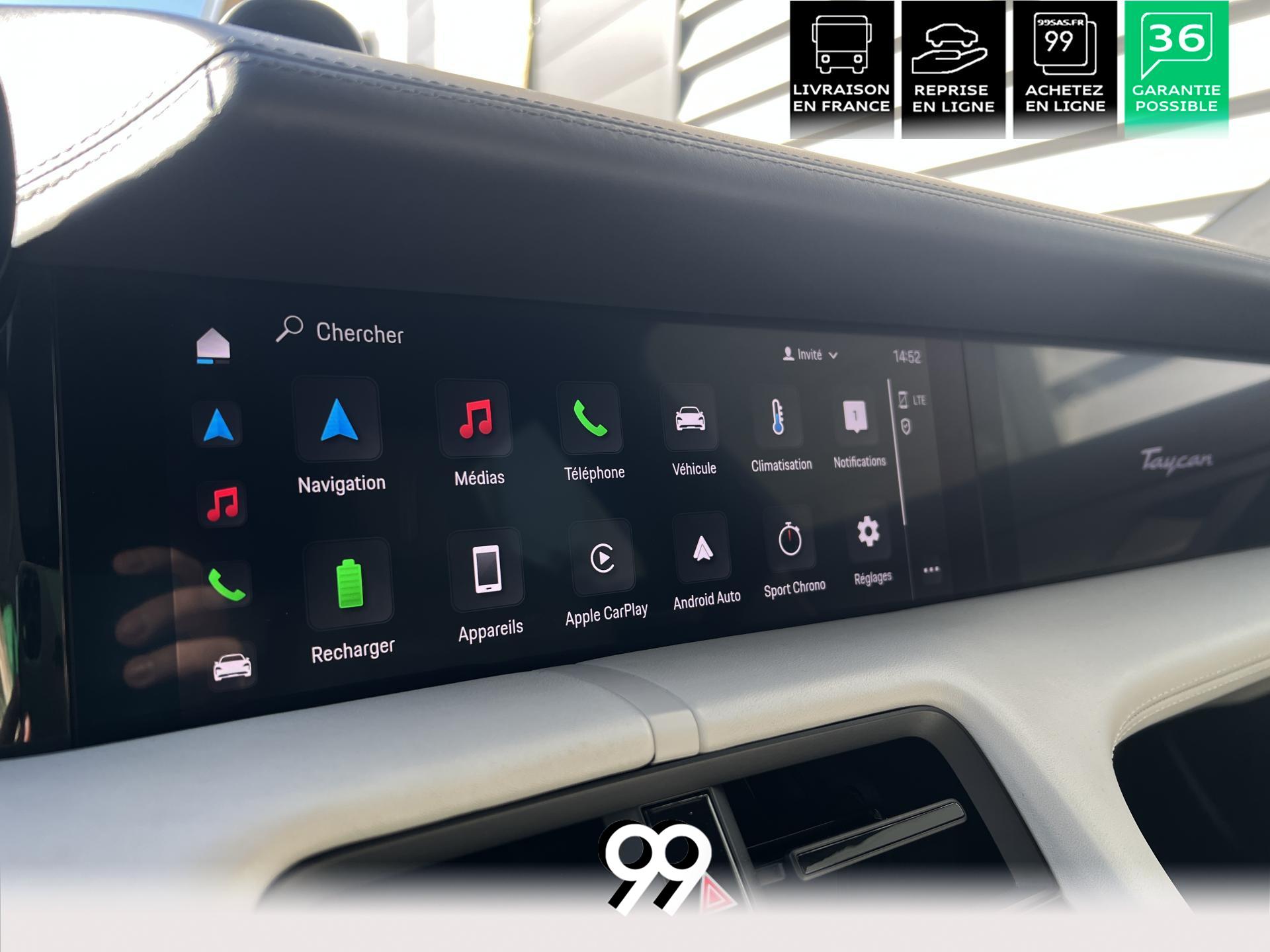 Toit panoramique fixe, accès confort sans clé, écran passager tactile 10,9", configuration 4+1 places, sièges avant chauffants, pack mémoire conducteur, éclairage d’ambiance et rétroviseurs anti-éblouissement composent un habitacle haut de gamme. Côté recharge : chargeur embarqué 22 kW, câble type 2, trappe électrique et Porsche Intelligent Range Manager optimisent l’autonomie.