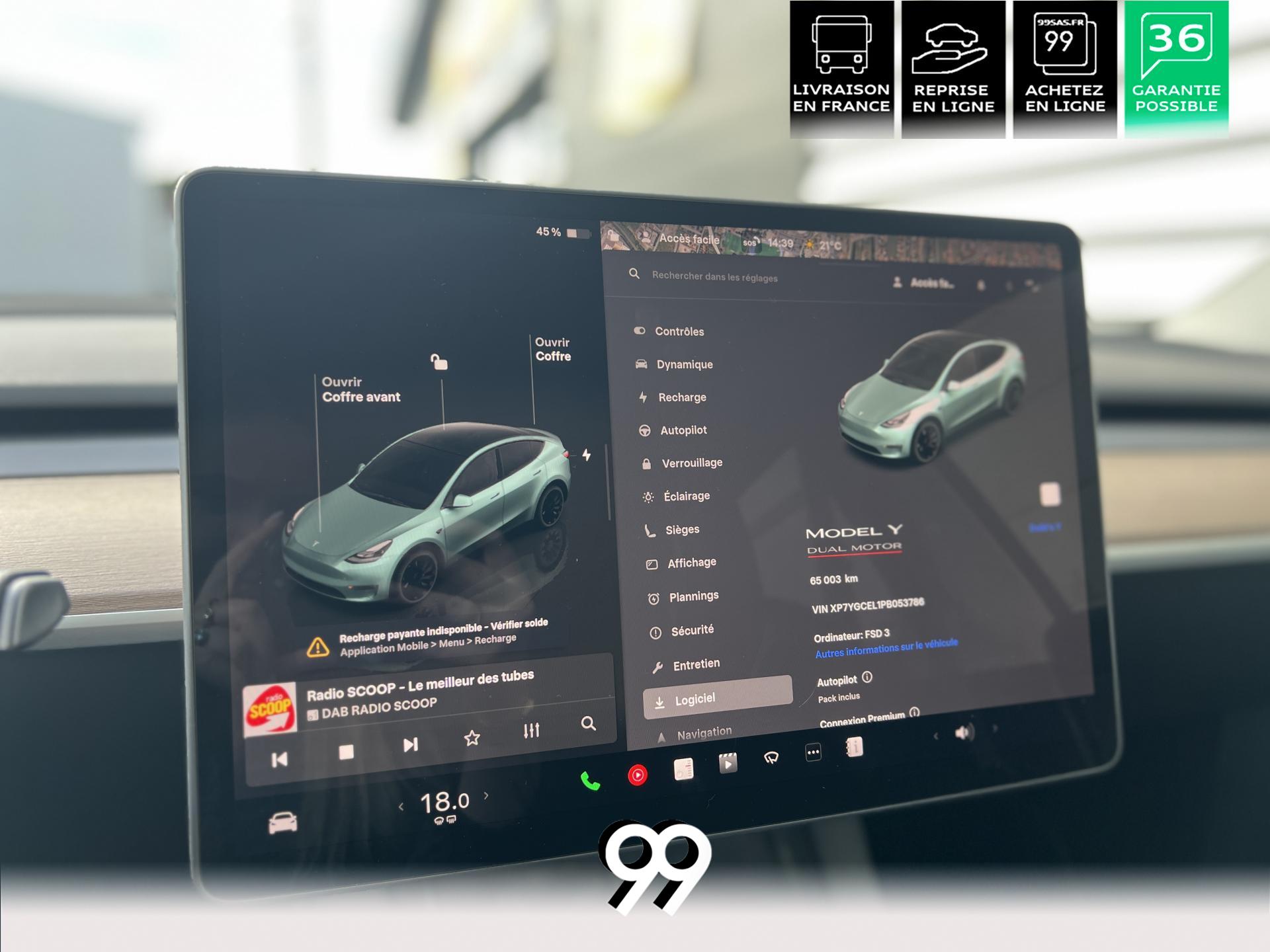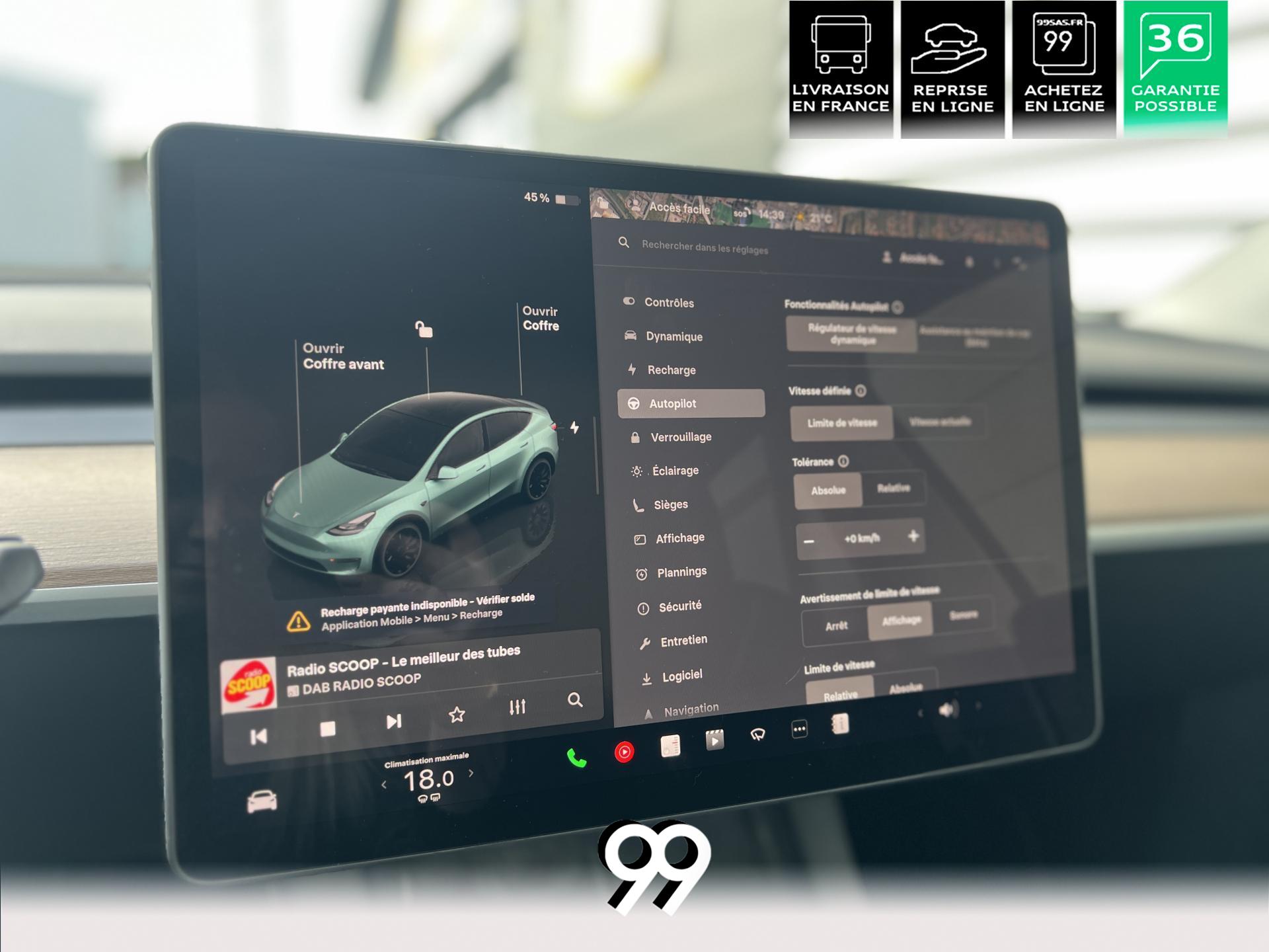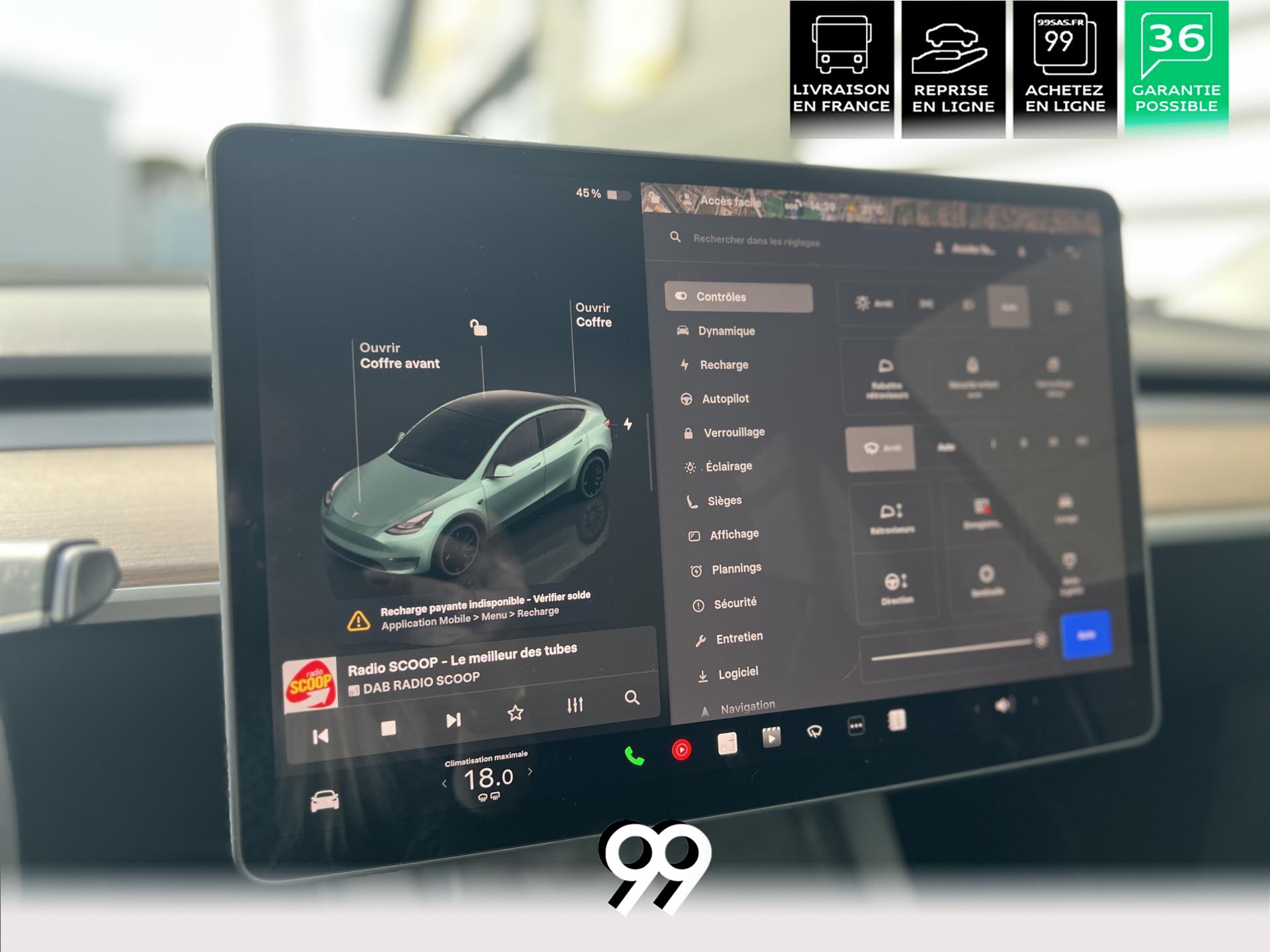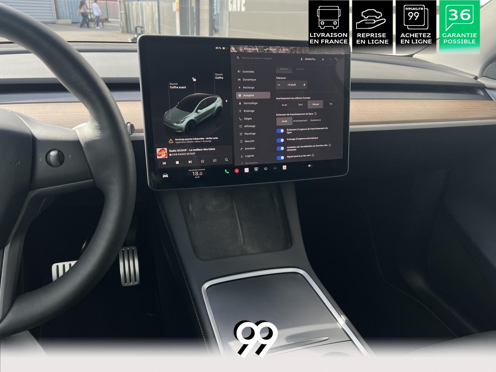 noir, grand écran central, technologies Tesla avancées et recharge rapide. Un SUV électrique puissant, moderne et polyvalent.