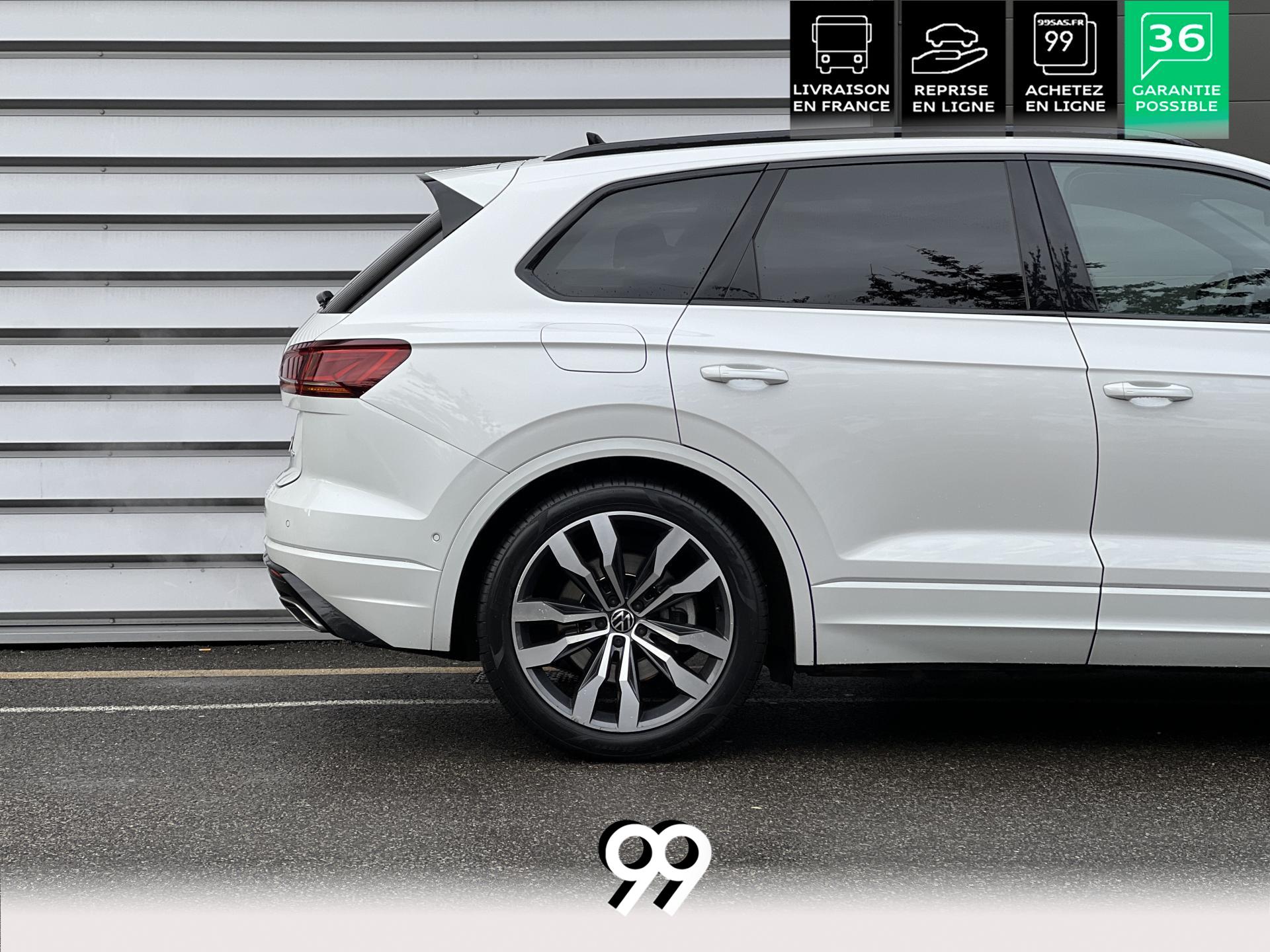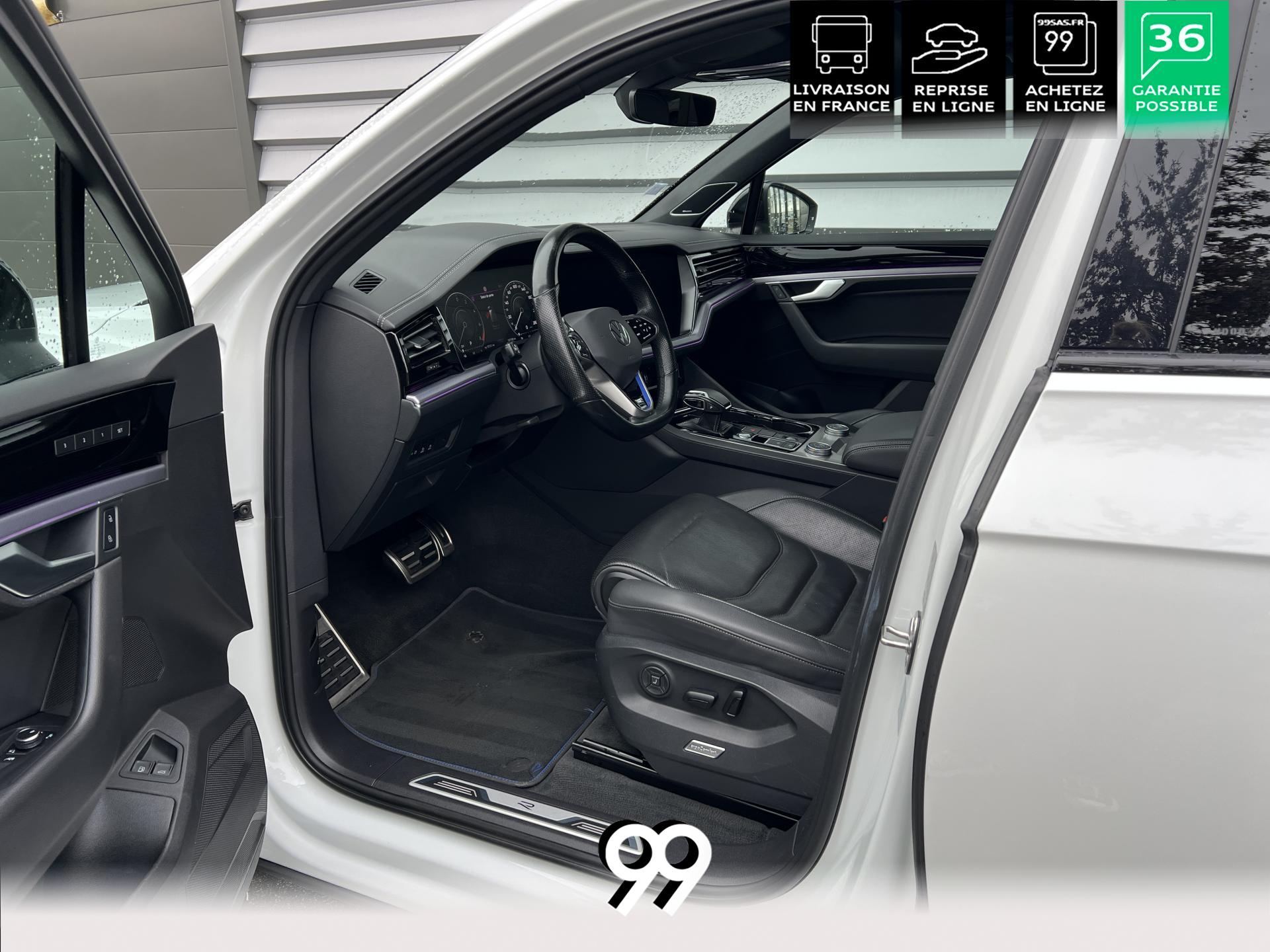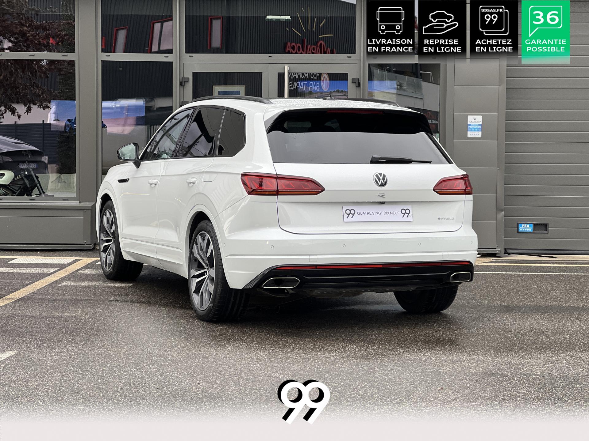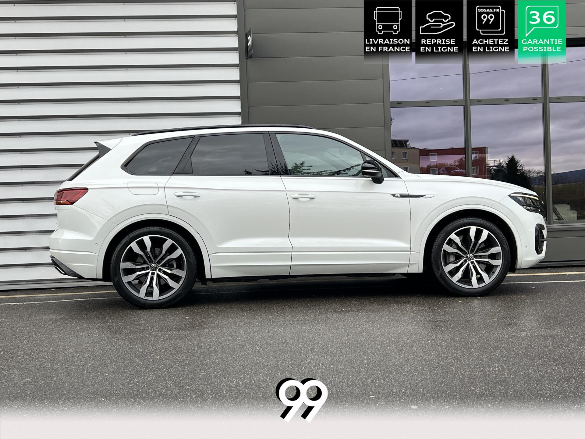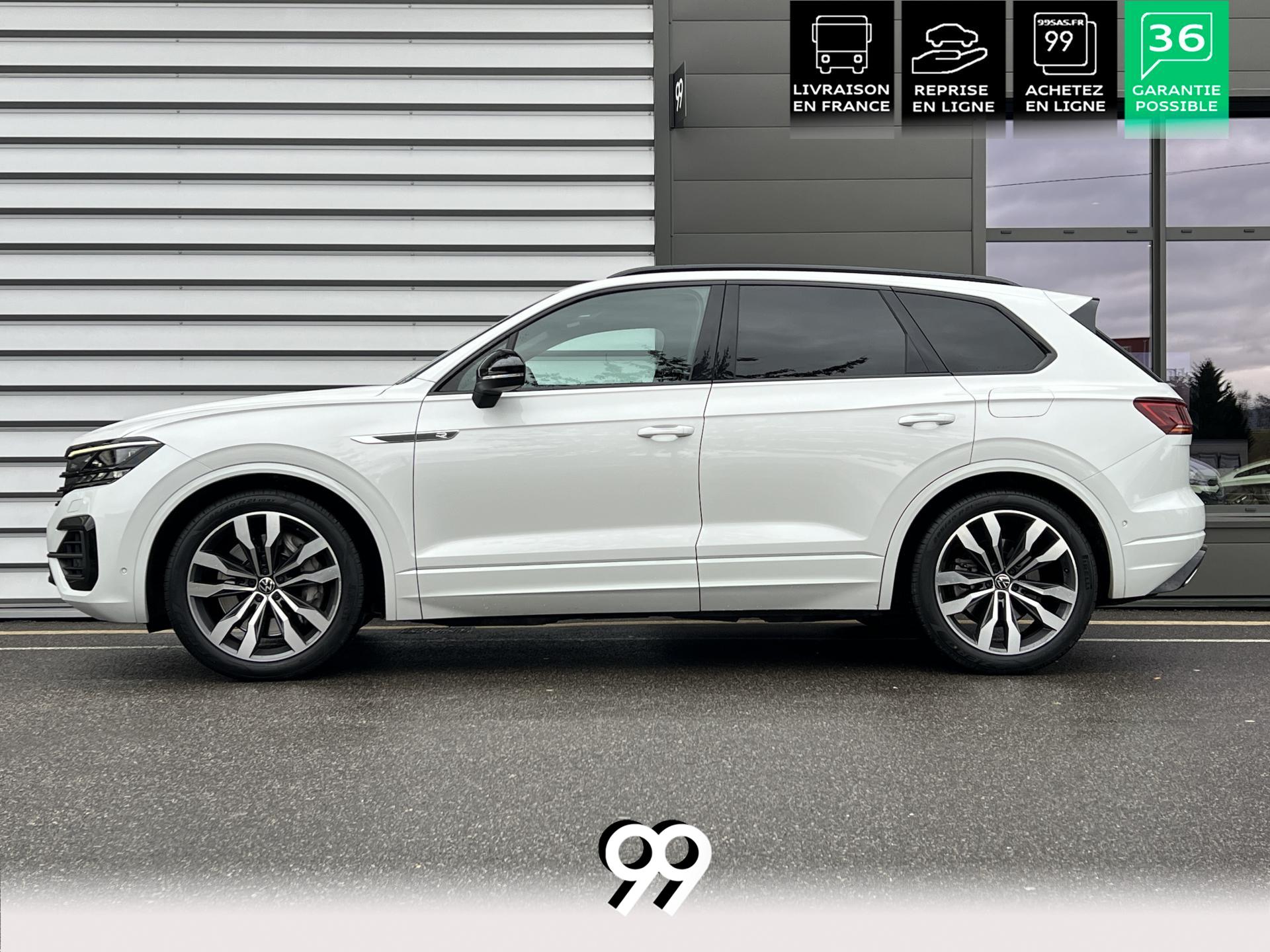 Le Volkswagen Touareg 3.0 E-TSI Hybrid 462 ch R, dans sa robe blanc Oryx nacré, est un SUV premium qui allie puissance, élégance et raffinement. Son moteur hybride délivre 462 ch avec une transmission intégrale 4Motion et une boîte automatique à 8 rapports, offrant une conduite dynamique tout en maîtrisant la consommation et les émissions.