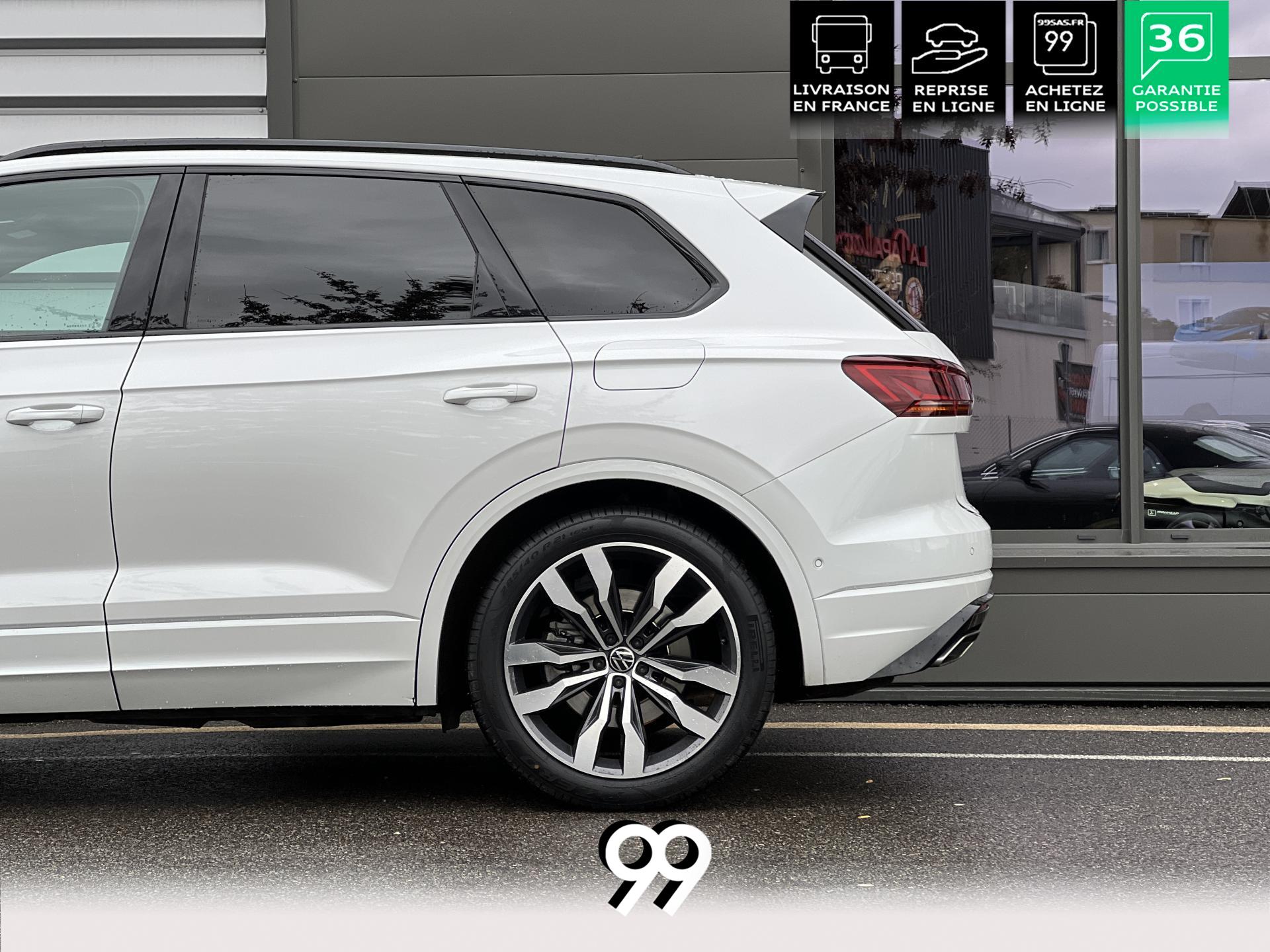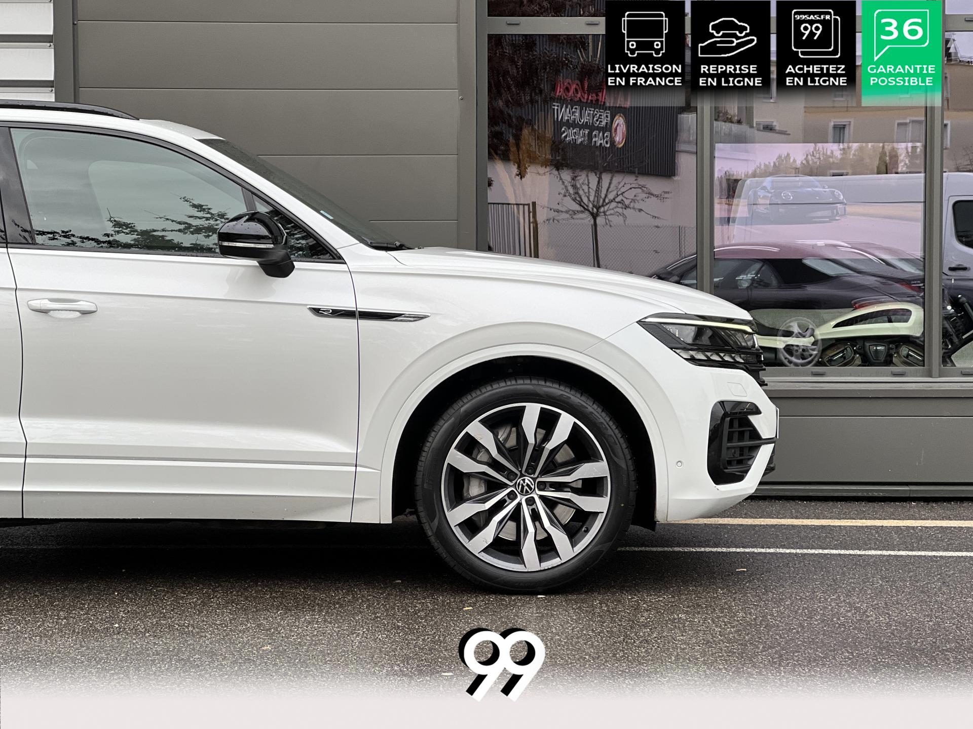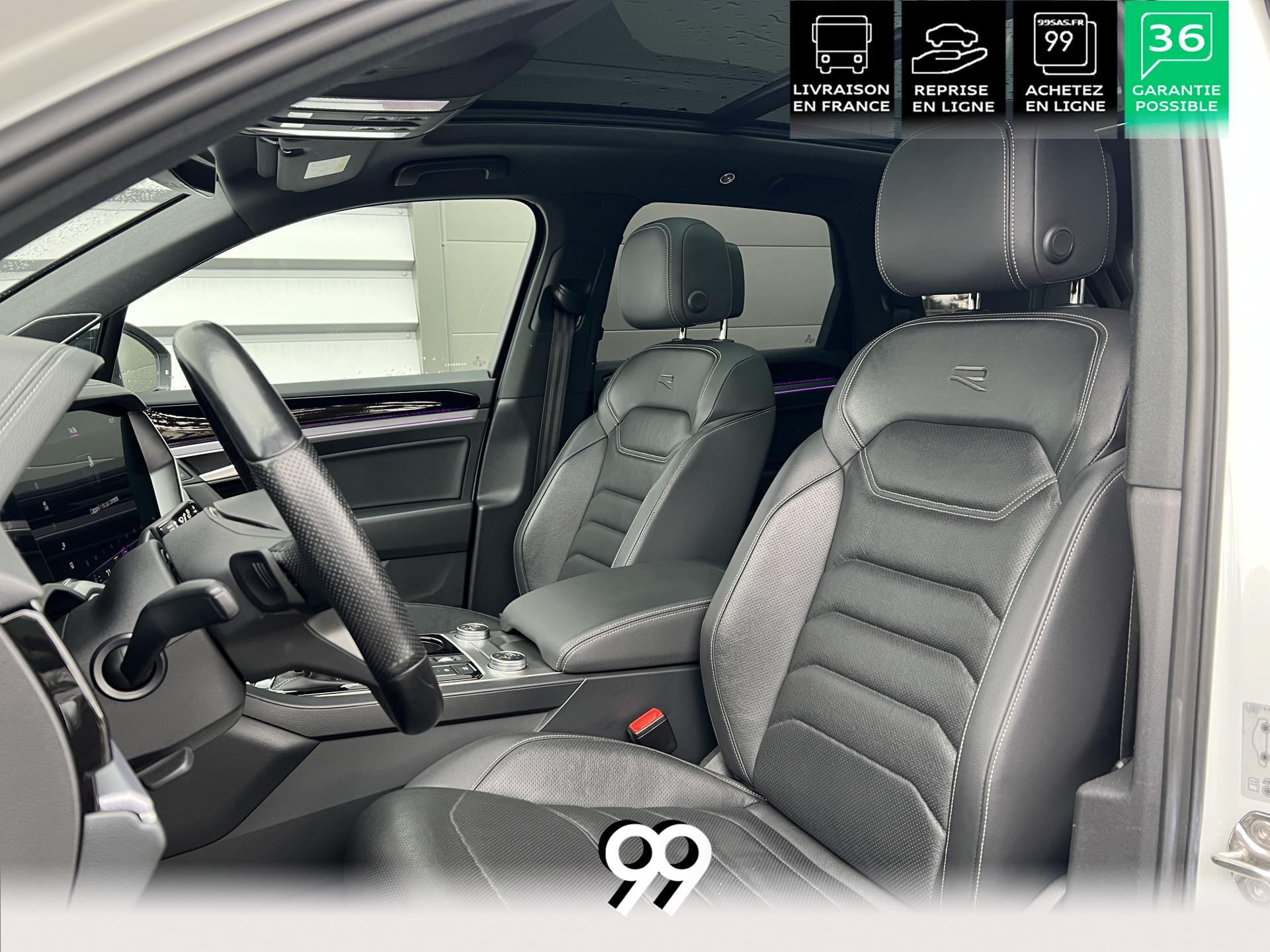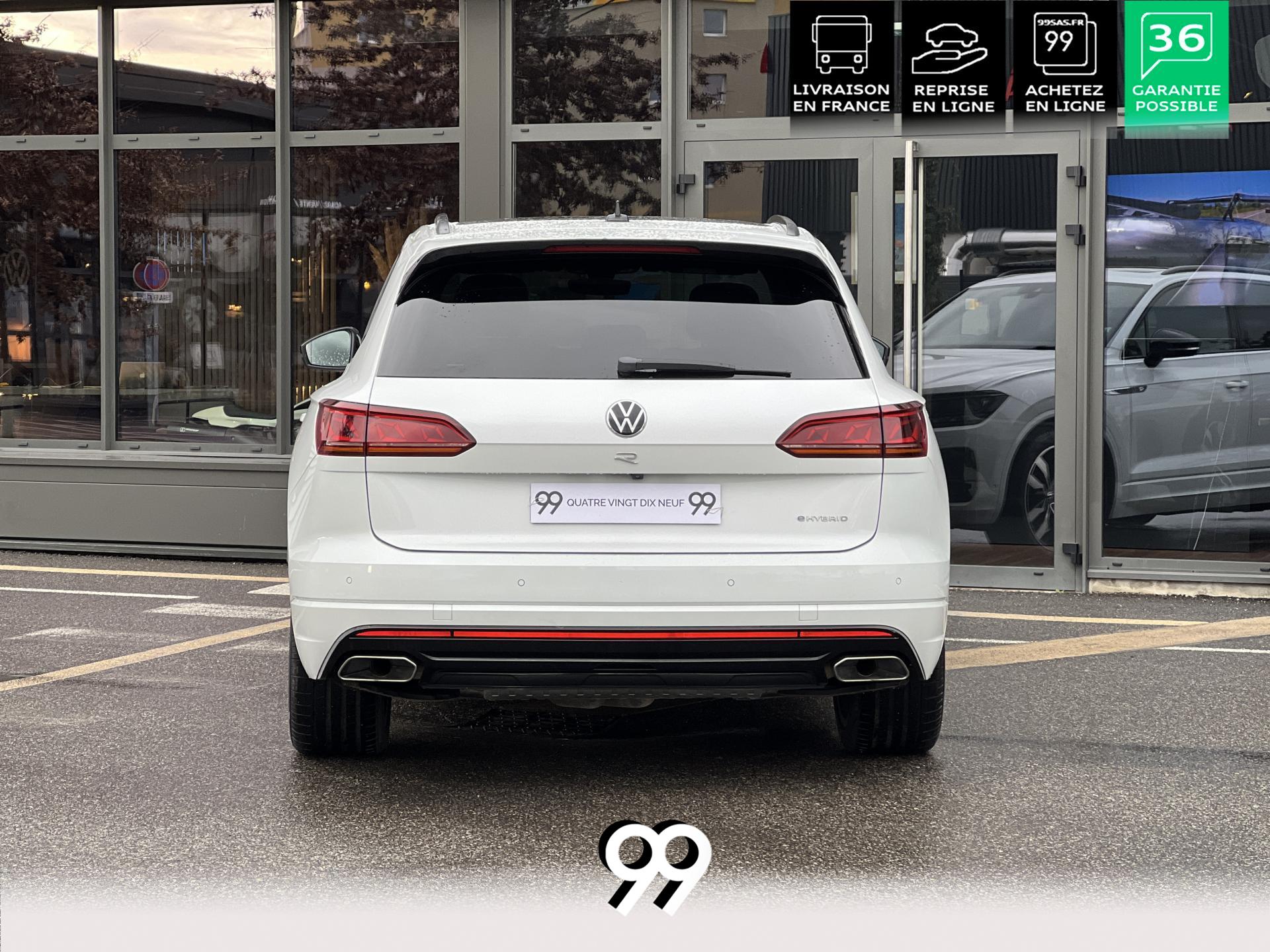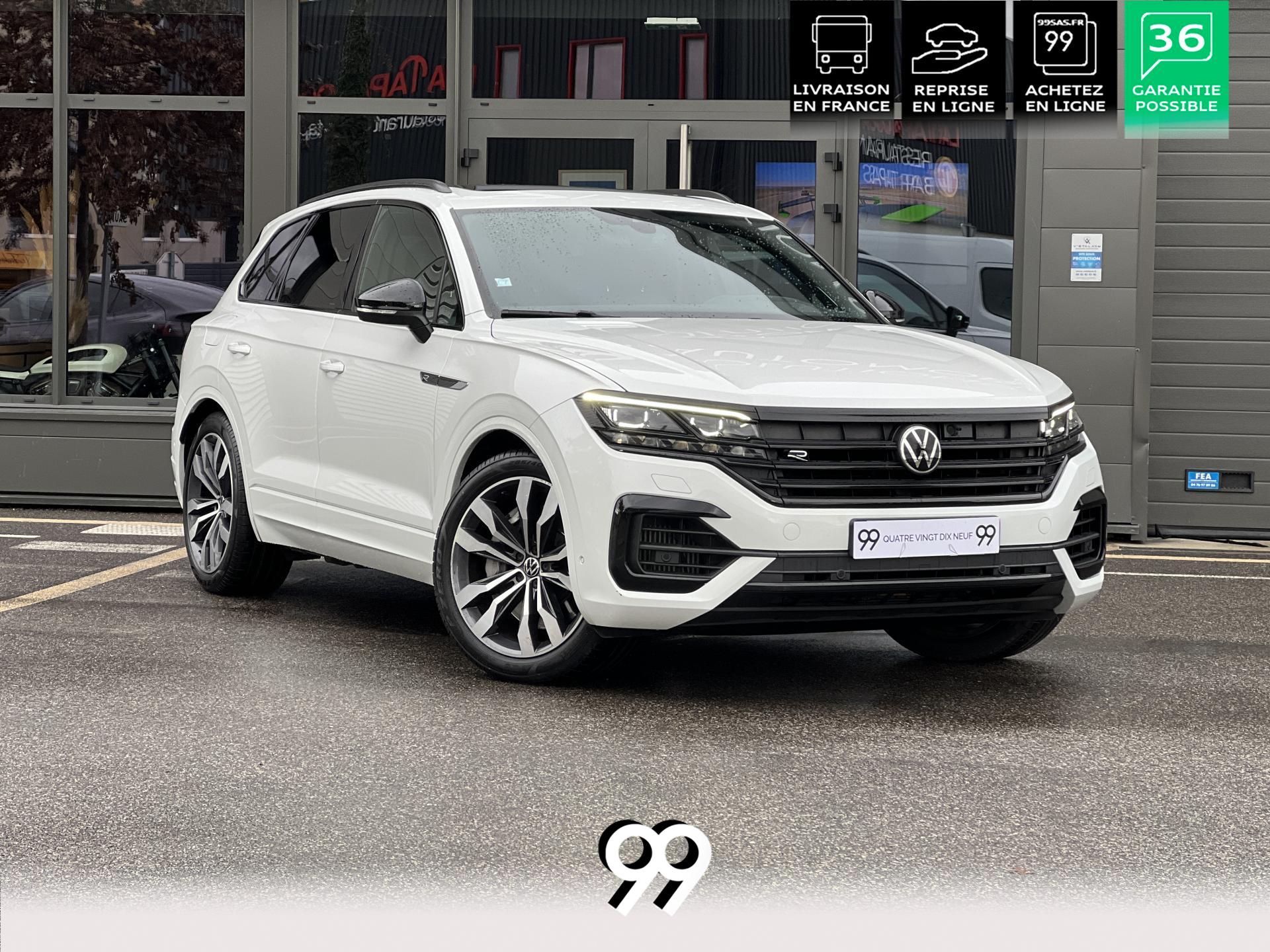 Le Volkswagen Touareg 3.0 E-TSI Hybrid 462 ch R, dans sa robe blanc Oryx nacré, est un SUV premium qui allie puissance, élégance et raffinement. Son moteur hybride délivre 462 ch avec une transmission intégrale 4Motion et une boîte automatique à 8 rapports, offrant une conduite dynamique tout en maîtrisant la consommation et les émissions.