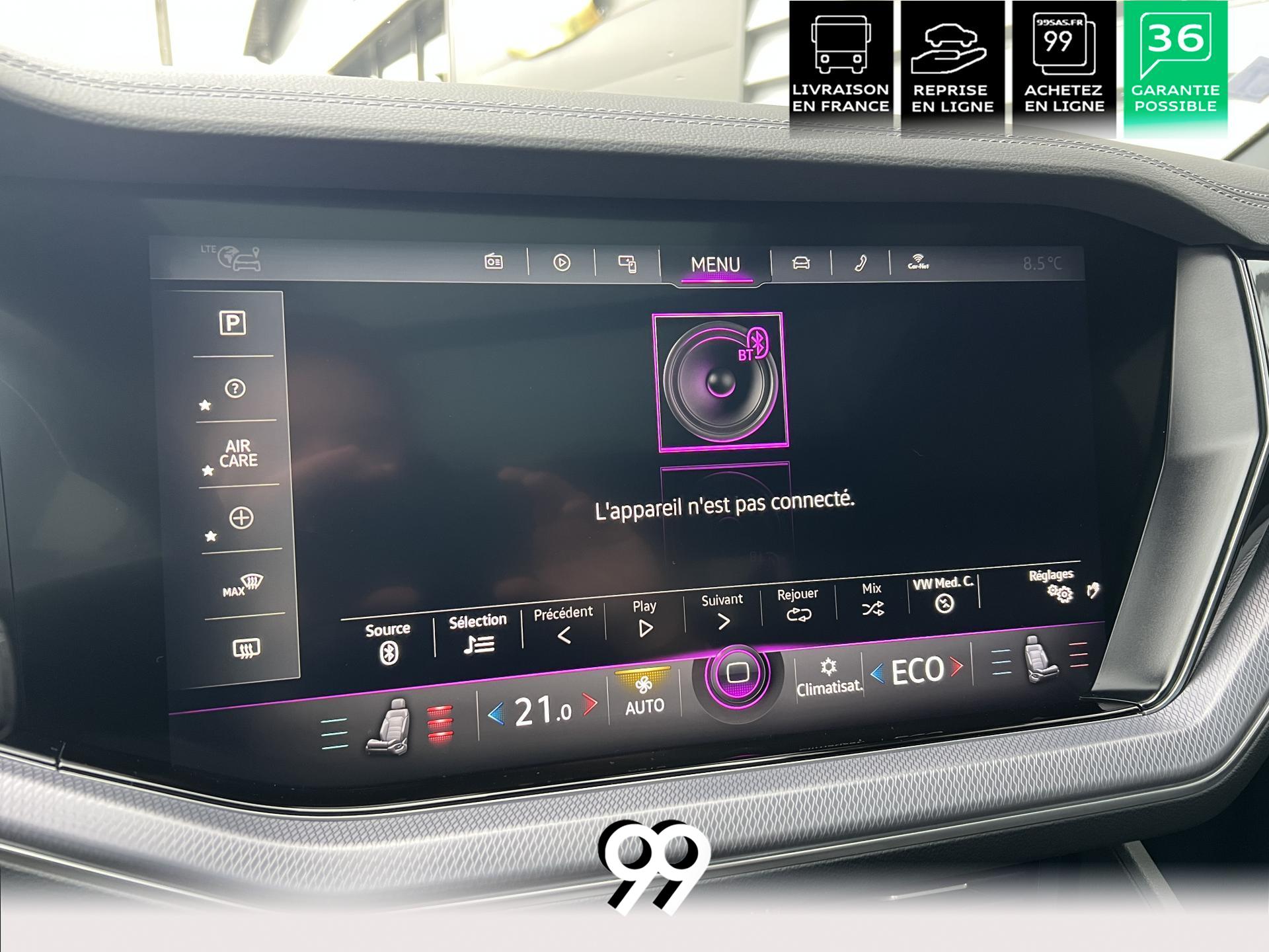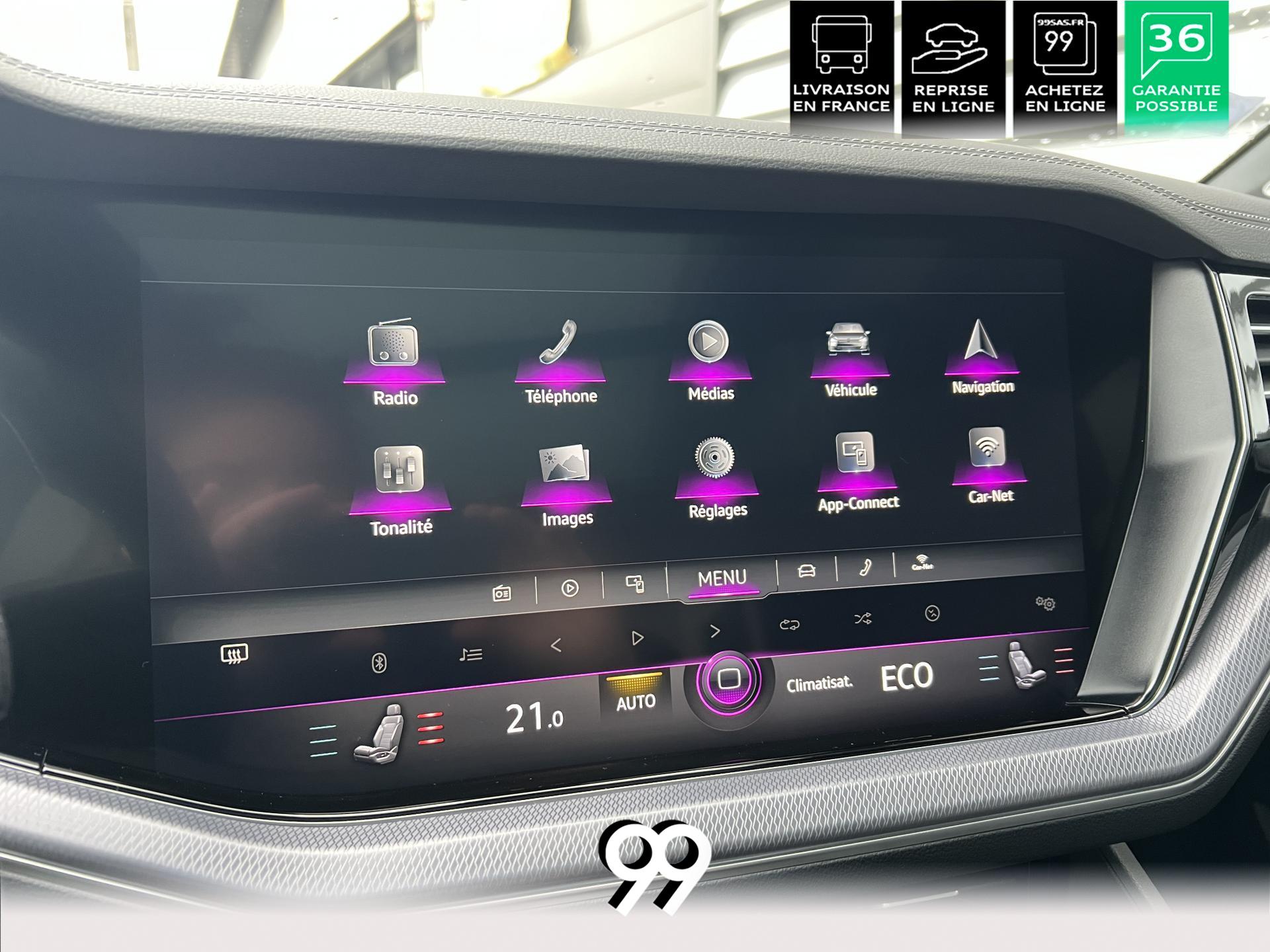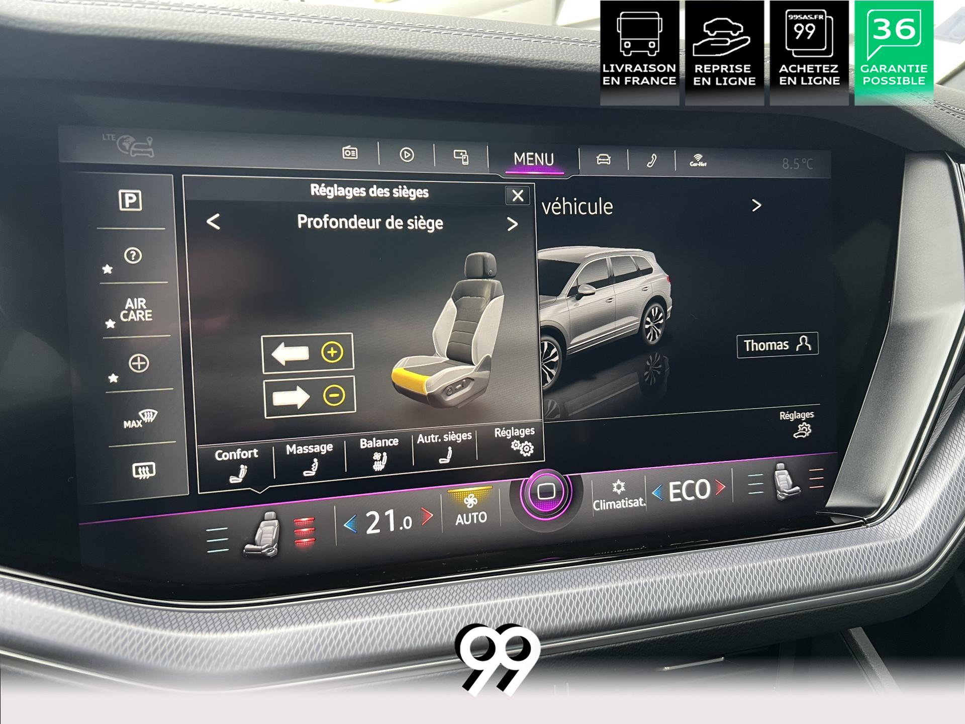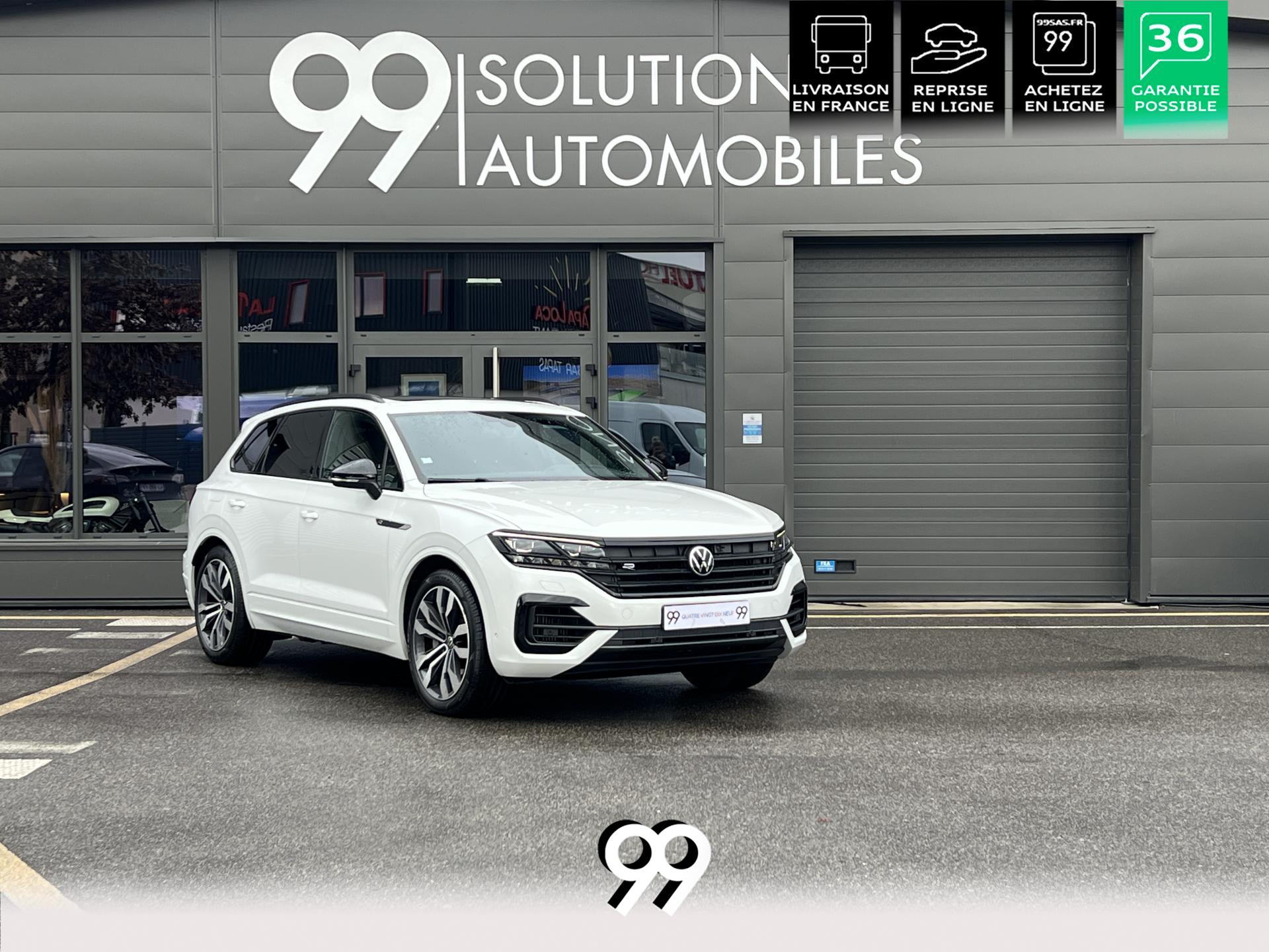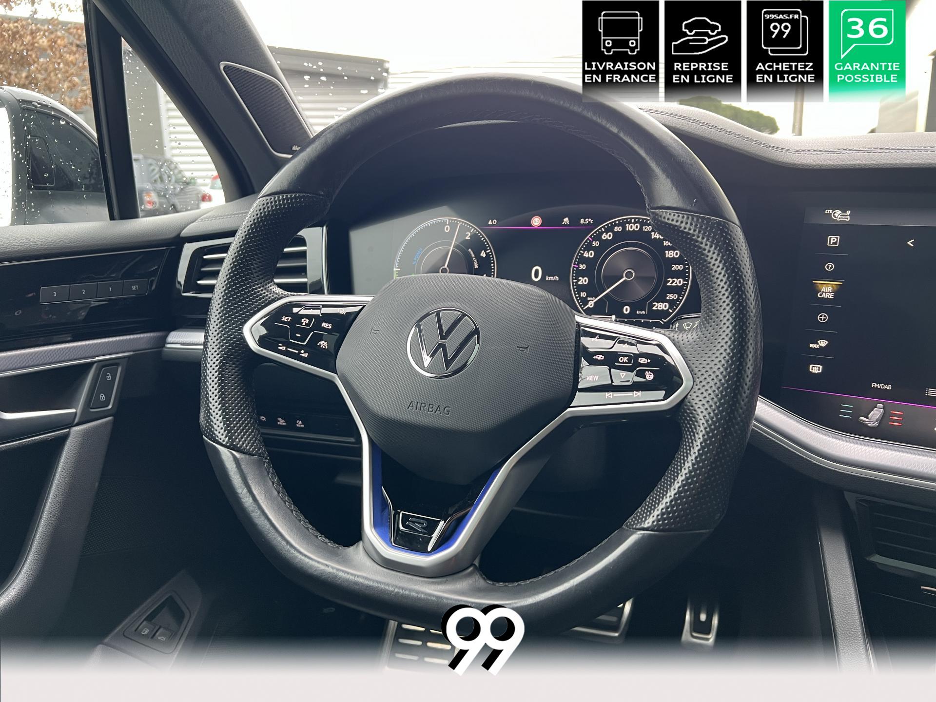 Le Volkswagen Touareg 3.0 E-TSI Hybrid 462 ch R, dans sa robe blanc Oryx nacré, est un SUV premium qui allie puissance, élégance et raffinement. Son moteur hybride délivre 462 ch avec une transmission intégrale 4Motion et une boîte automatique à 8 rapports, offrant une conduite dynamique tout en maîtrisant la consommation et les émissions.